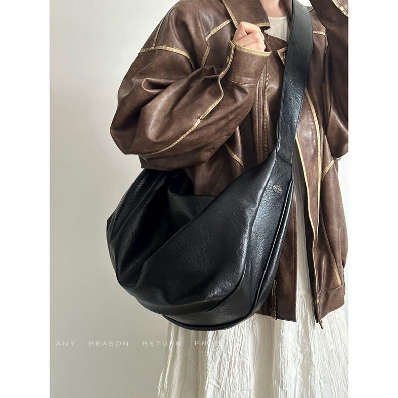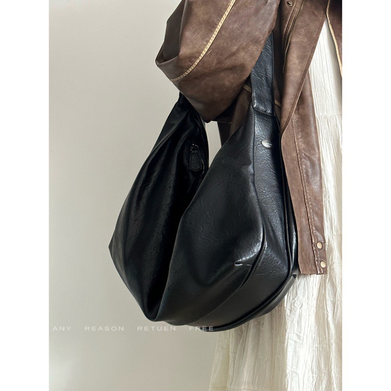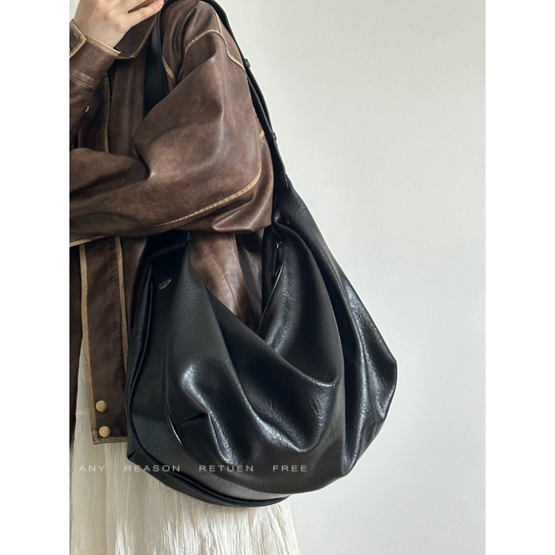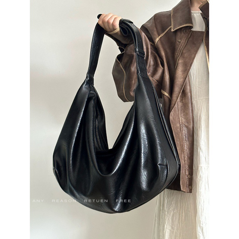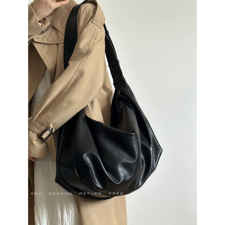여성을위한 부드러운 가죽 대용량 검은 만두 가방 2025 새로운 복고풍 하이 엔드 캐주얼 어깨 크로스 바디 토트 백