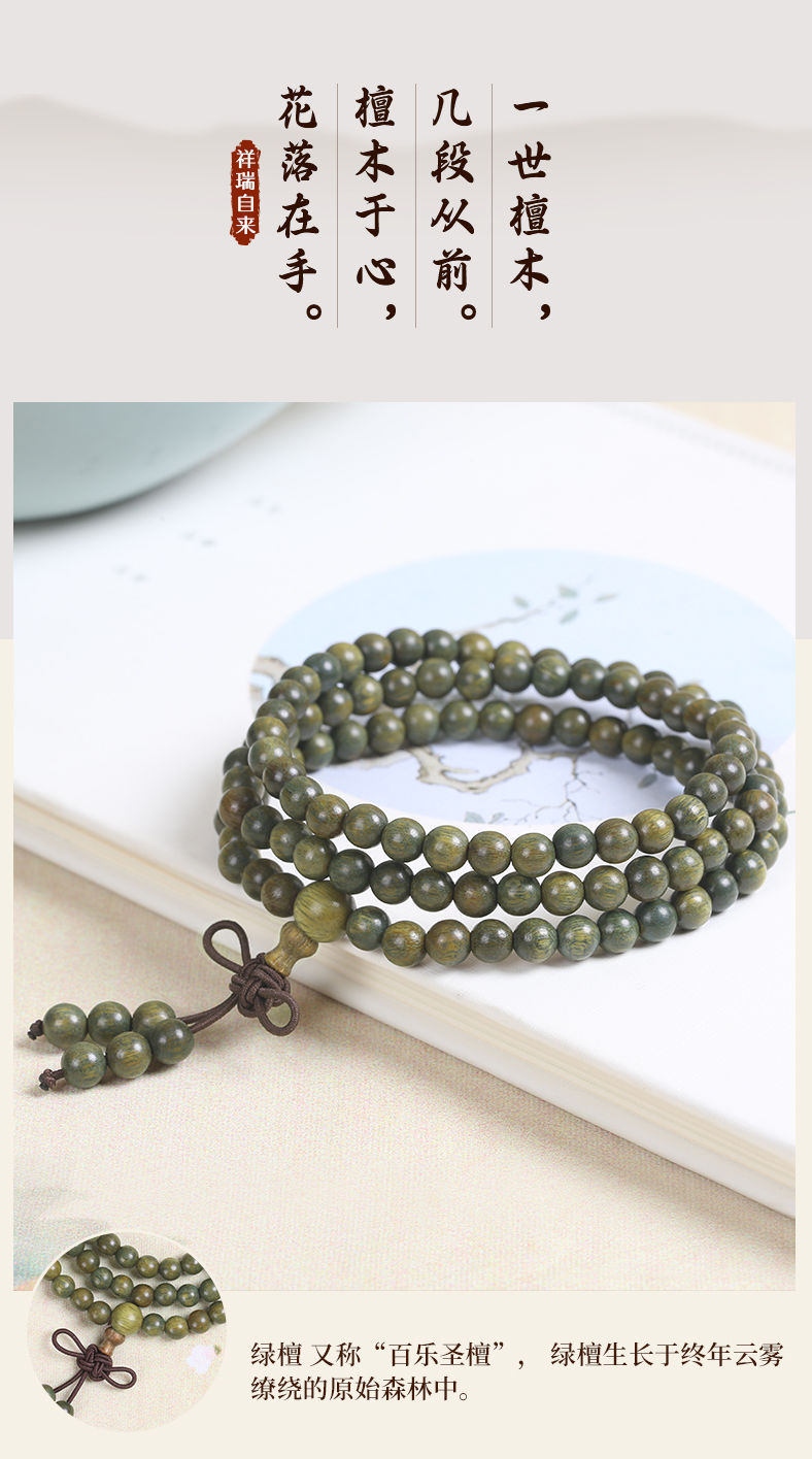 오래 된 소재 녹색 백단 나무 108 구슬 팔찌 여성 숲 학생 샌달 우드 팔찌 커플 민족 남성스토어 가기
