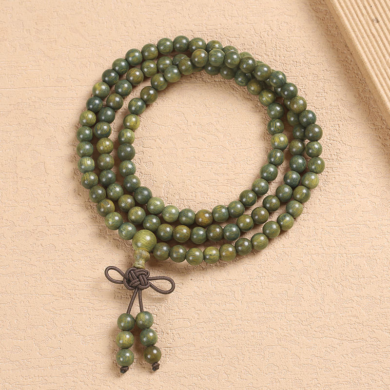 오래 된 소재 녹색 백단 나무 108 구슬 팔찌 여성 숲 학생 샌달 우드 팔찌 커플 민족 남성