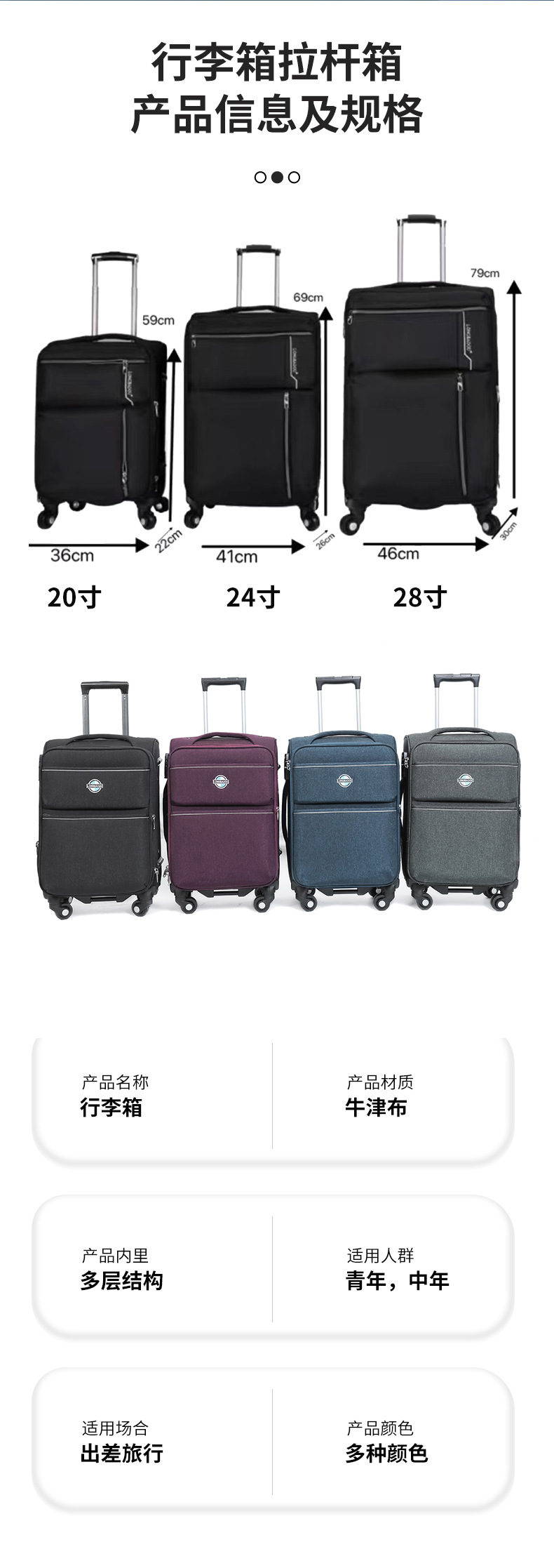 옥스포드 천 트롤리 케이스 남성과 여성 학생을위한 새로운 스타일의 수하물 대용량 수하물 옥스포드 천 유니버설 휠 가방스토어 가기
