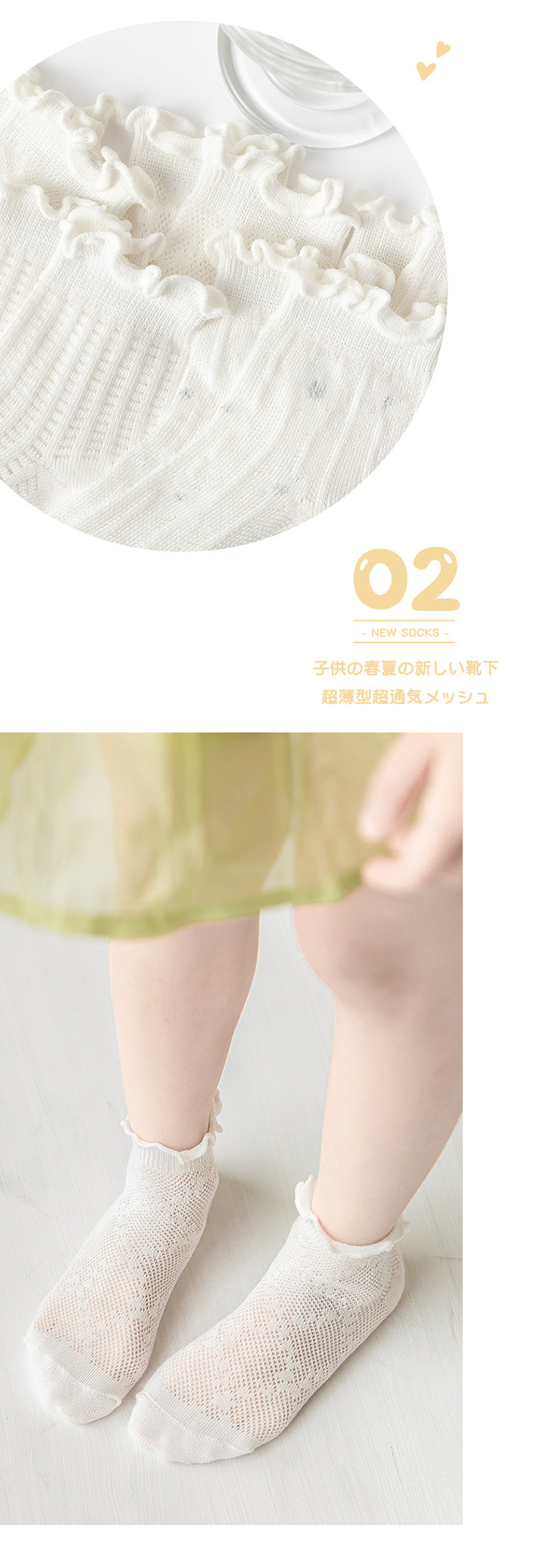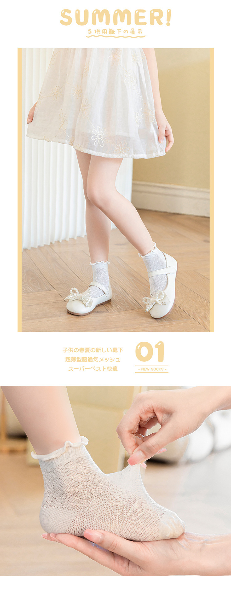 초박형 어린이 양말 봄과 여름 메쉬 나무 귀 통기성 어린이 양말 짧은 얇은 양말 소녀 양말