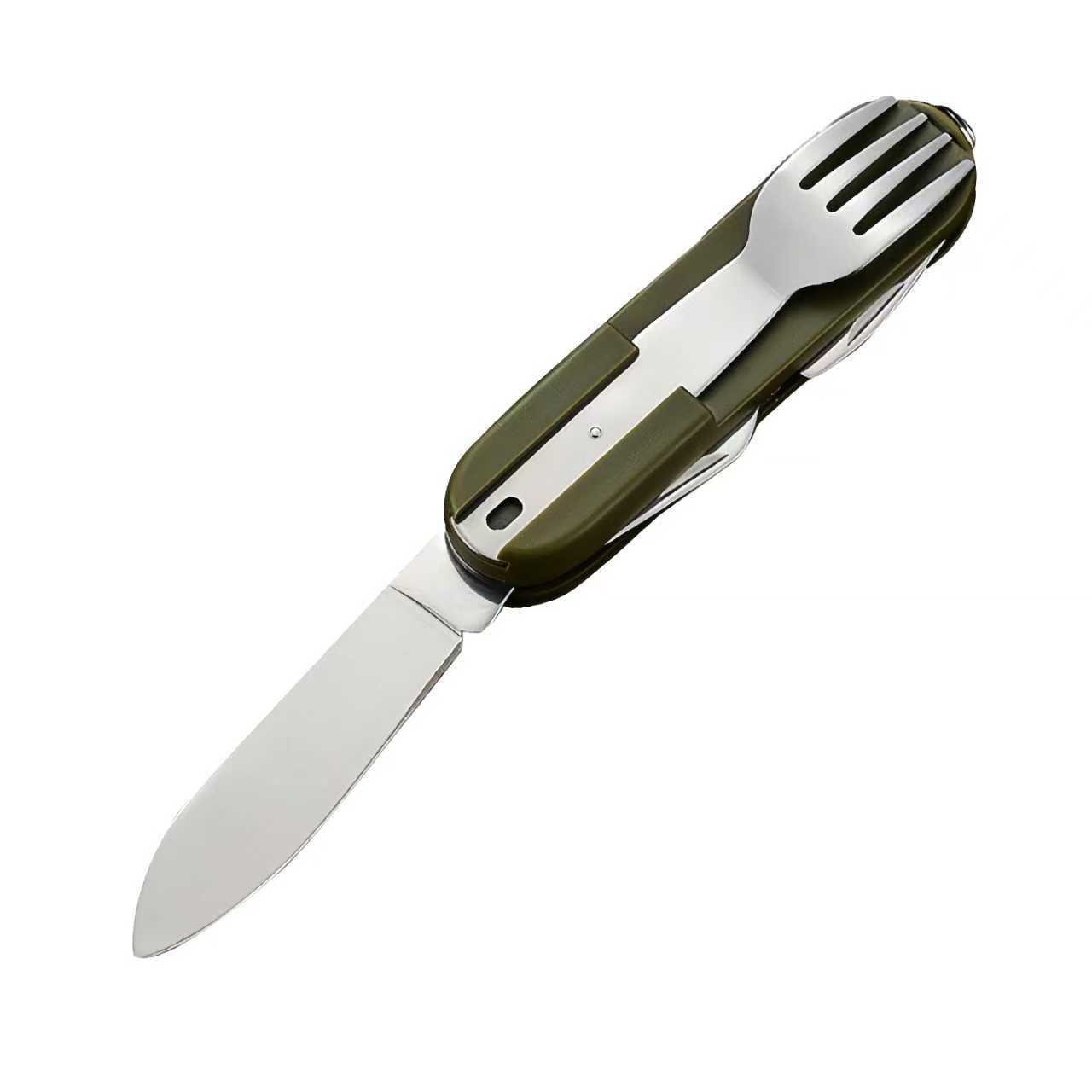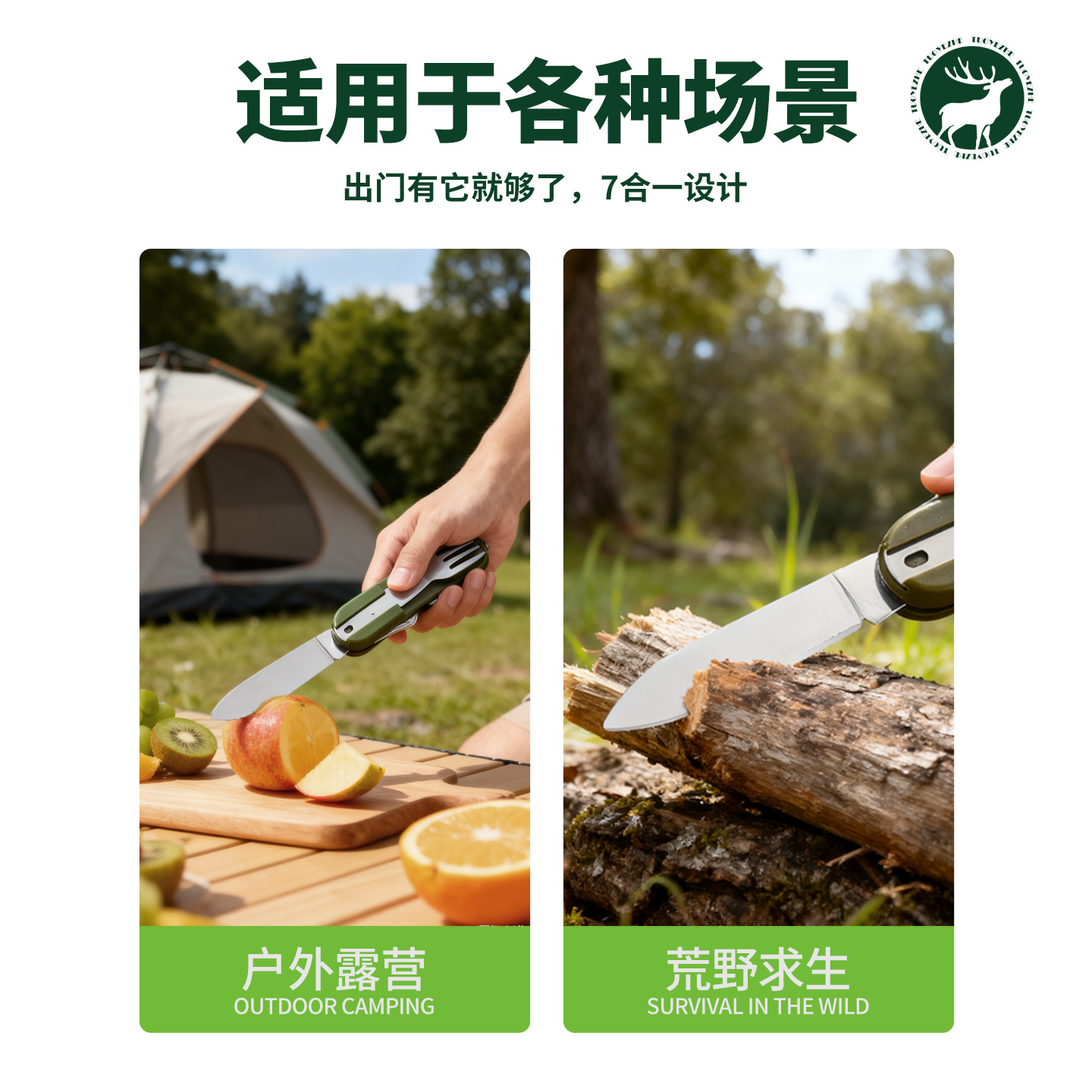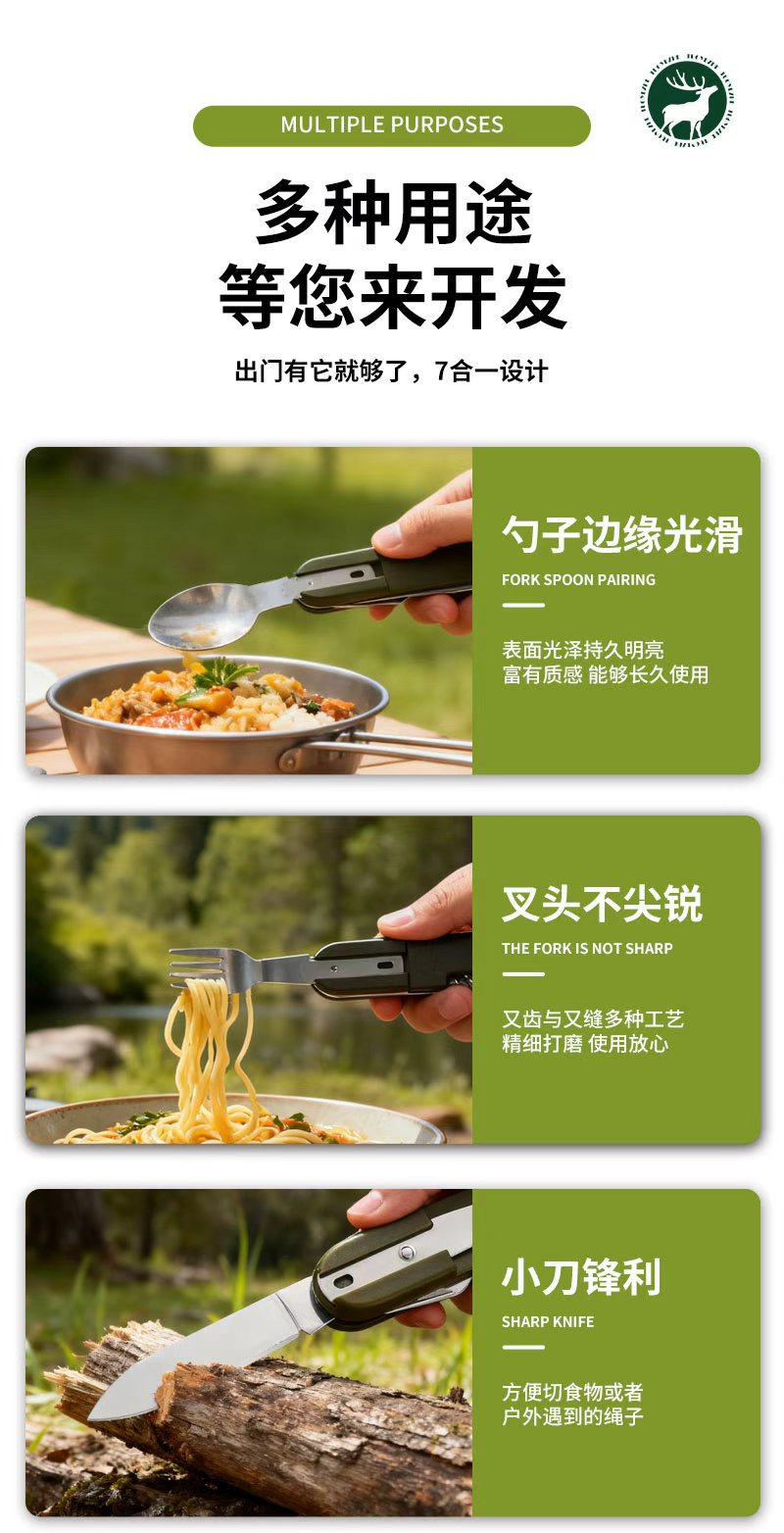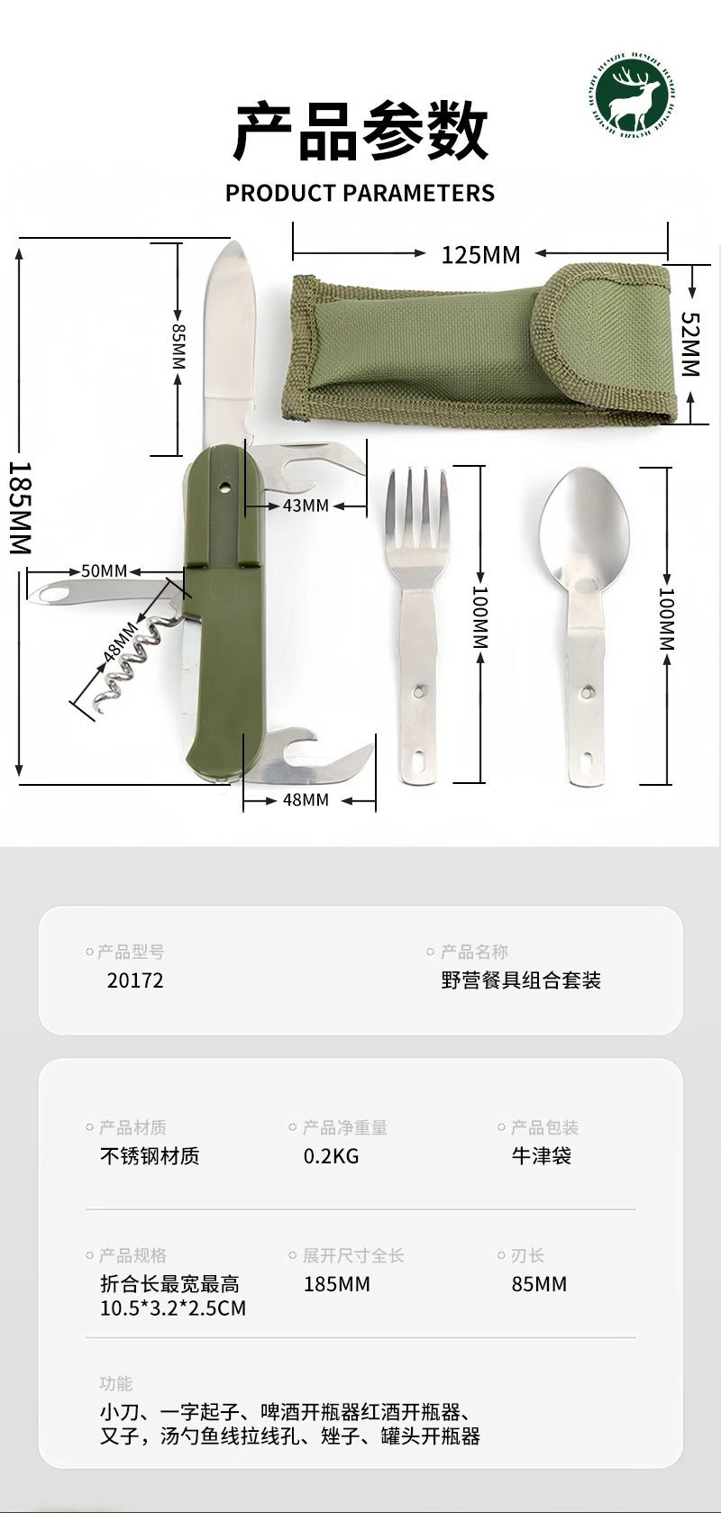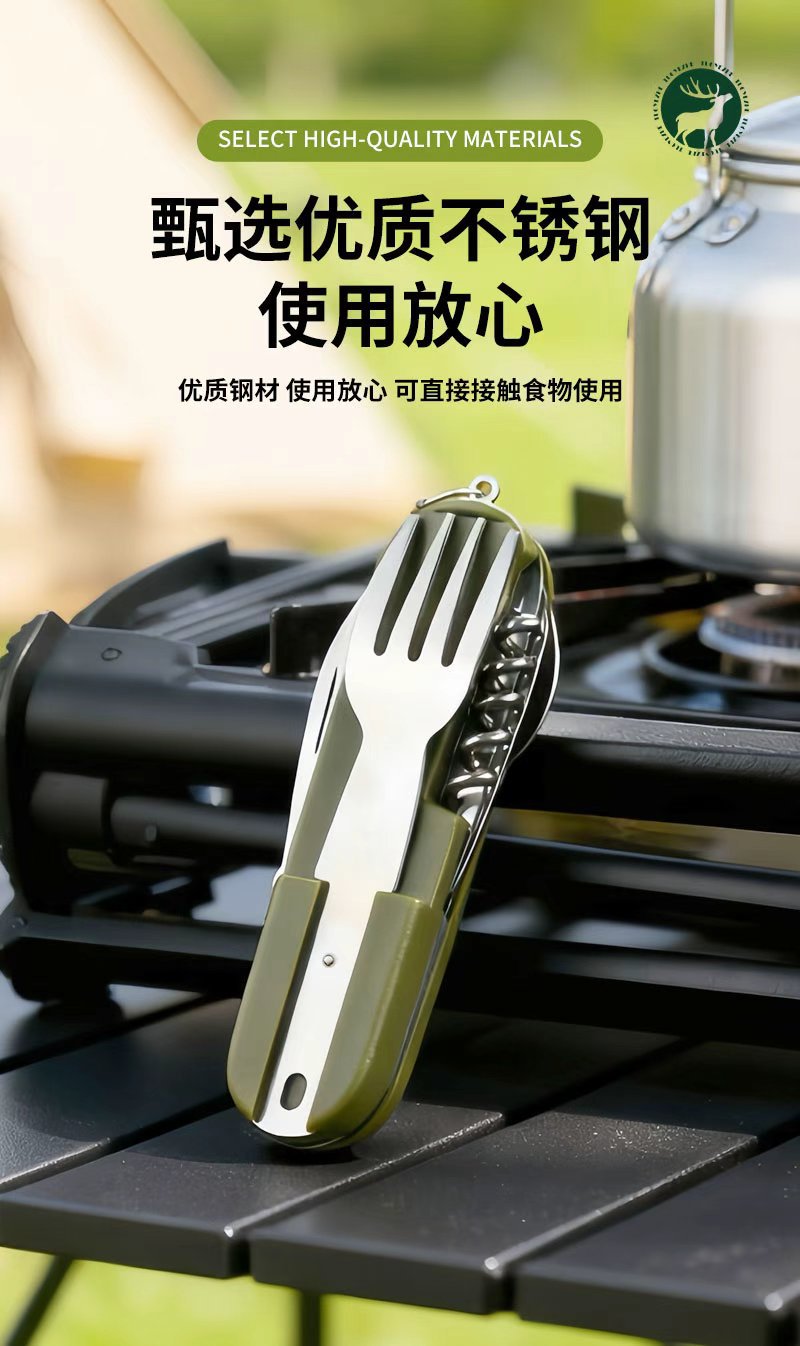 야외 피크닉 휴대용 식기 캠핑 접이식 스테인리스 나이프 포크 스푼 병따개 다기능 야생 생존 장비