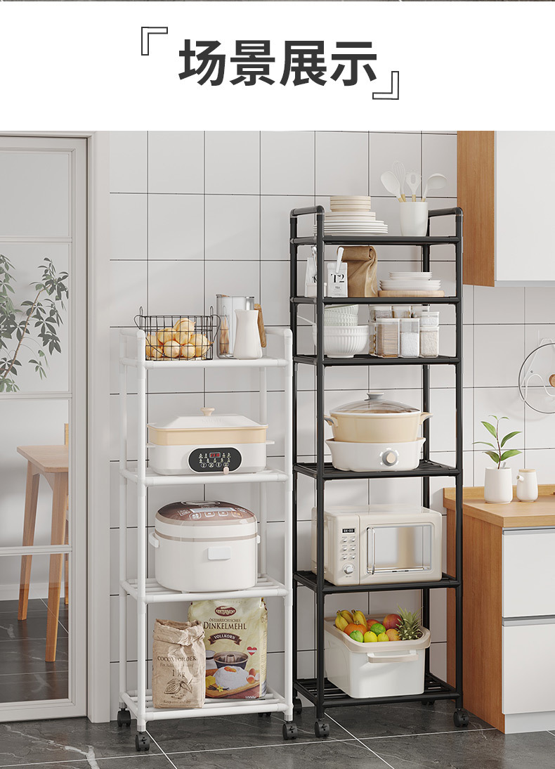 주방 스토리지 랙 바닥 랙 다층 가정용 전자 레인지 랙 주방 스토리지 아티팩트 팟 모바일 도매 제조 업체스토어 가기