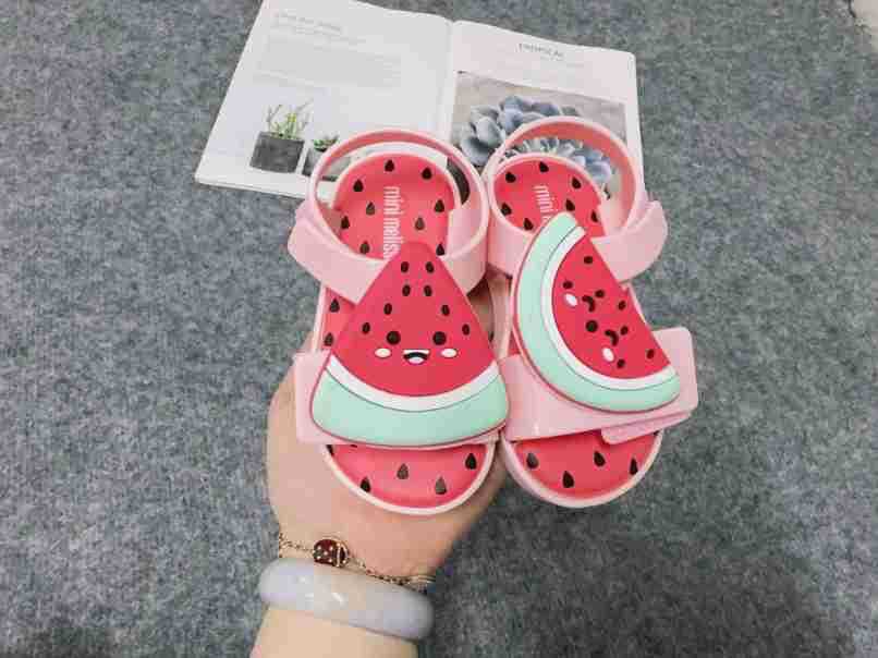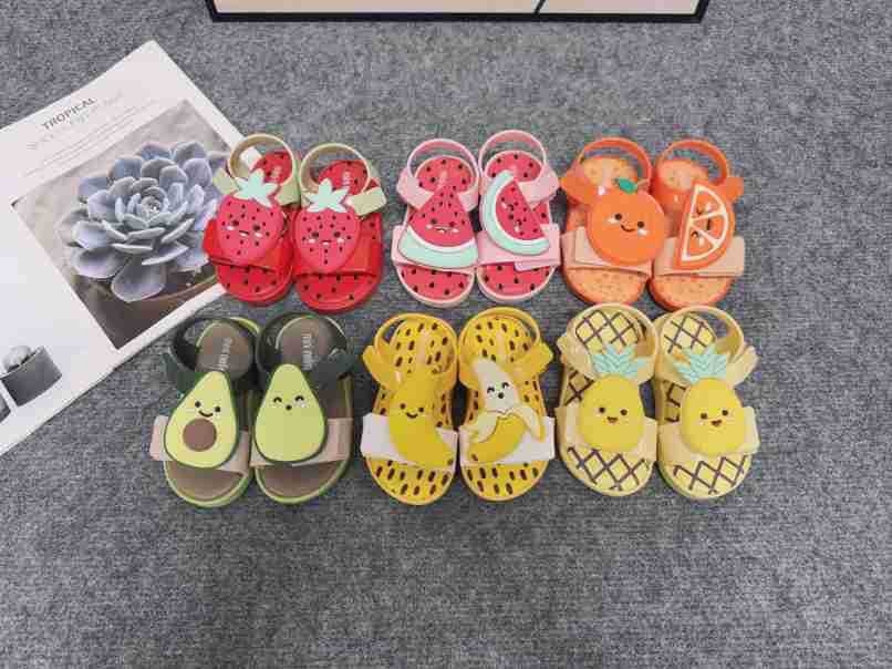 소년 소녀를위한 멜리사 여름 새로운 어린이 귀여운 과일 샌들 벨크로 오픈 토이 더 신발스토어 가기
