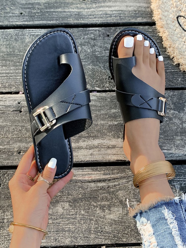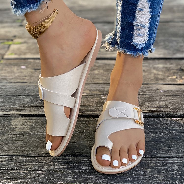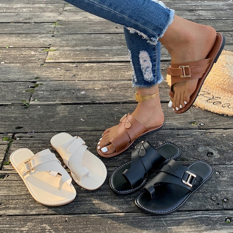 국경 간 플러스 사이즈-바닥이 평평한 발가락 슬리퍼 여성 2024 여름 폭발 평평한 바닥 샌들 여성스토어 가기
