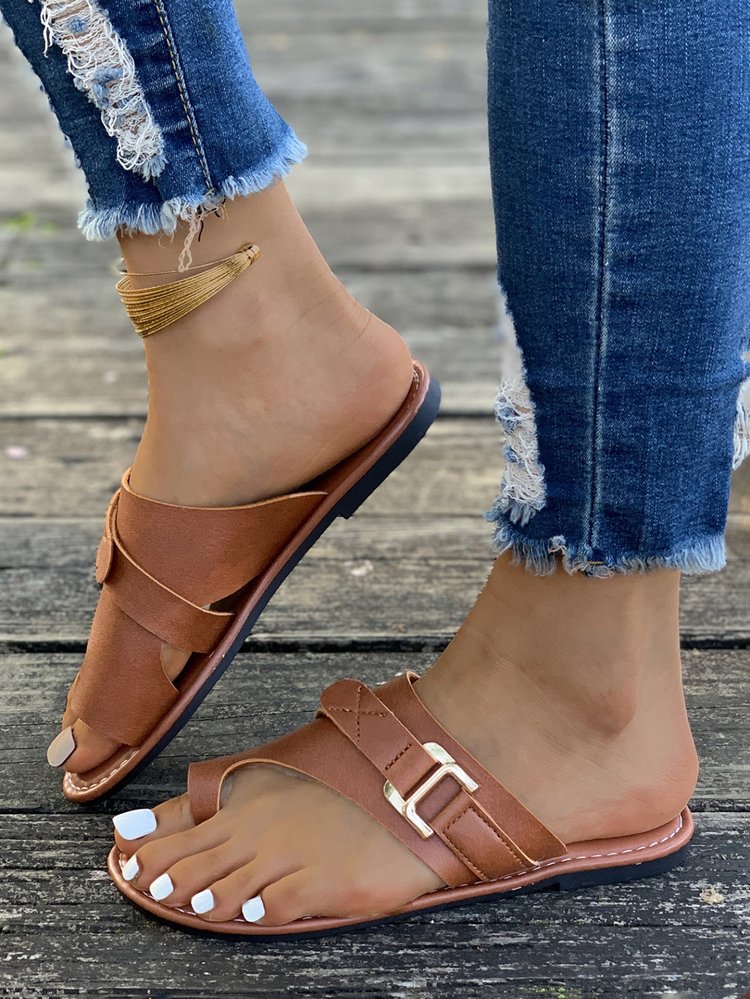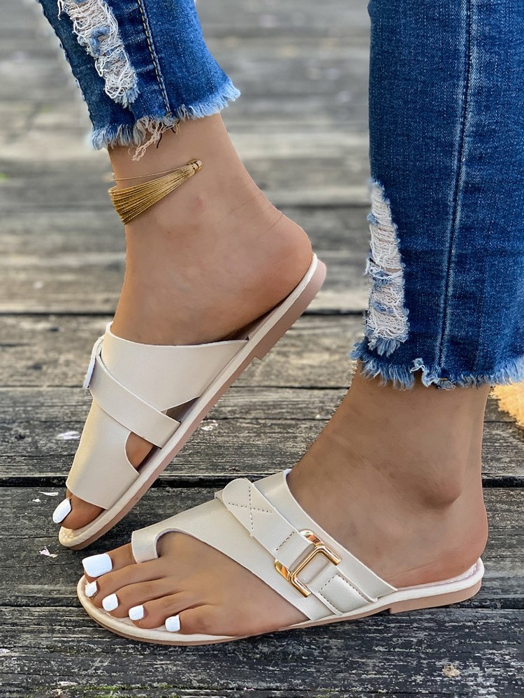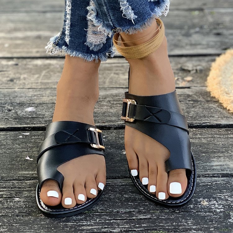 국경 간 플러스 사이즈-바닥이 평평한 발가락 슬리퍼 여성 2024 여름 폭발 평평한 바닥 샌들 여성