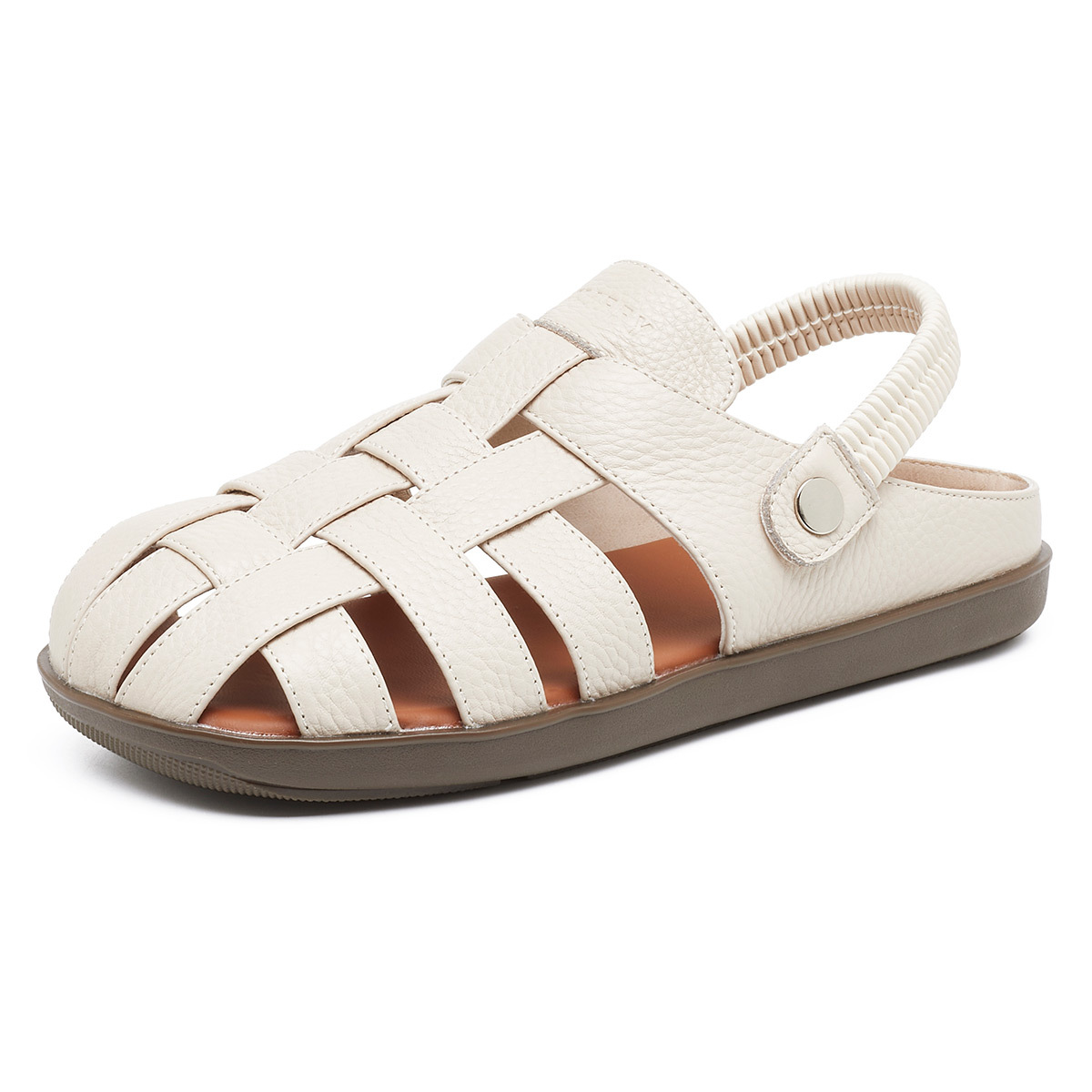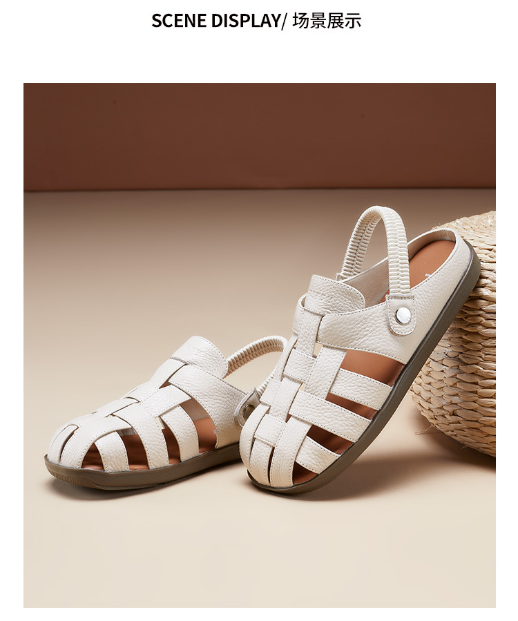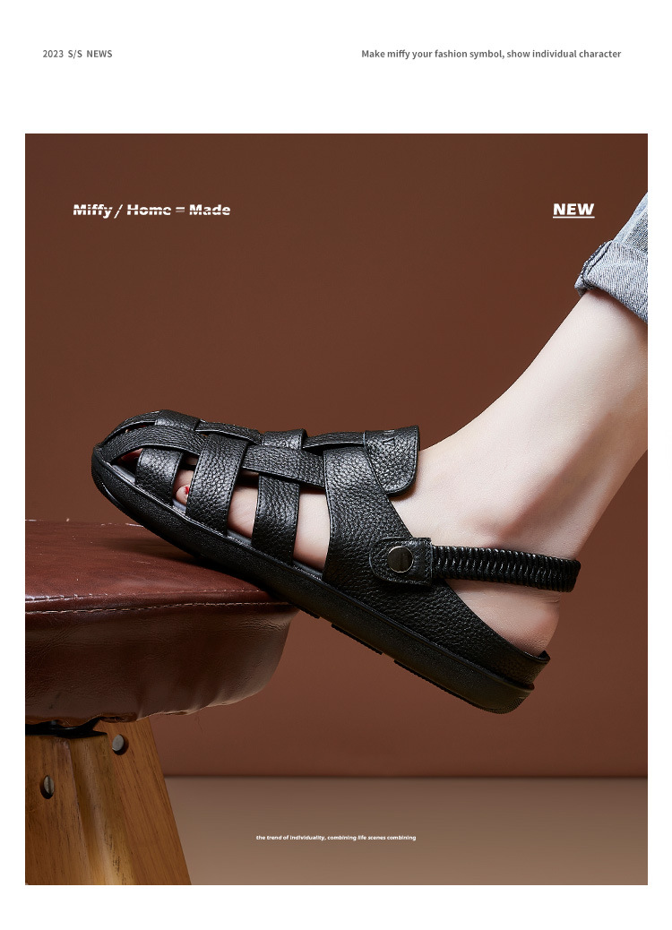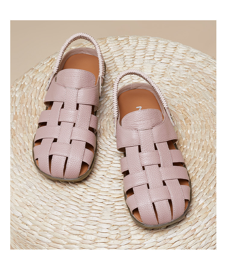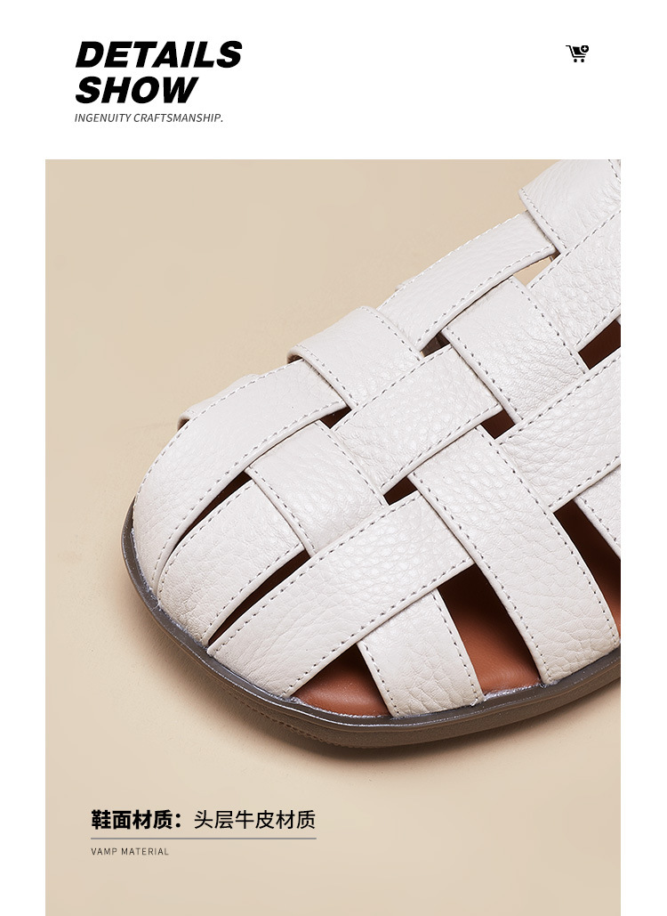 [첫 번째 레이어 소가죽] 2025 여름 심플 복고풍 스타일 플랫 통기성 돼지 케이지 신발 여성 샌들 여성 신발스토어 가기
