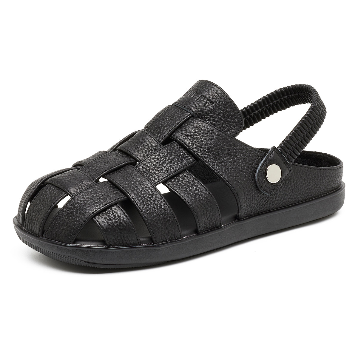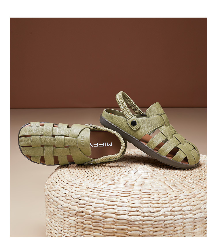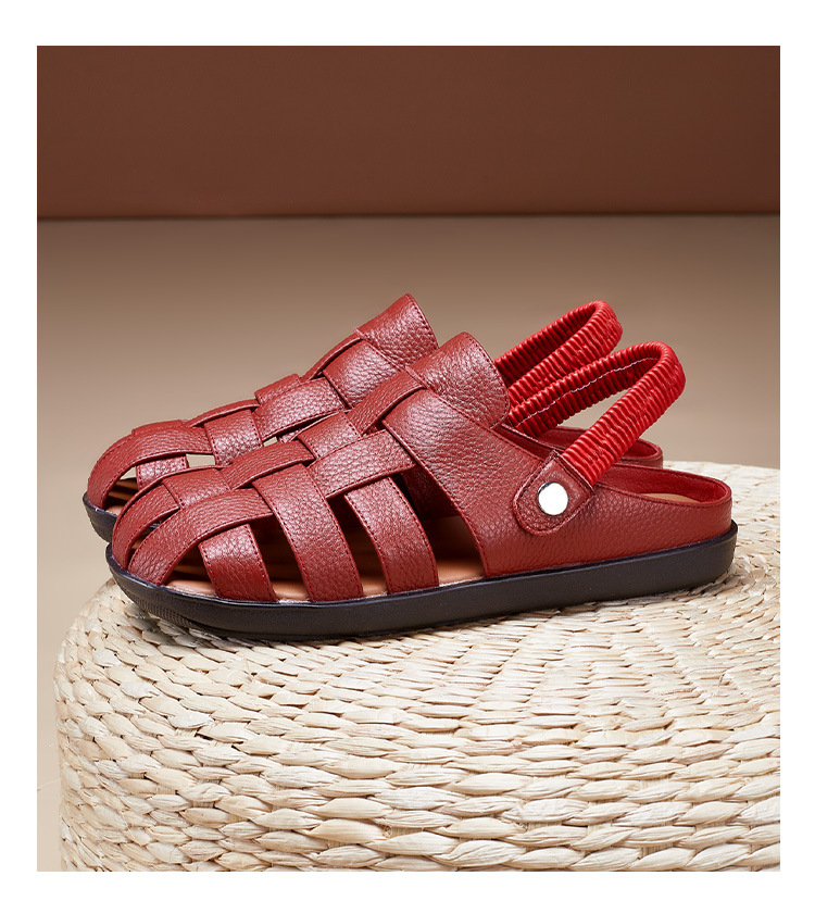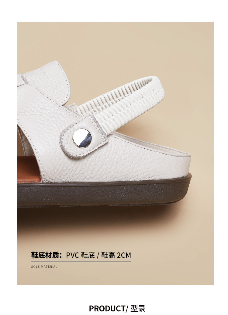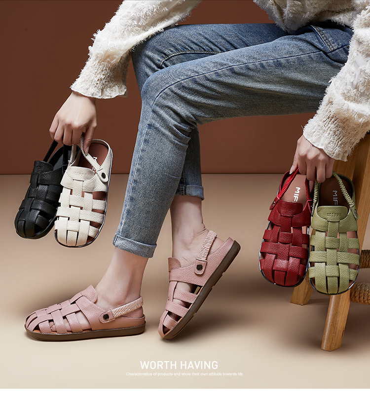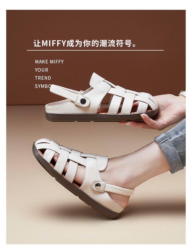 [첫 번째 레이어 소가죽] 2025 여름 심플 복고풍 스타일 플랫 통기성 돼지 케이지 신발 여성 샌들 여성 신발스토어 가기
