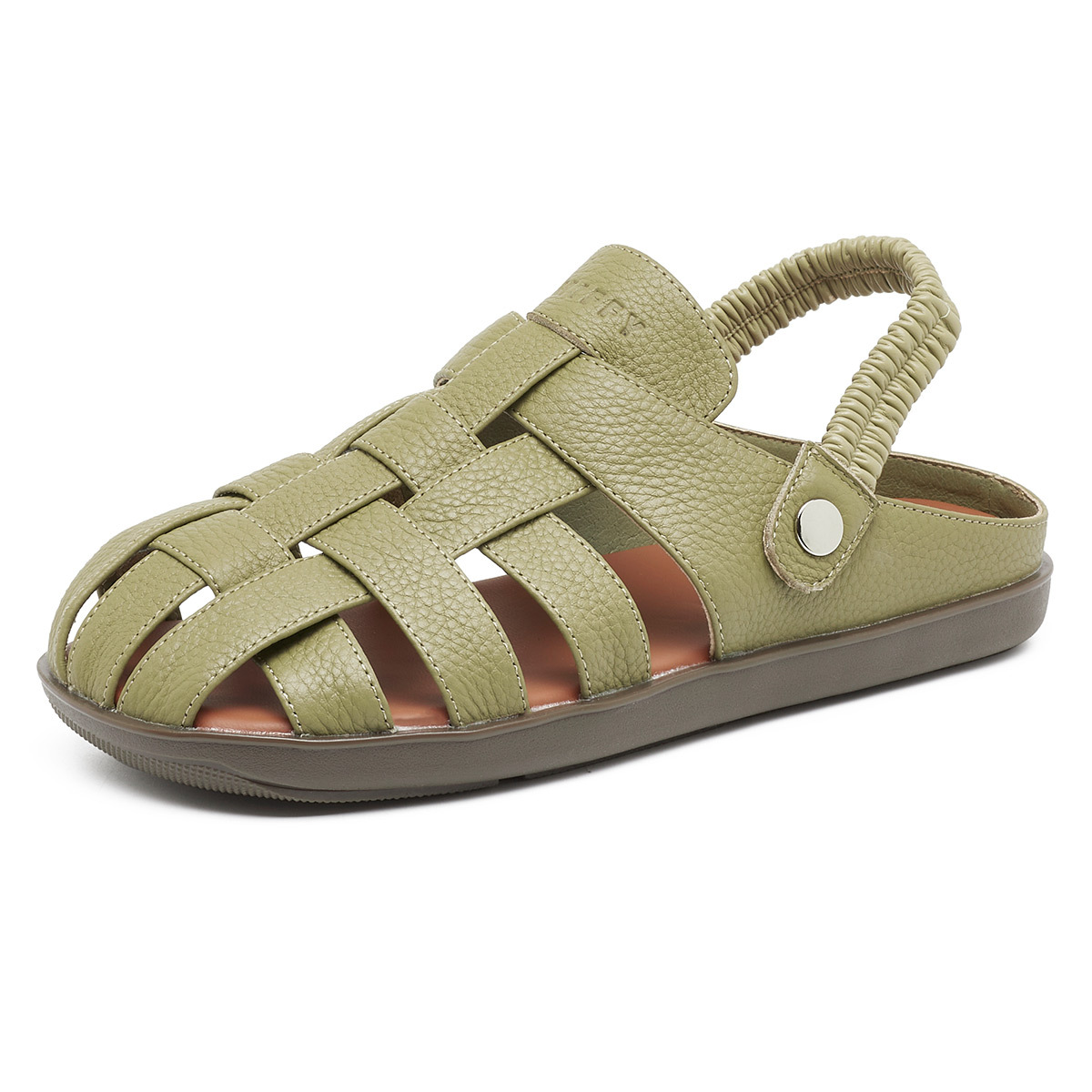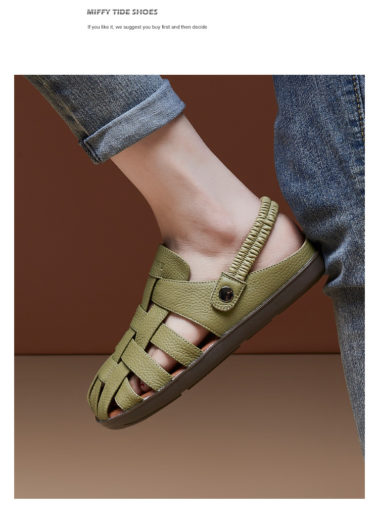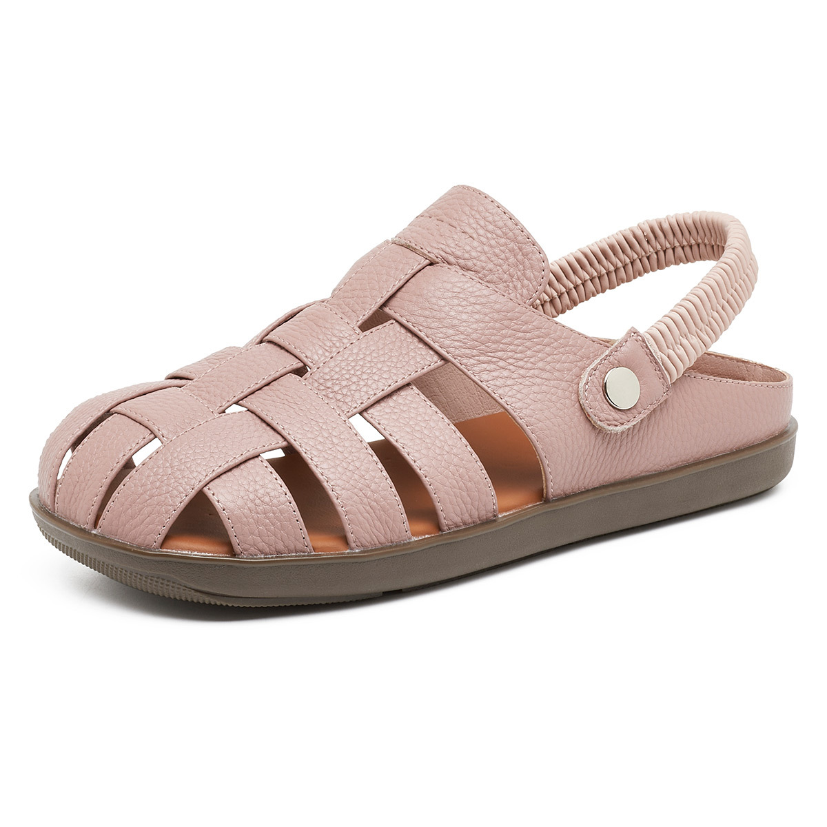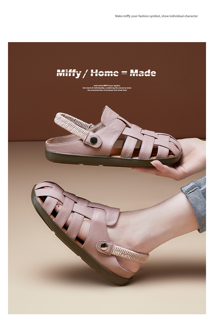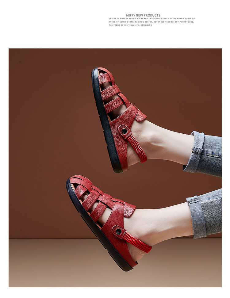 [첫 번째 레이어 소가죽] 2025 여름 심플 복고풍 스타일 플랫 통기성 돼지 케이지 신발 여성 샌들 여성 신발