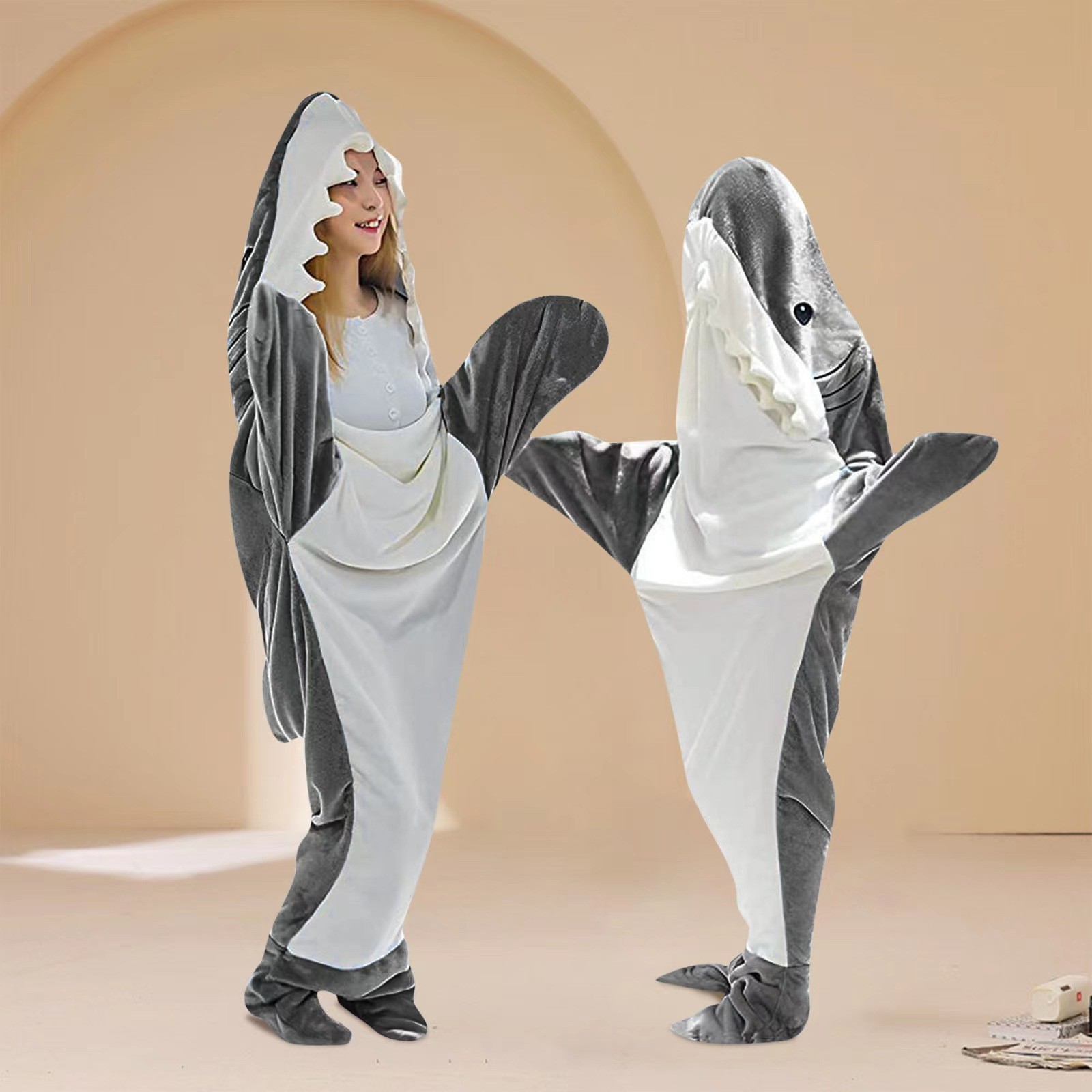 국경 간 상어 의류 담요 성인 슈퍼 소프트 플란넬 파자마 가방 후드 외부 착용 게으른 TV 홈 옷스토어 가기