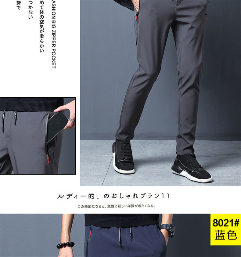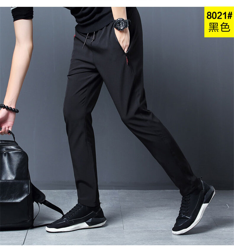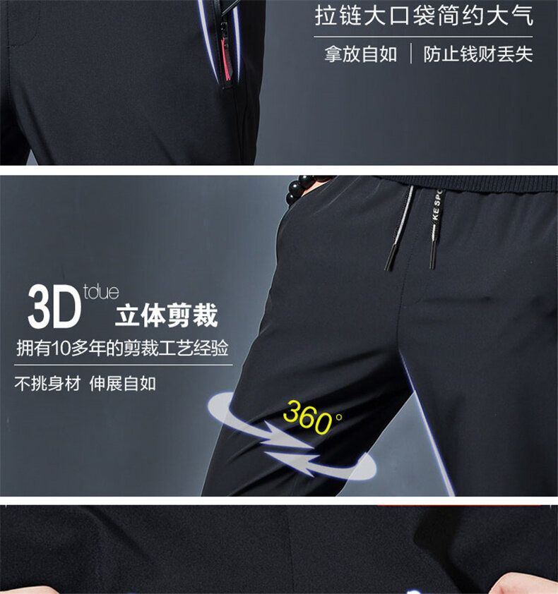 Douyin 버전 속건성 바지 남성 여름 2025 얇은 캐주얼 스포츠 9 점 아이스 실크 지퍼 바지 남성스토어 가기