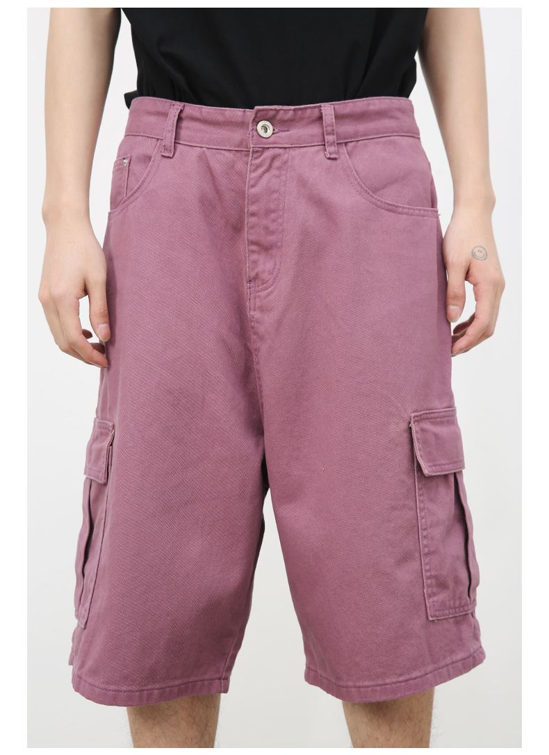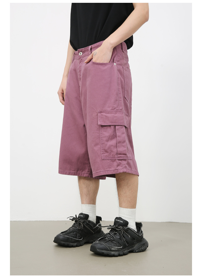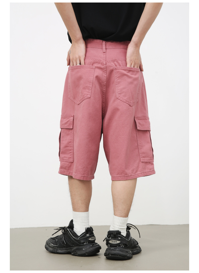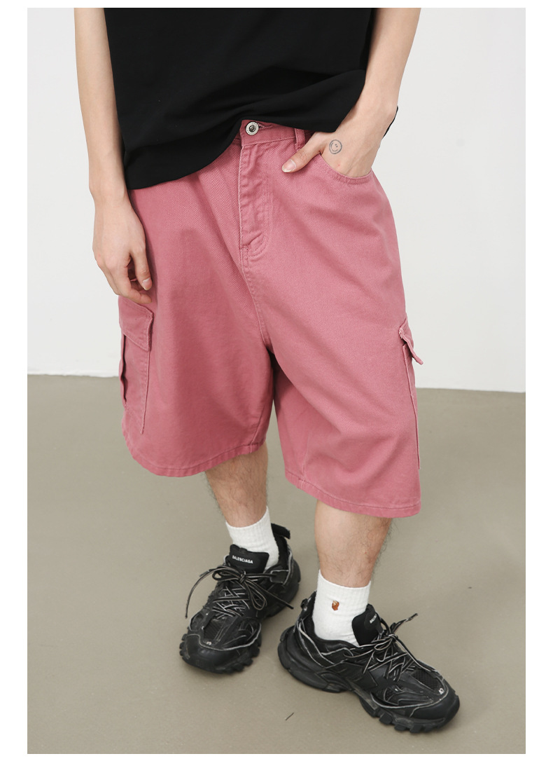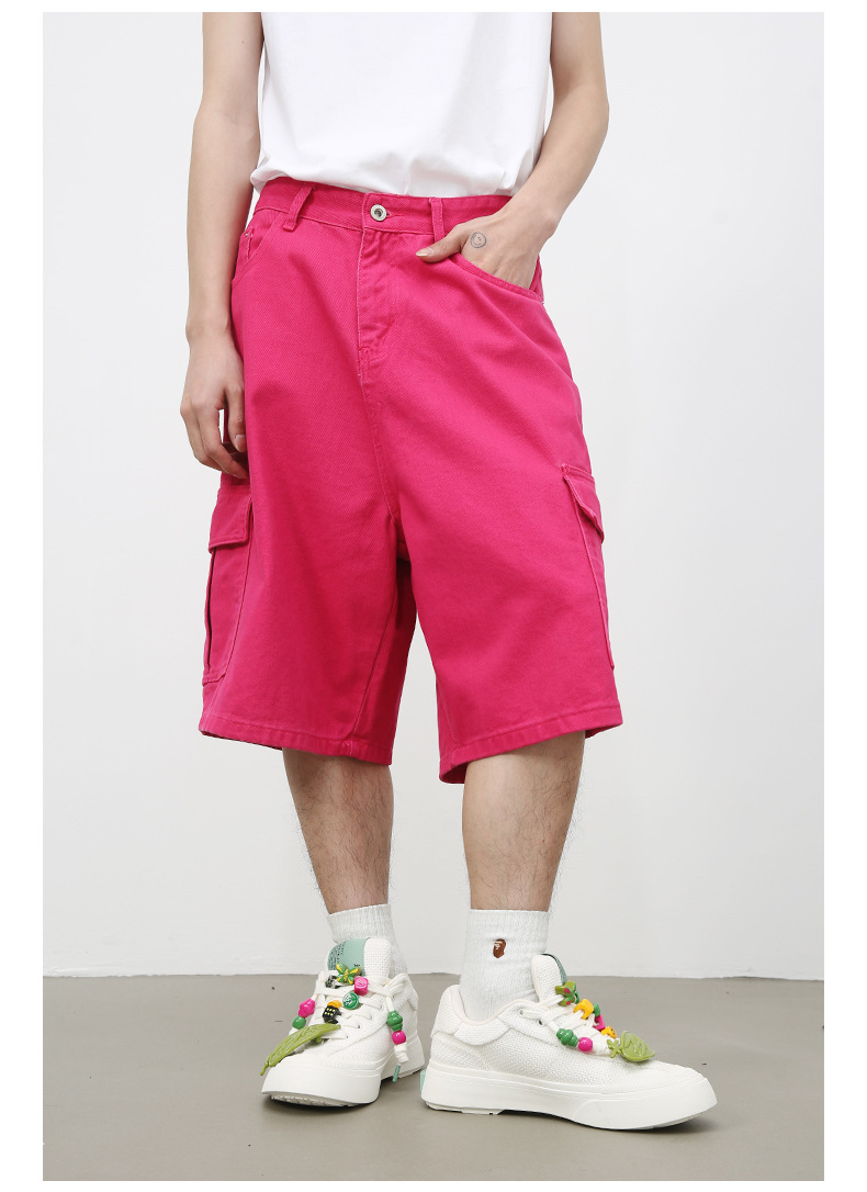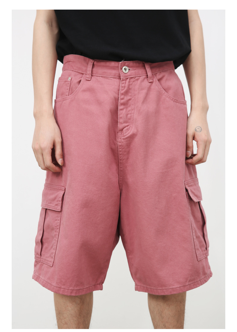 Nirben 데님 | 여름 새로운 스트레이트 다리 넓은 다리 작업복 데님 반바지 남성용 느슨한 캐주얼 조커 바지
