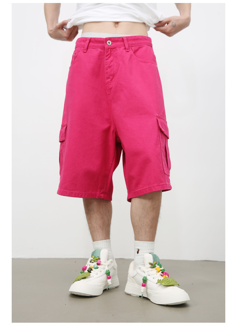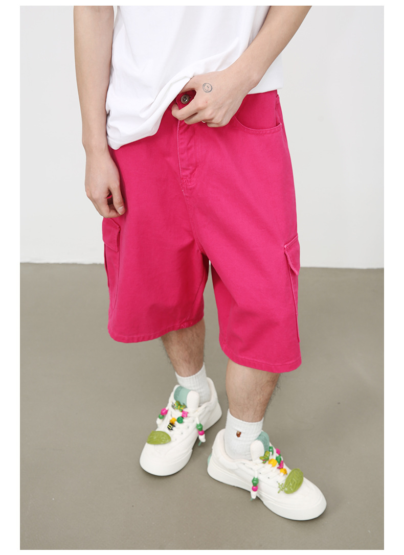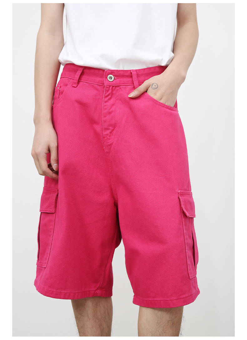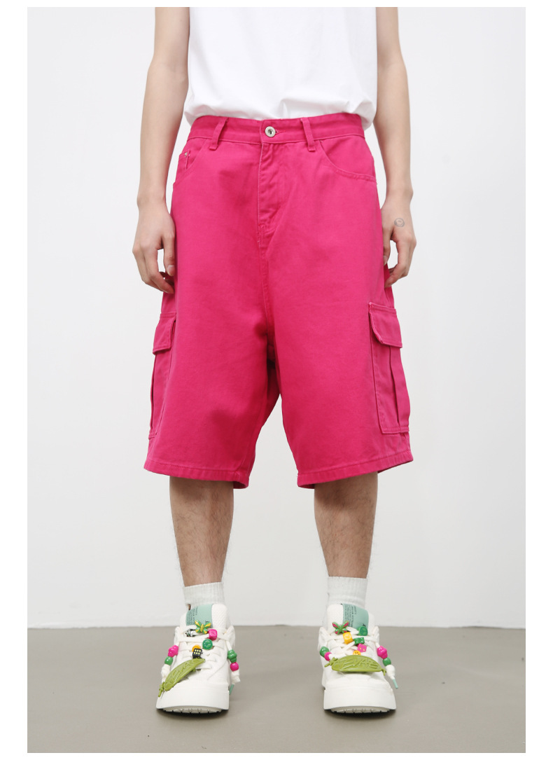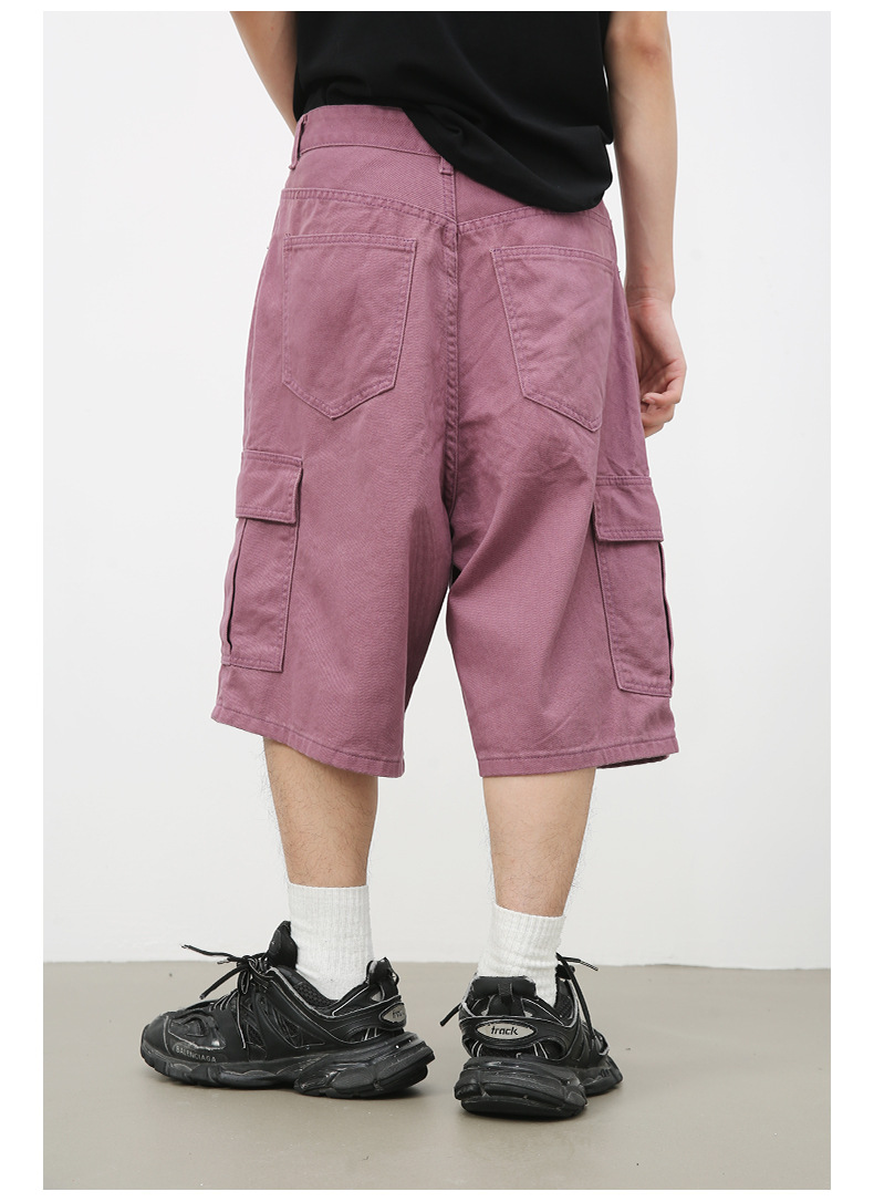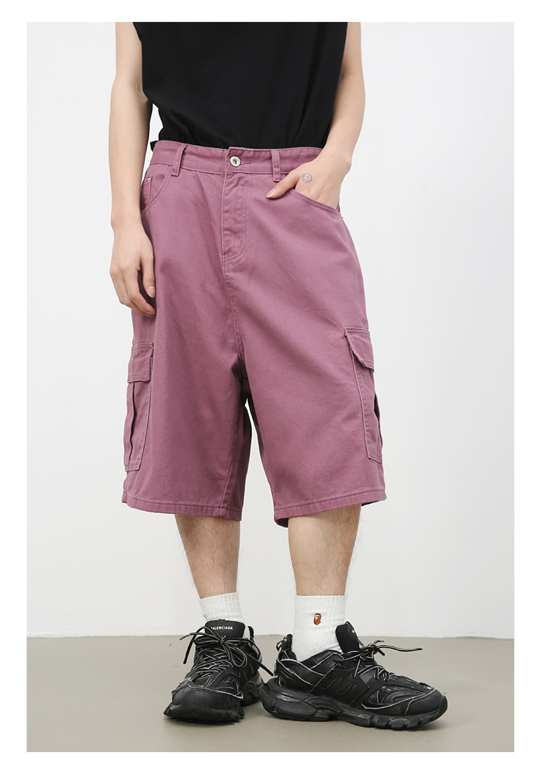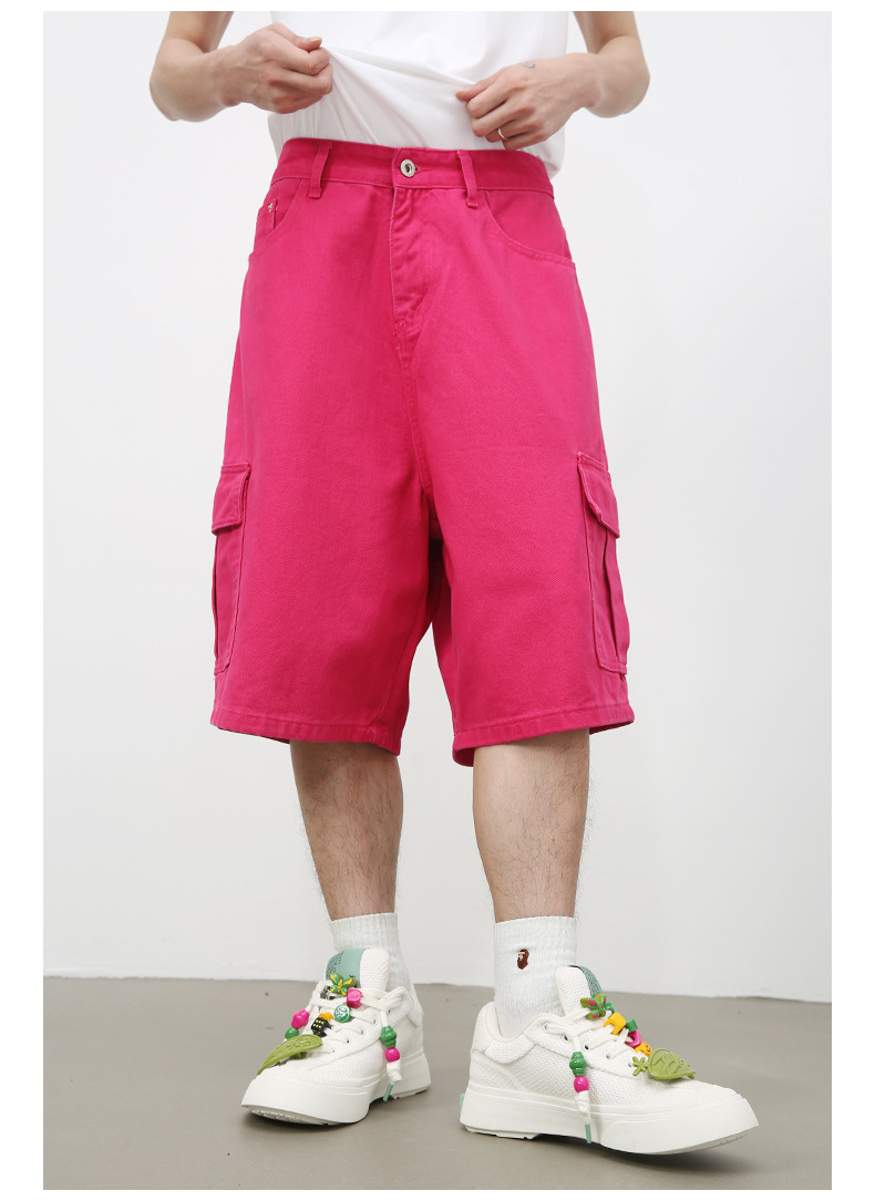 Nirben 데님 | 여름 새로운 스트레이트 다리 넓은 다리 작업복 데님 반바지 남성용 느슨한 캐주얼 조커 바지