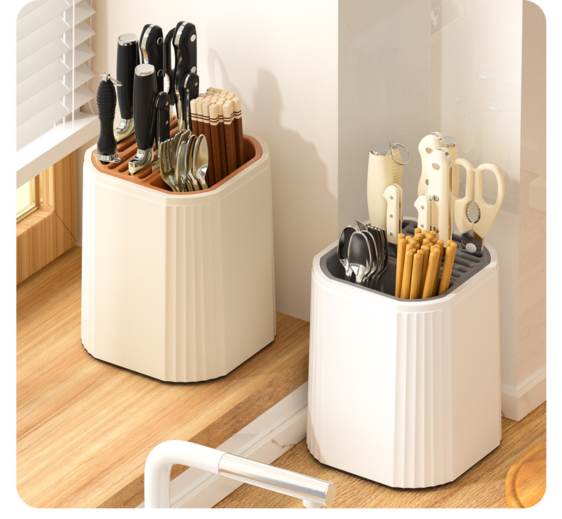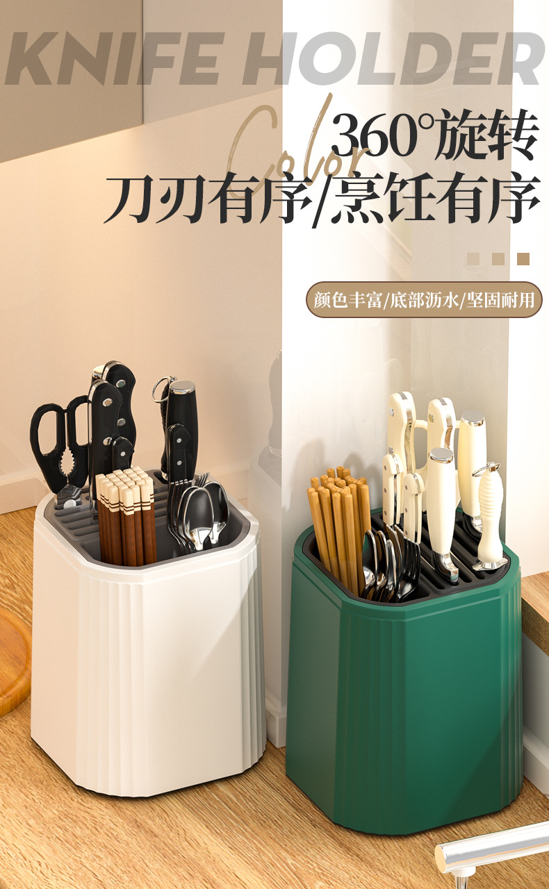 새로운 주방 나이프 랙 가정용 카운터 탑 주방 나이프 랙 회전 스토리지 랙 다기능 젓가락 홀더 통합 스토리지 박스