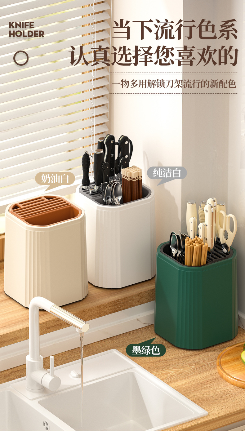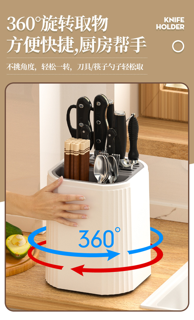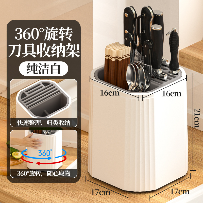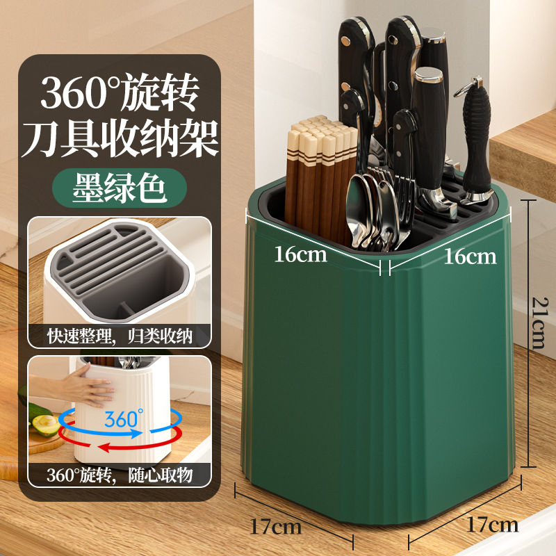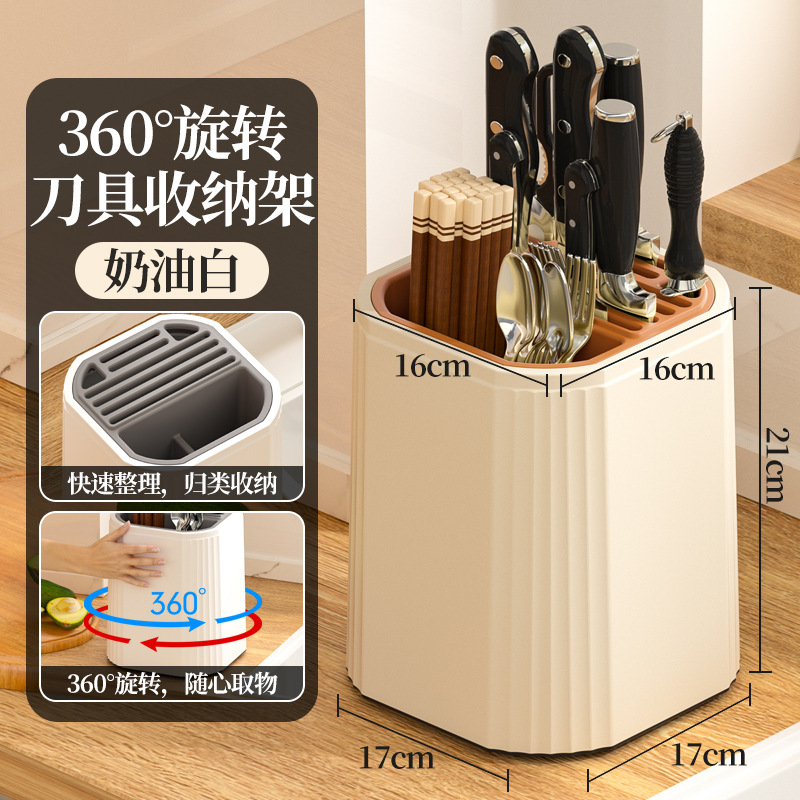 新款厨房刀架家用台面菜刀架子旋转置物架多功能筷子筒一体收纳盒