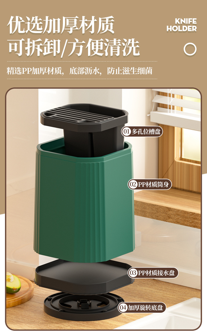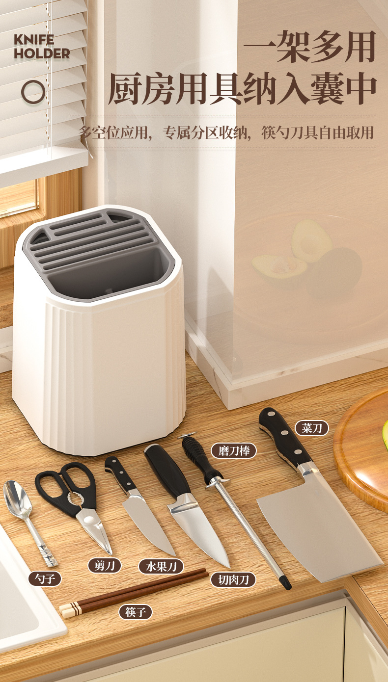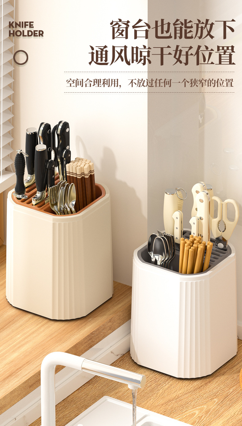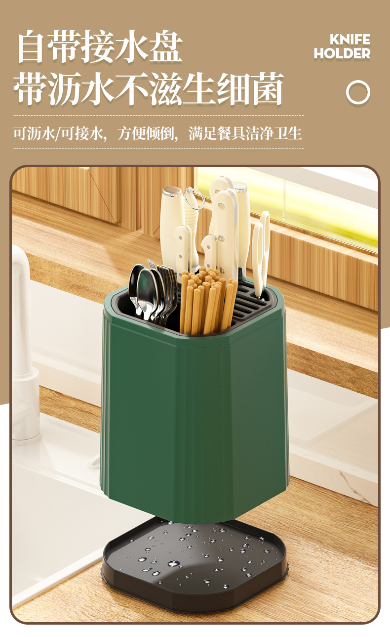 新款厨房刀架家用台面菜刀架子旋转置物架多功能筷子筒一体收纳盒