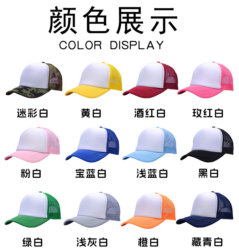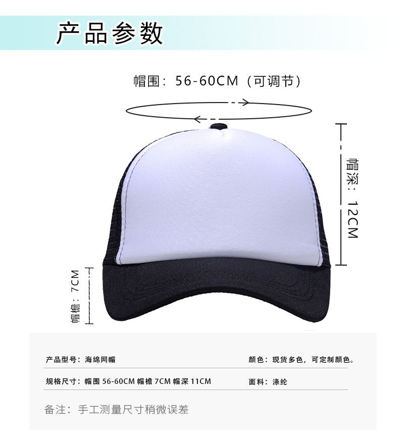 재고 스폰지 그물 모자 광고 모자 맞춤 로고 인쇄 자수 트럭 캡 대외 무역 여행 모자 도매
