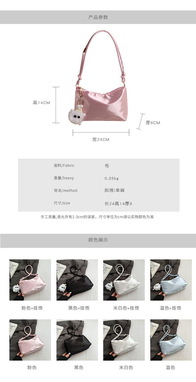 한국 스타일 틈새 나일론 헝겊 가방 2023 새로운 여성 가방 인기 패션 크로스 바디 백 핸드 숄더 언더암 가방스토어 가기