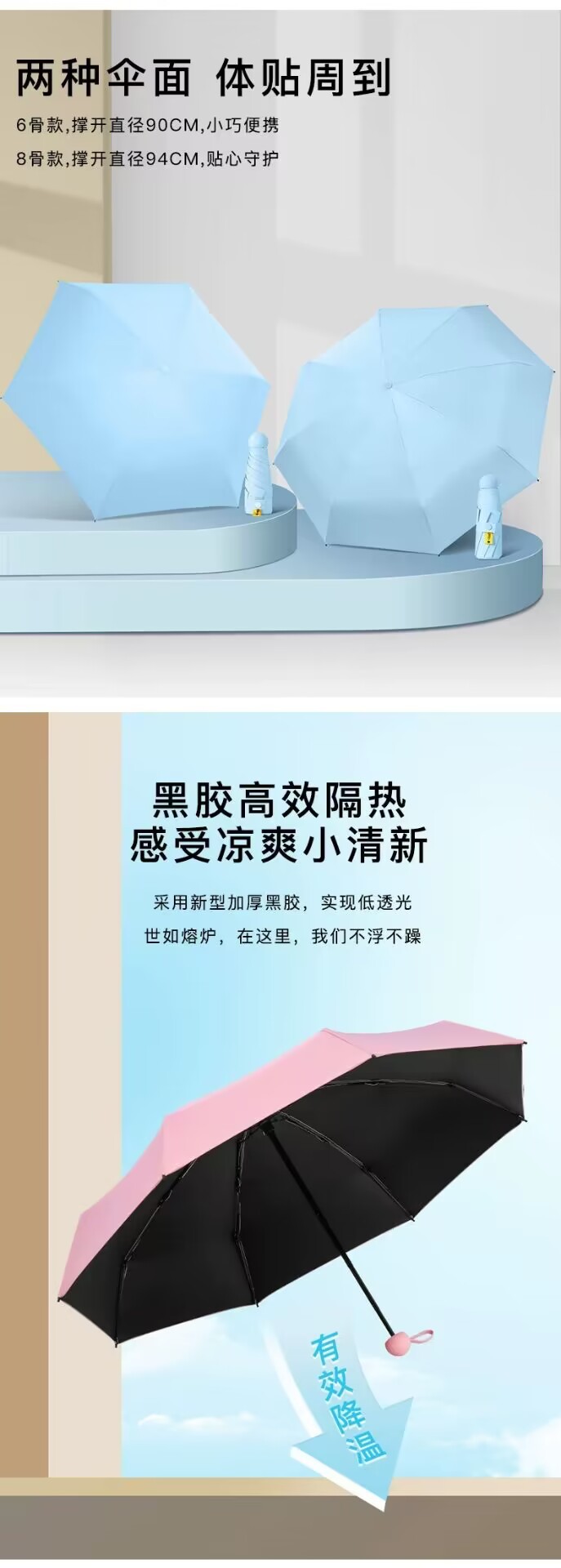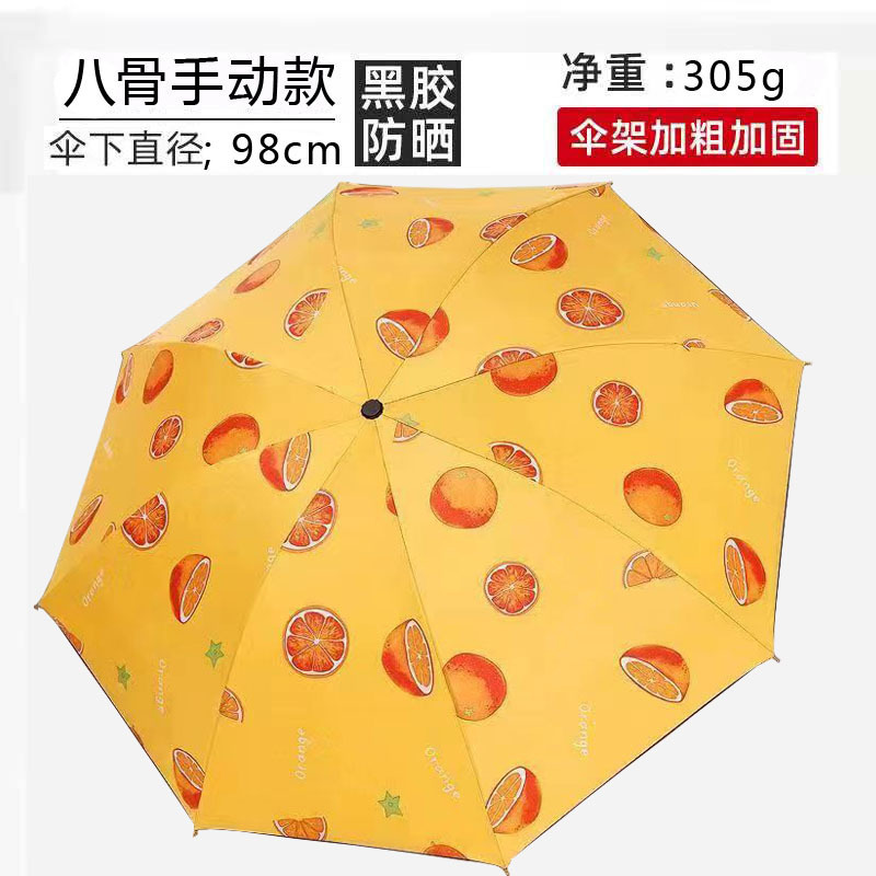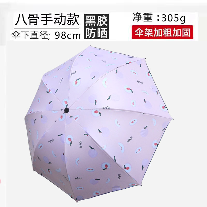 • 세 배 여덟 뼈 검은 플라스틱 우산 [복숭아 가루]