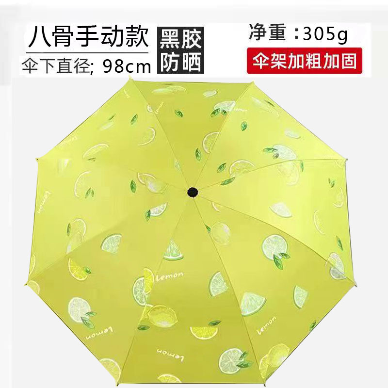 • 세 배 여덟 뼈 검은 플라스틱 우산 [자몽 옐로우]]