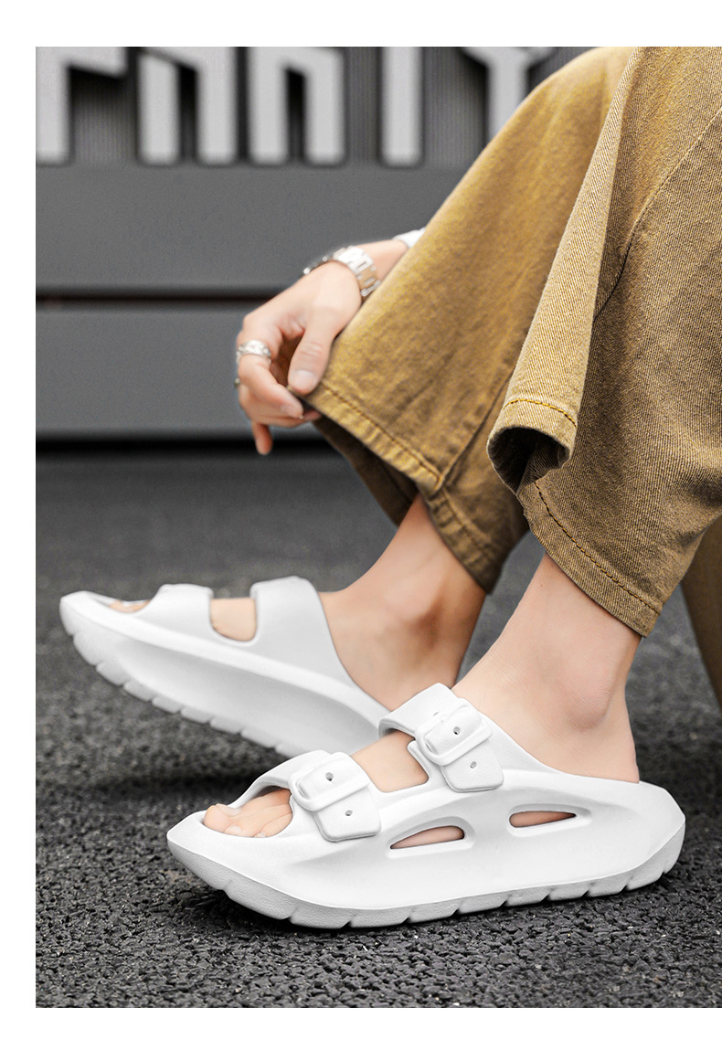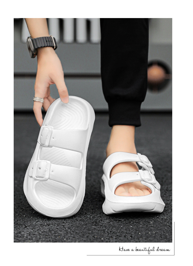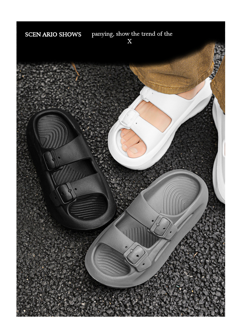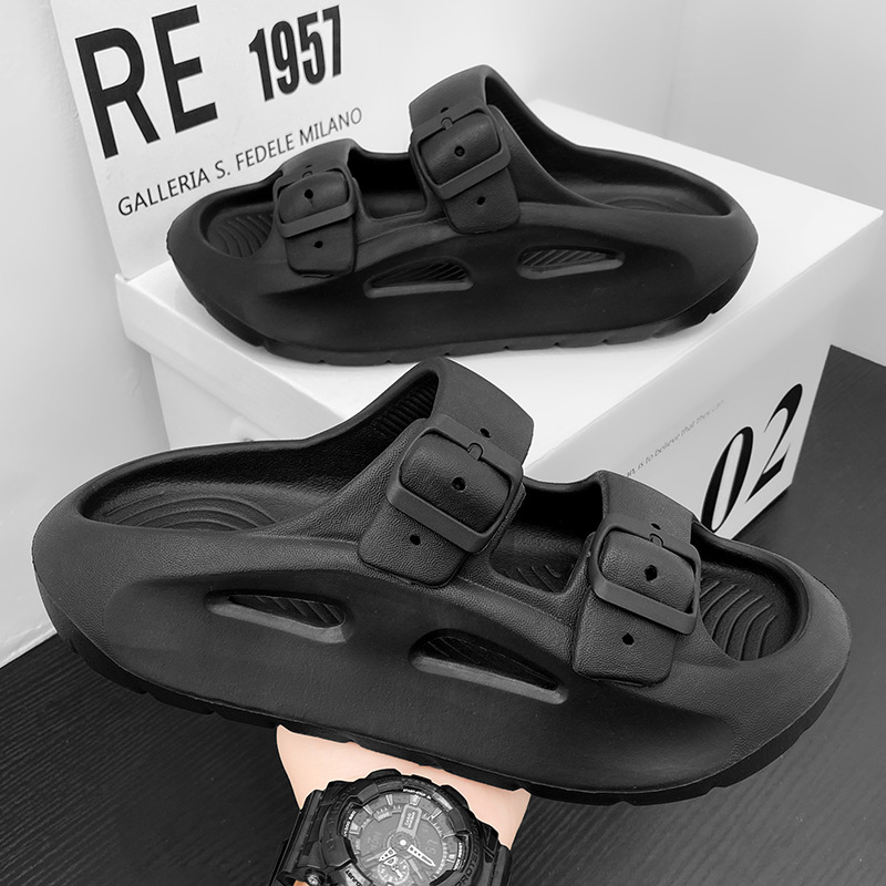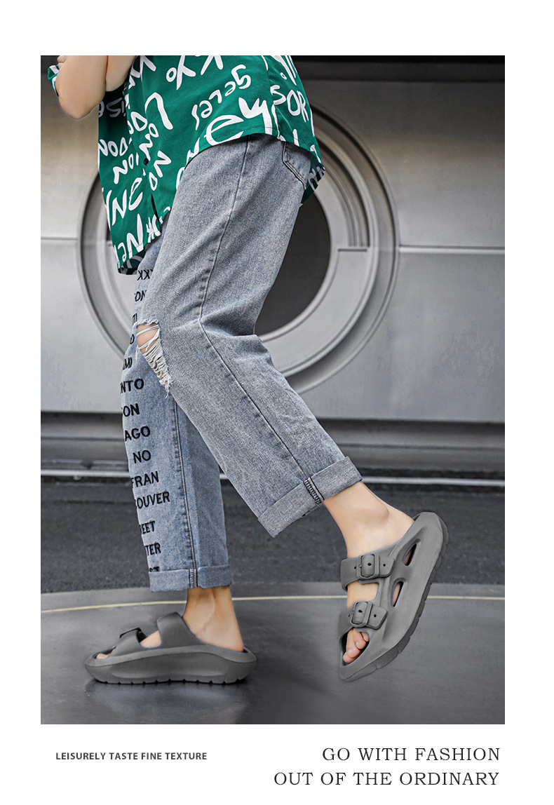 국경 간 플러스 사이즈 새로운 남성의 두꺼운 밑창 통기성 샌들이 배설물에 발을 들여 놓고 한 단어 드래그 여름 야외 해변 신발 도매스토어 가기