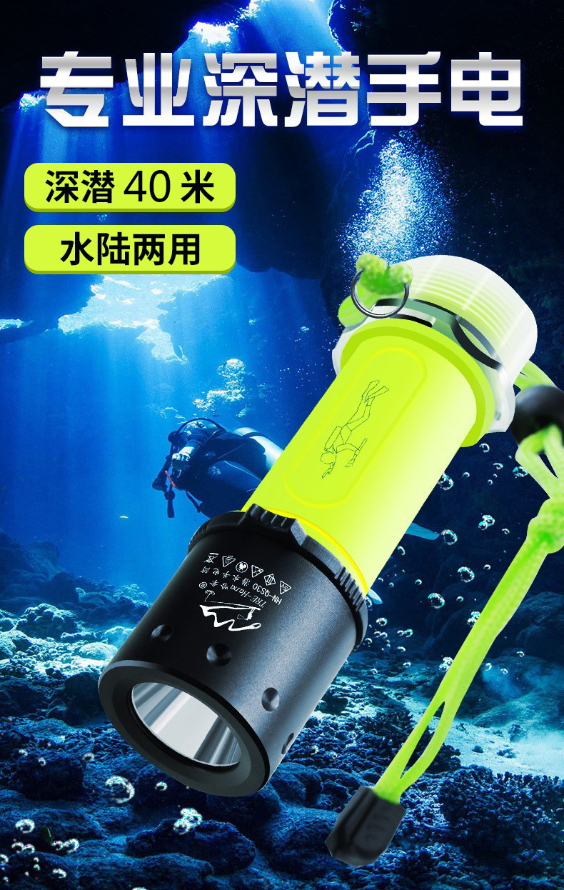 다이빙 전용 손전등, 강한 빛, 충전식, 야외 방수, 수중 심해 다이빙, 야간 다이빙, 물고기 잡기, 바다 탐험용 램프, LED 램프스토어 가기