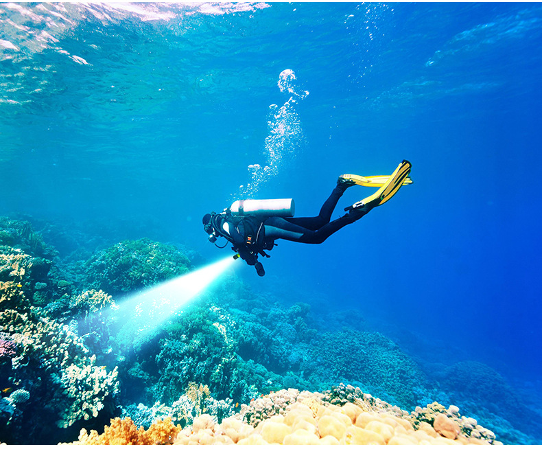 다이빙 전용 손전등, 강한 빛, 충전식, 야외 방수, 수중 심해 다이빙, 야간 다이빙, 물고기 잡기, 바다 탐험용 램프, LED 램프