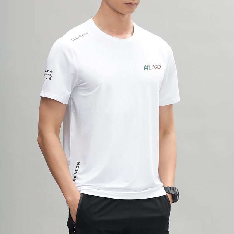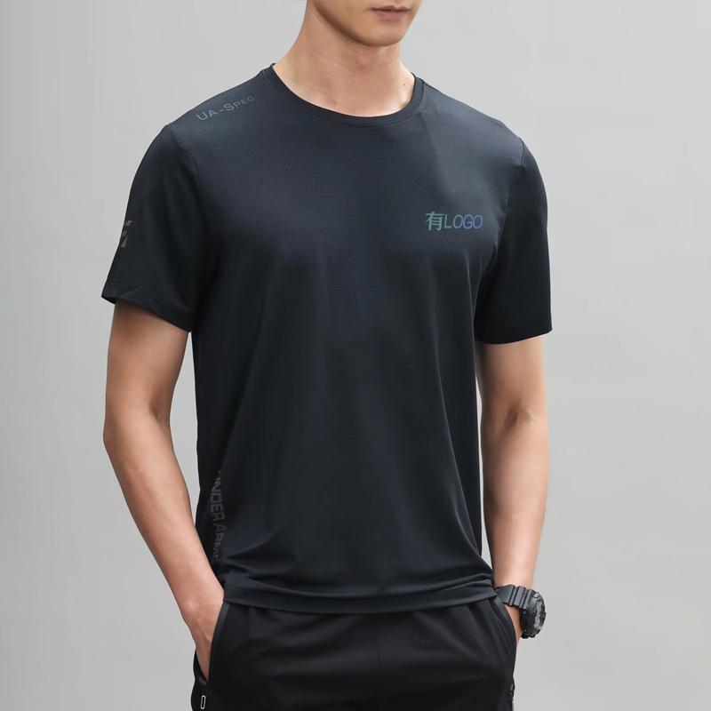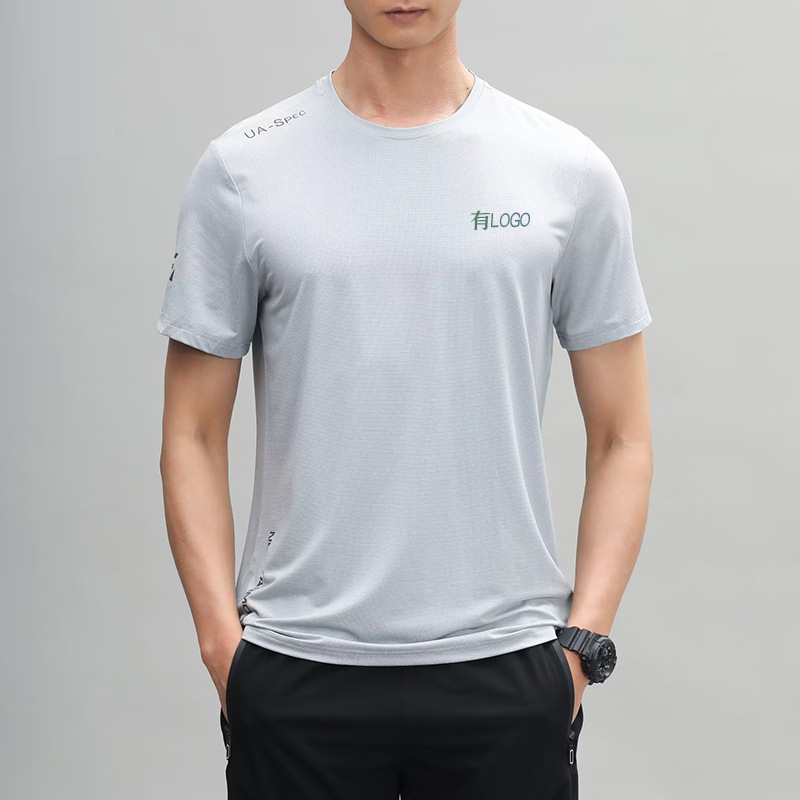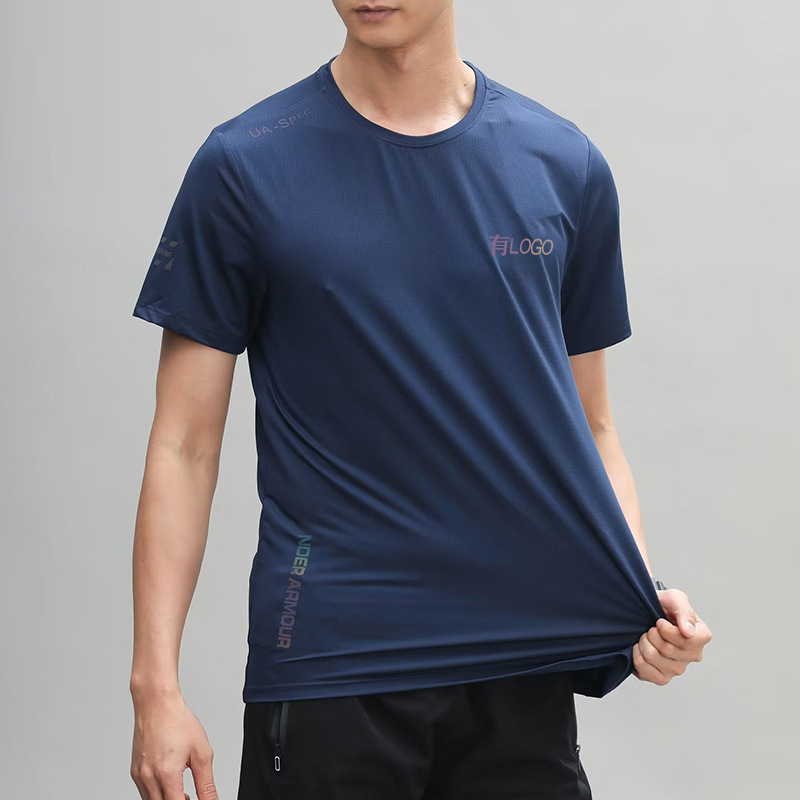 브랜드 재고 티셔츠 아이스 실크 스포츠 반팔 빠른 건조 옷 남자 여름 통기성 메쉬 스트레치 피트니스 캐주얼 탑스토어 가기