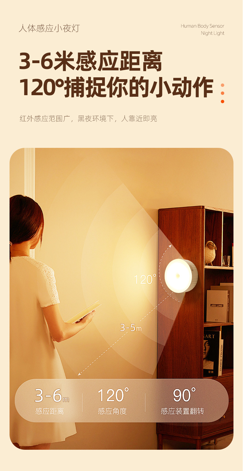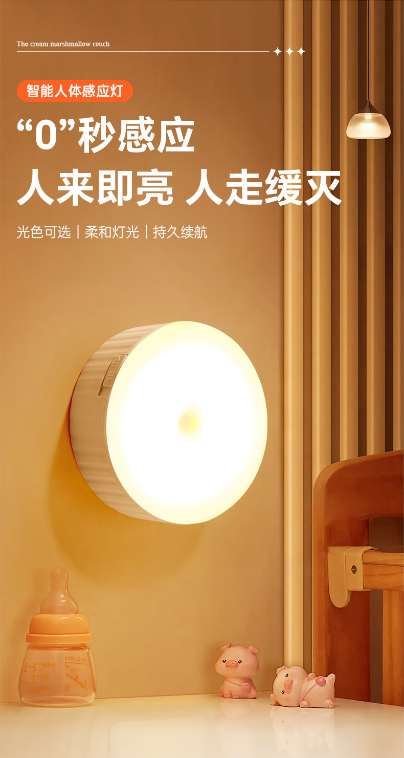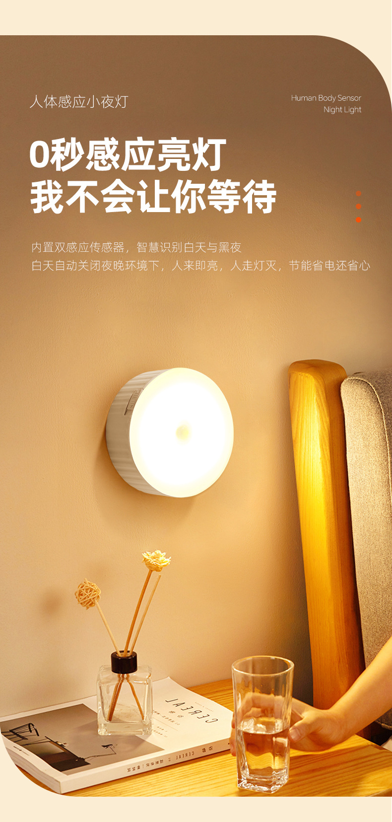 스마트 유도 야간 조명 인체 적외선 유도 야간 조명 USB 충전 어린이 침대 옆 램프 침실 통로 조명