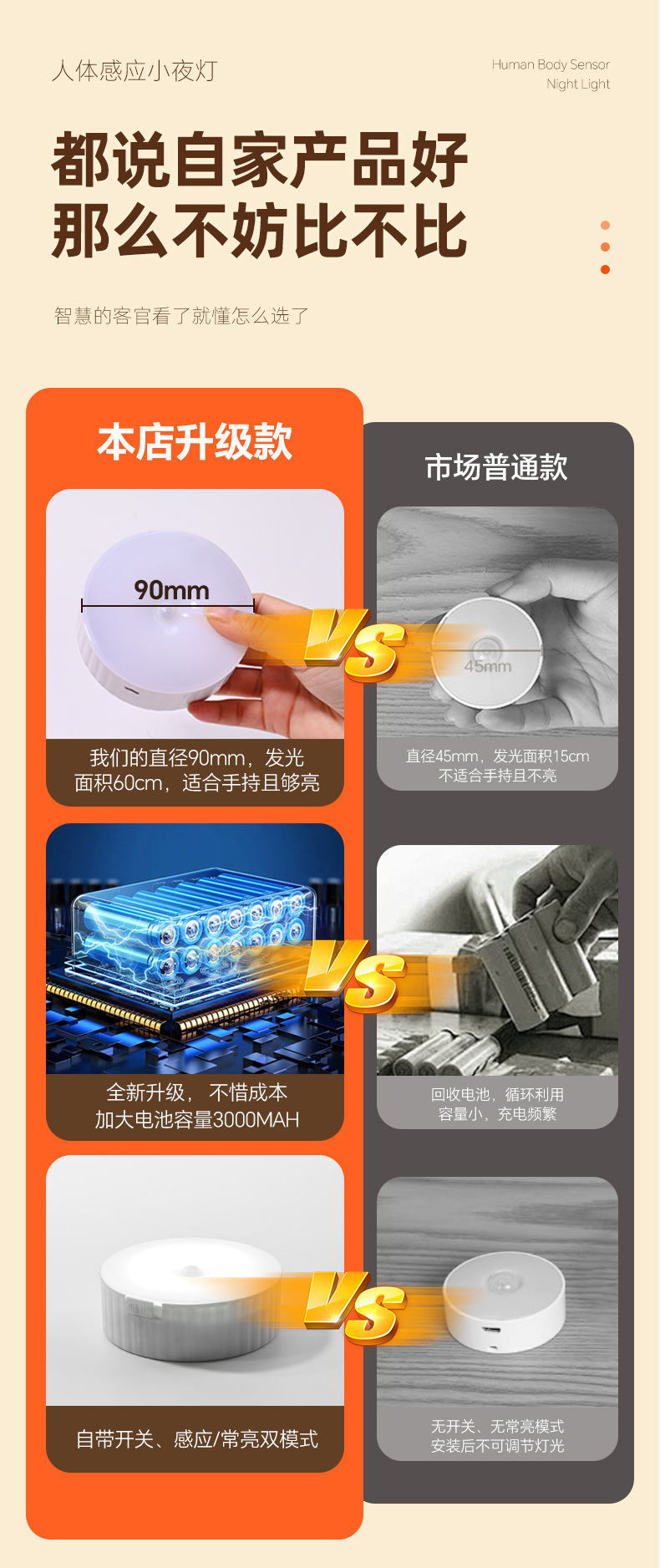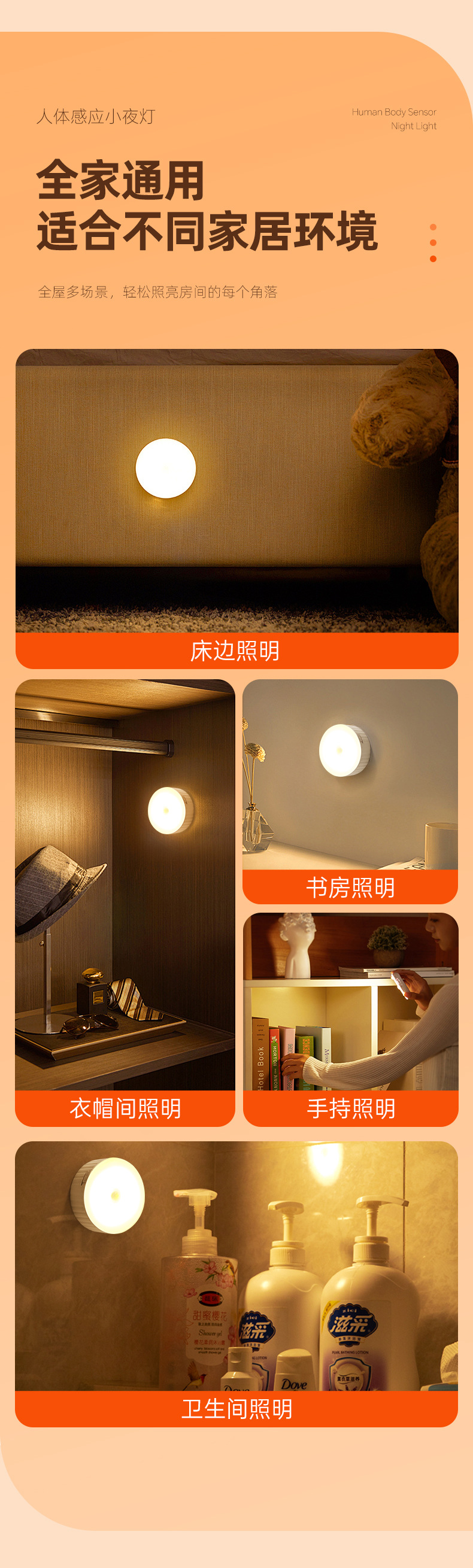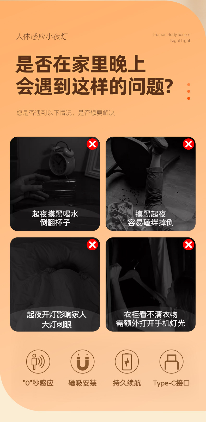 스마트 유도 야간 조명 인체 적외선 유도 야간 조명 USB 충전 어린이 침대 옆 램프 침실 통로 조명