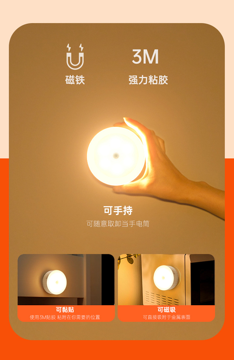 • 따뜻한 빛 킹 센서 야간 조명 [3M 자기 접착제 + 고속 충전 케이블 포함]