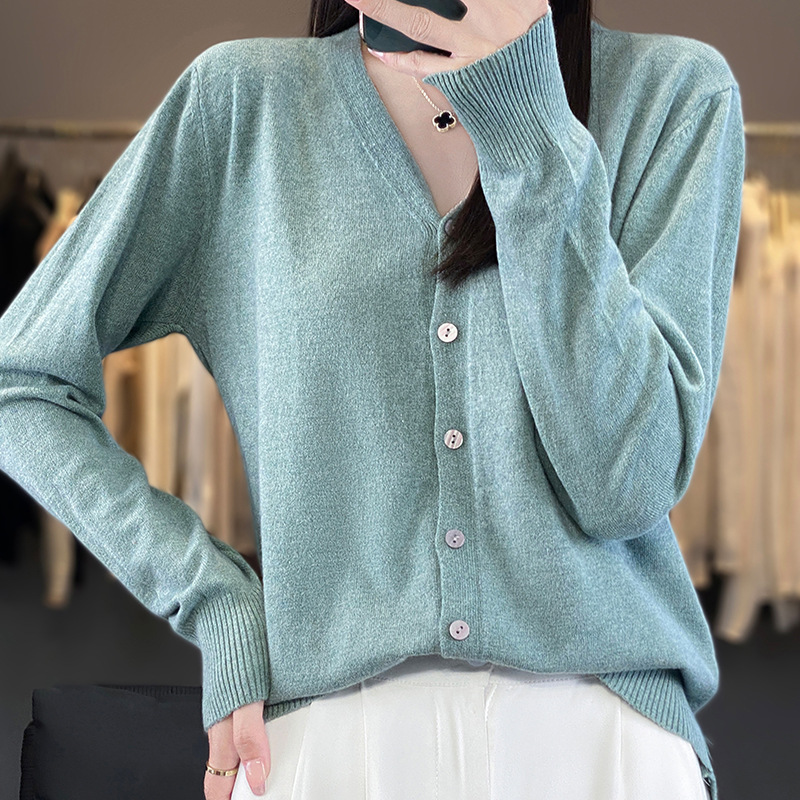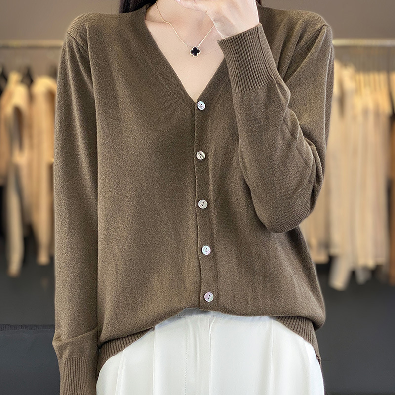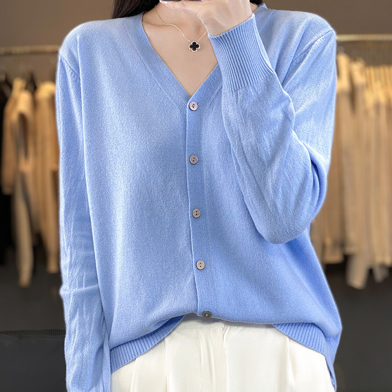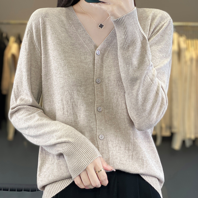 공장 도매 2024 봄과 여름 새로운 V 넥 카디건 긴 소매 스웨터 코트 여성 머리카락을 대신하여 활동을 지원합니다.