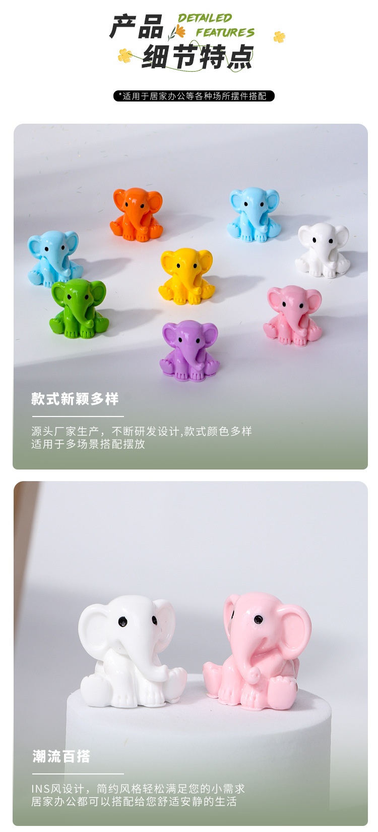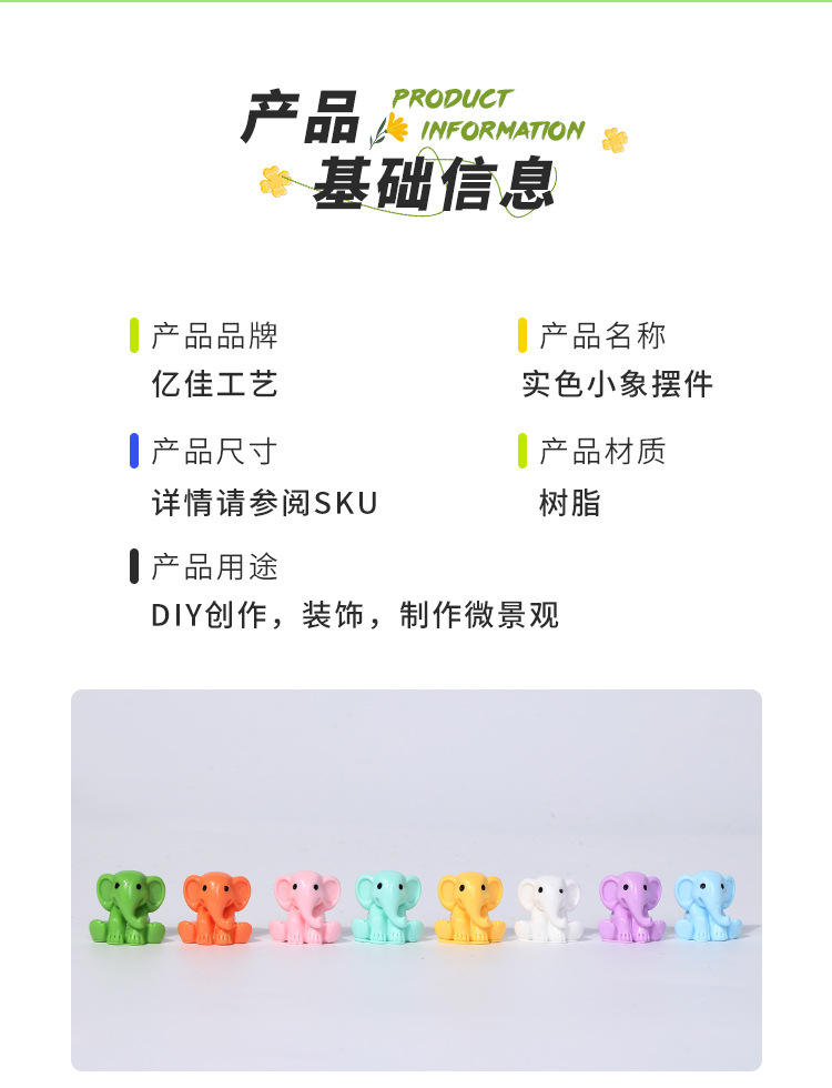 마이크로 풍경 귀여운 여러 가지 빛깔의 아기 코끼리 동물 인형 장식 액세서리 미니 데스크탑 장식 수지 장식품 수제