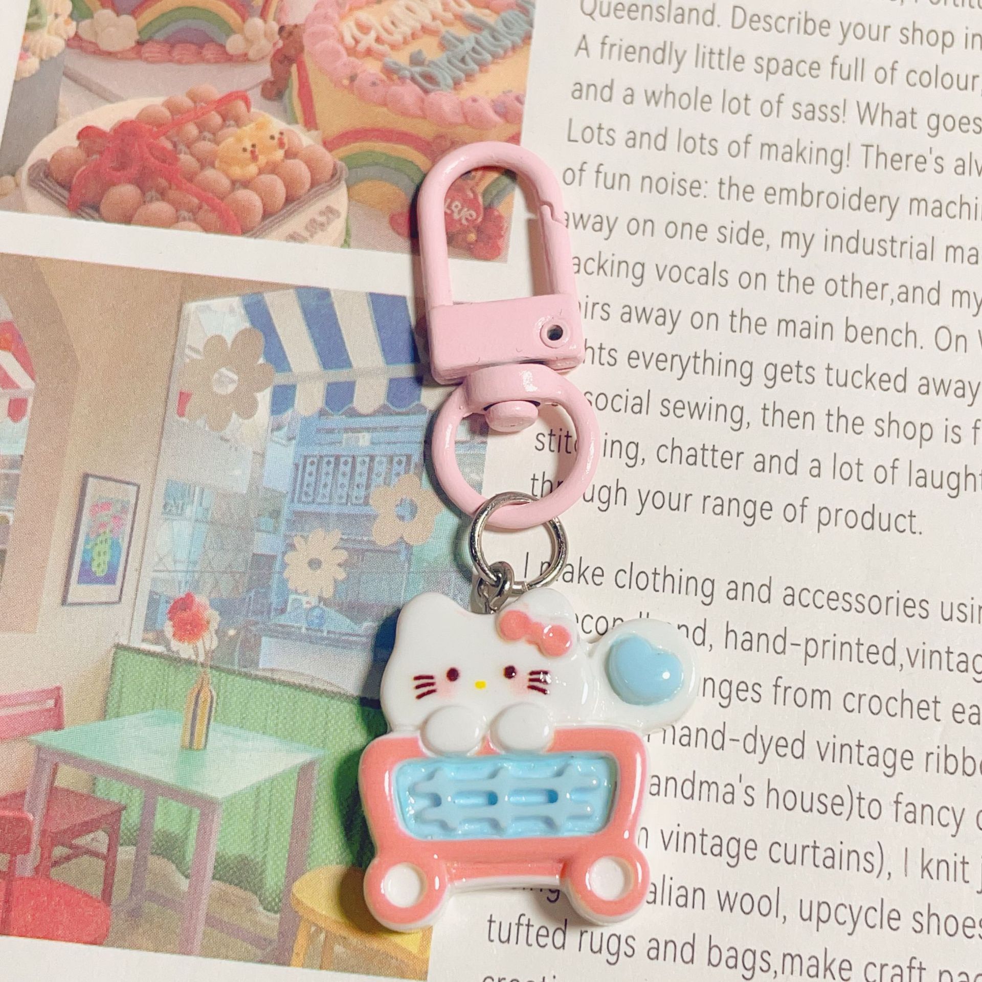 쇼핑 카트 스케이트 보드 고양이 키 체인 귀여운 재미 만화 펜던트 커플 여자 친구 교수형 배낭 액세서리 선물스토어 가기