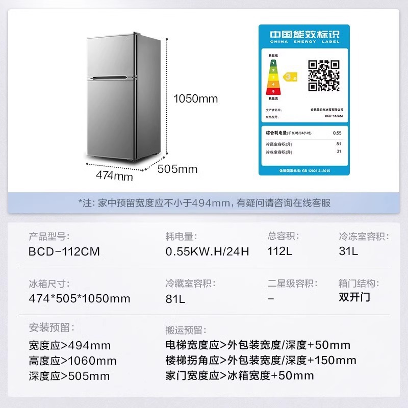 두 개의 문을 가진 Midea/Midea BCD-112CM 가정용 작은 냉장고