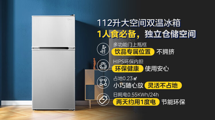 두 개의 문을 가진 Midea/Midea BCD-112CM 가정용 작은 냉장고스토어 가기
