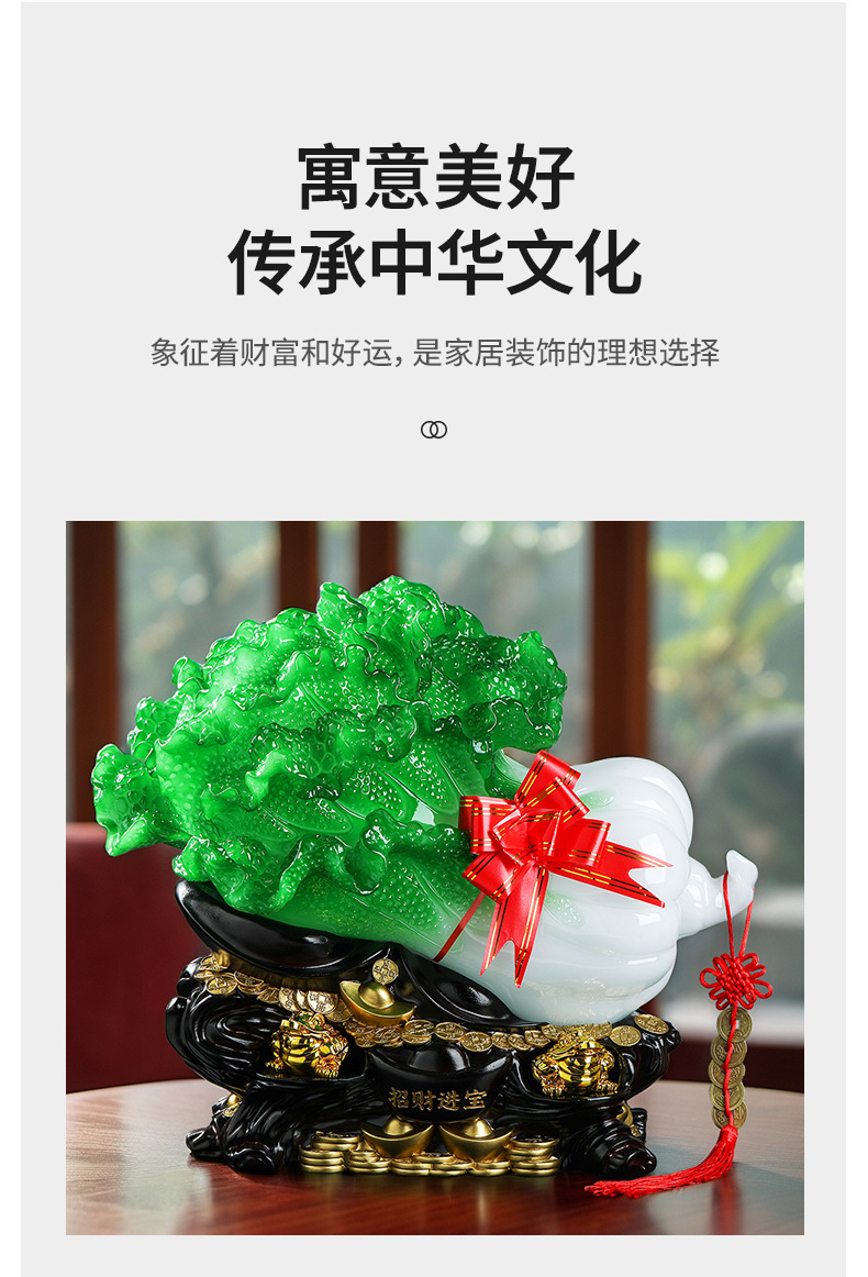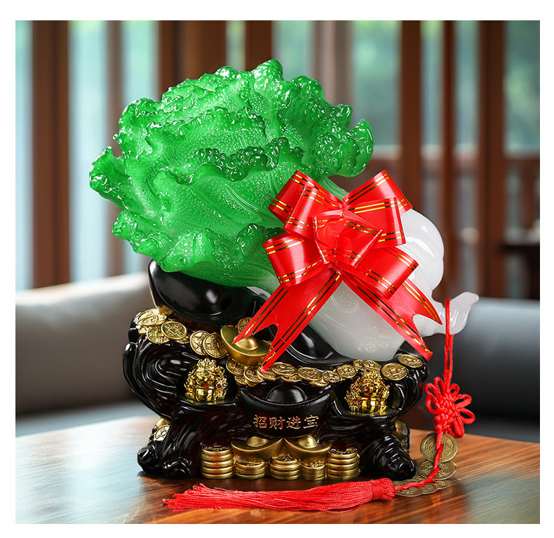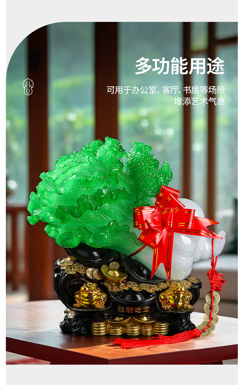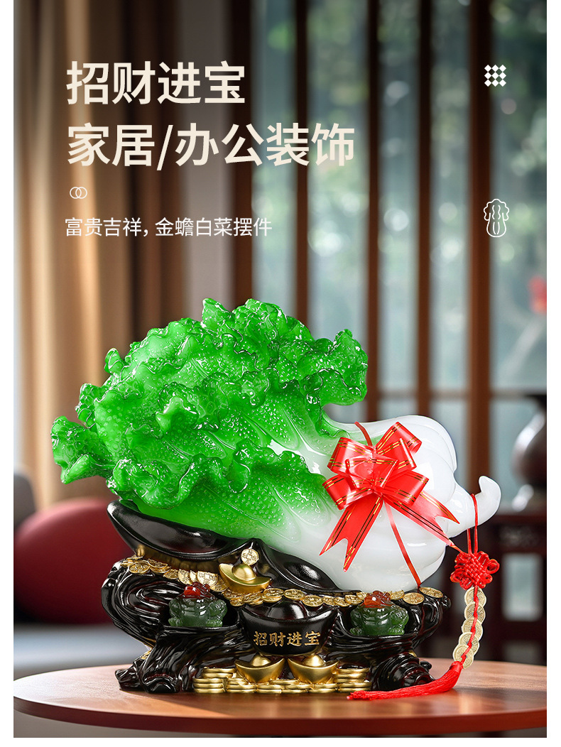 옥 양배추 장식 행운의 큰 황금 두꺼비 거실 입구 TV 와인 내각 가게 공예 장식 오프닝 선물