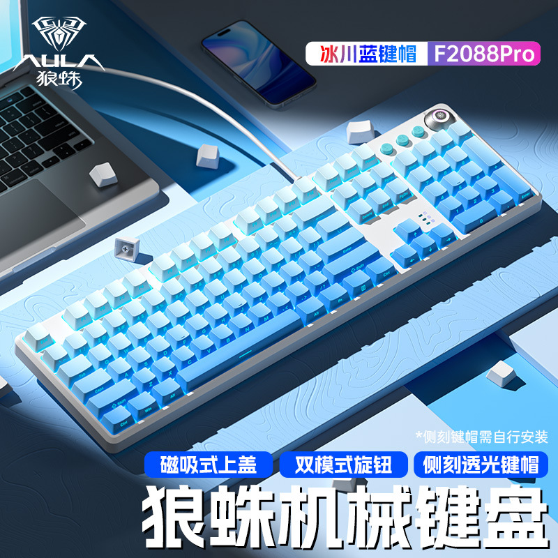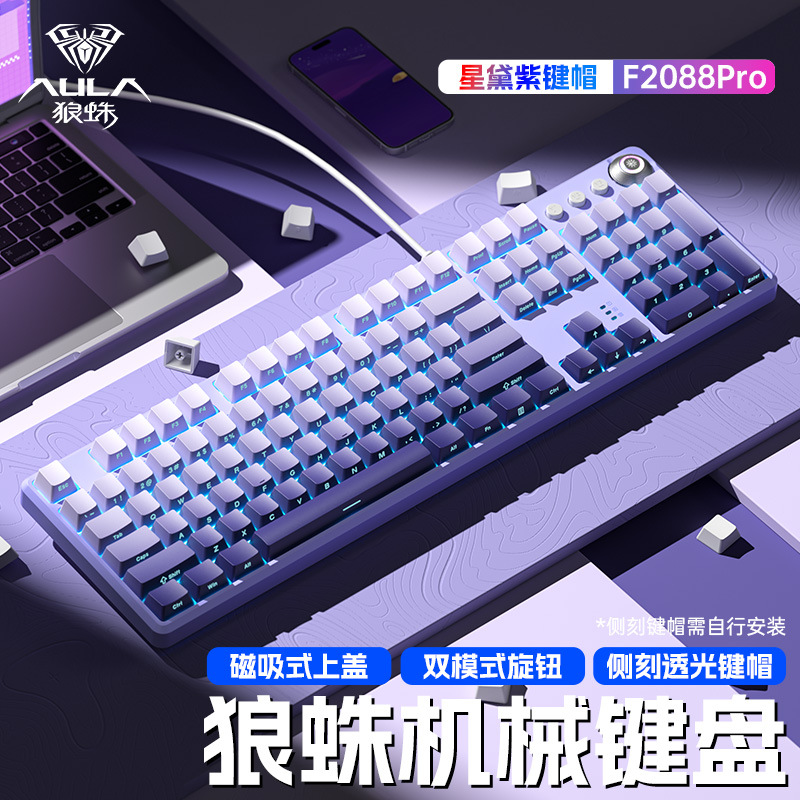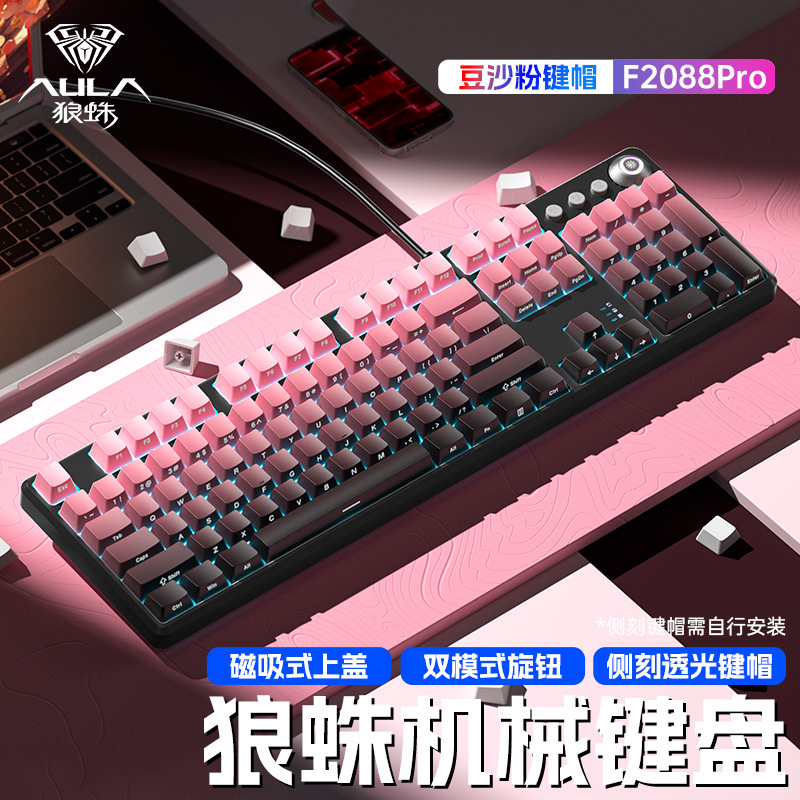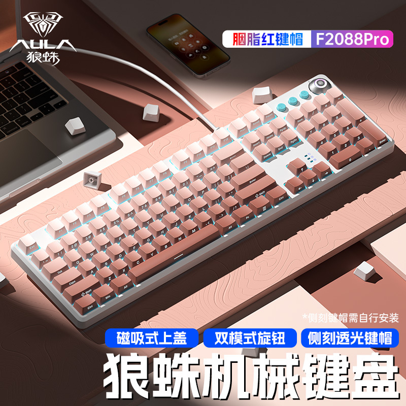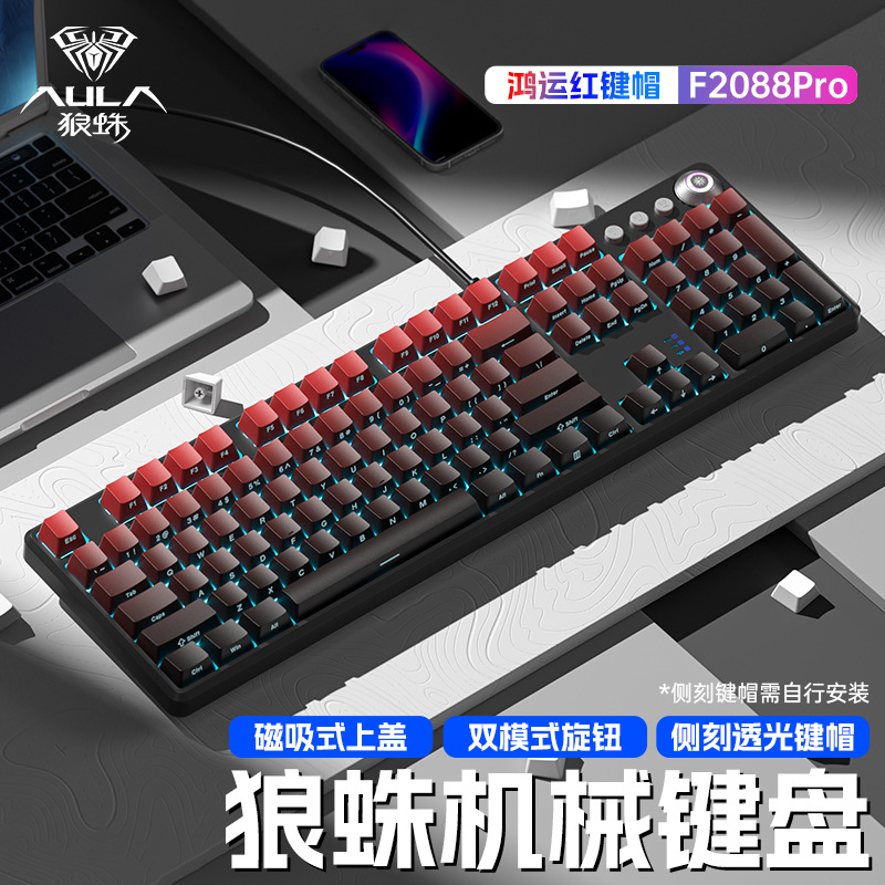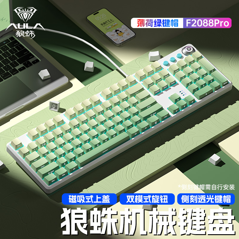 Wolf Spider F2088pro 유선 기계식 사이드 그라데이션 게이밍 그린/티/레드 스위치 사무용 데스크탑 키보드 기계식 키보드