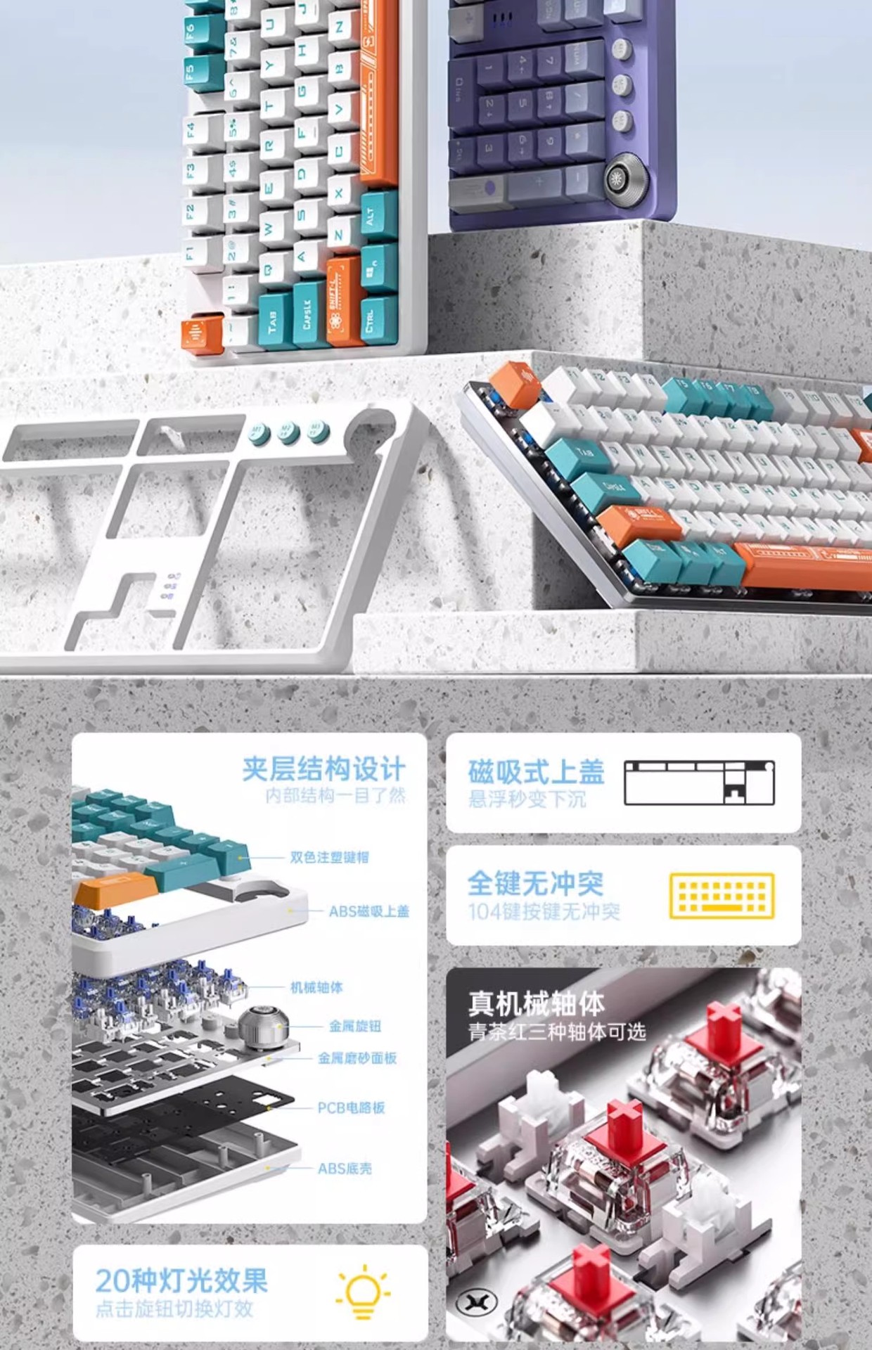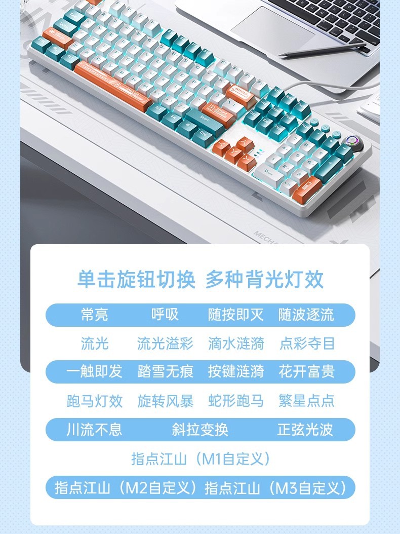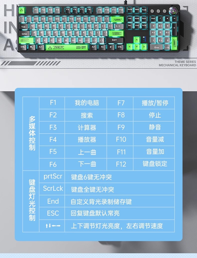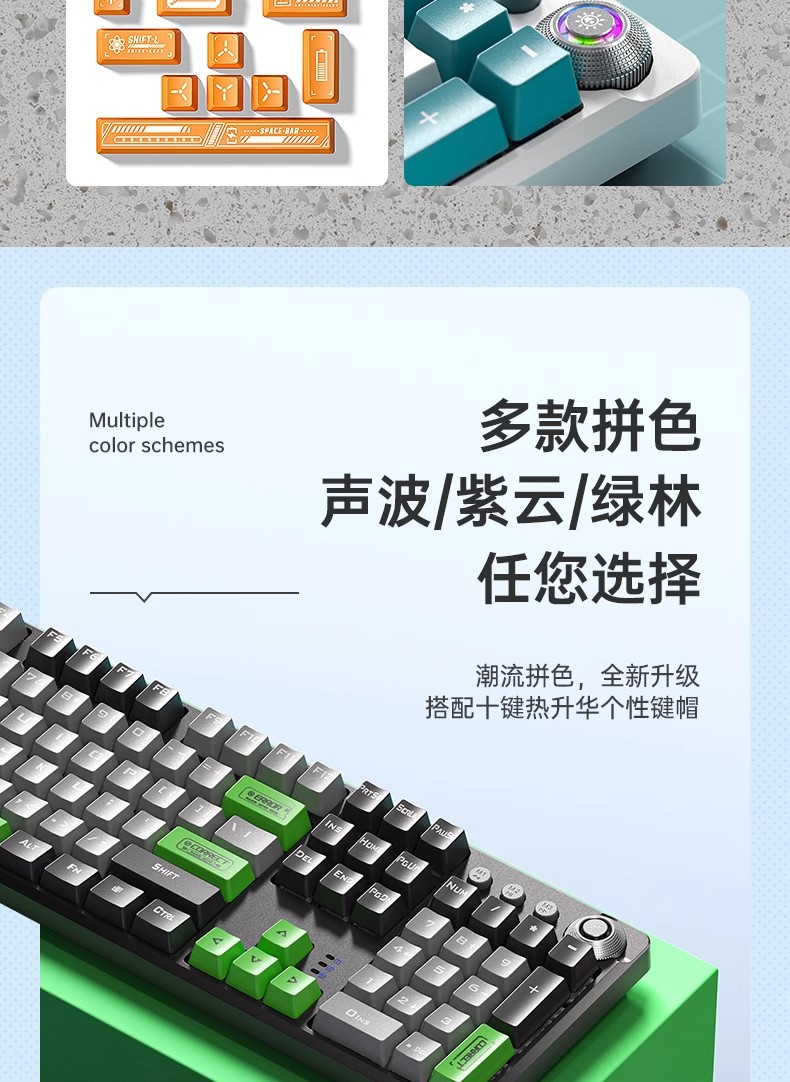 Wolf Spider F2088pro 유선 기계식 사이드 그라데이션 게이밍 그린/티/레드 스위치 사무용 데스크탑 키보드 기계식 키보드
