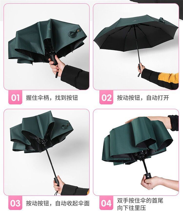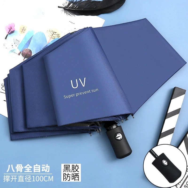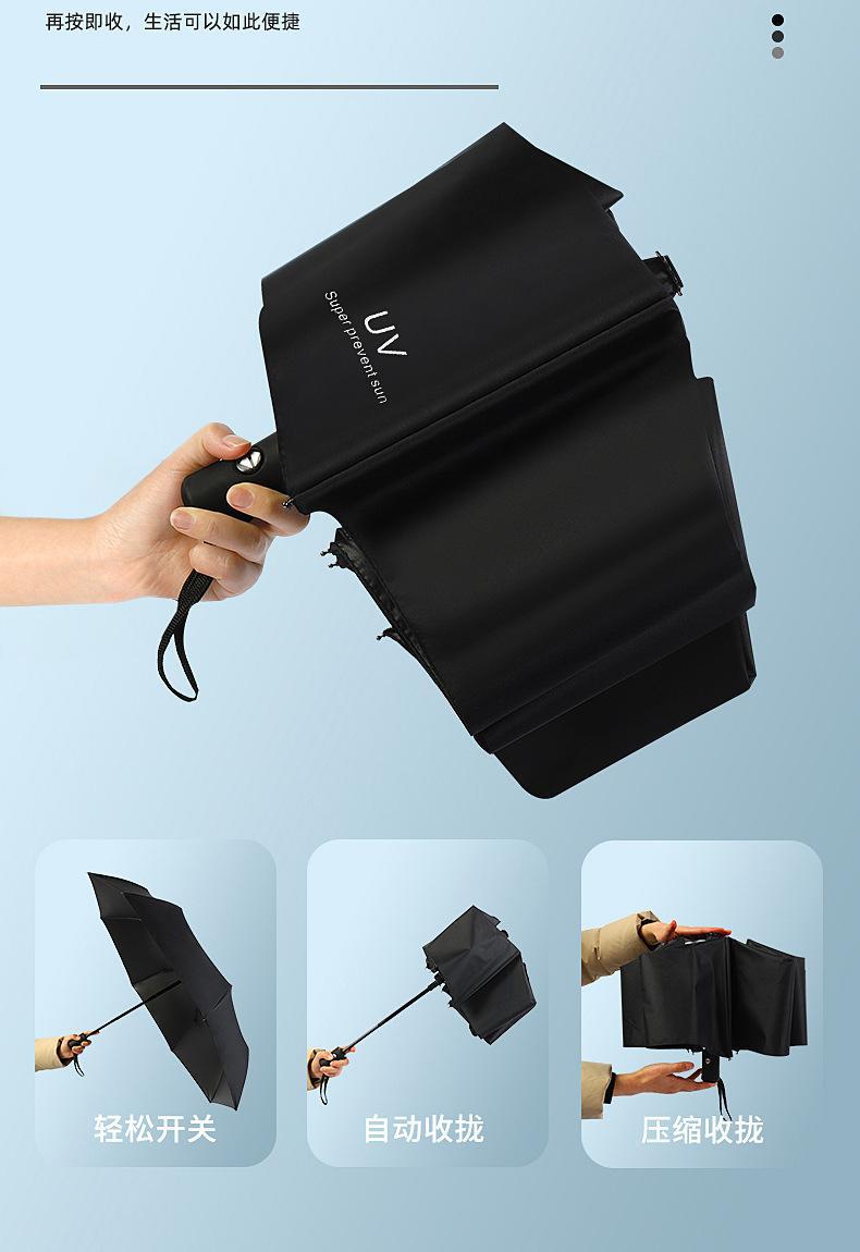 자동 햇빛과 비 이중 목적 선 스크린 UV 접는 태양 우산 UV 블랙 고무 차양 휴대용 3 배 우산스토어 가기