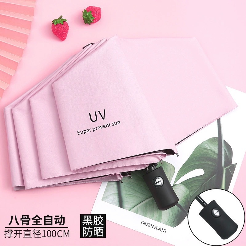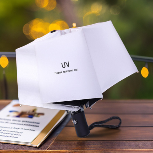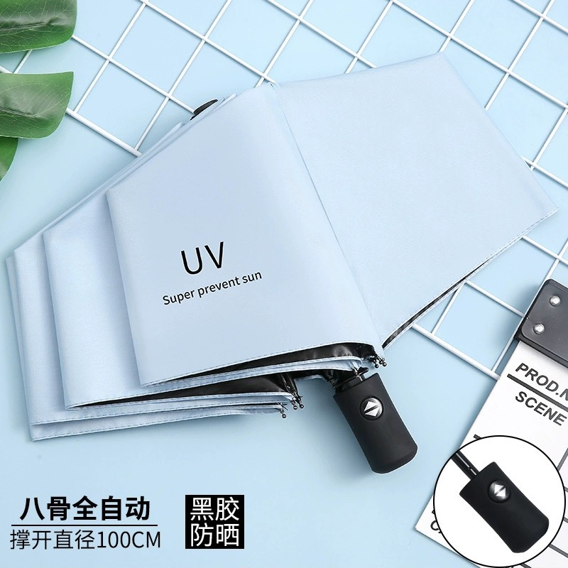 자동 햇빛과 비 이중 목적 선 스크린 UV 접는 태양 우산 UV 블랙 고무 차양 휴대용 3 배 우산