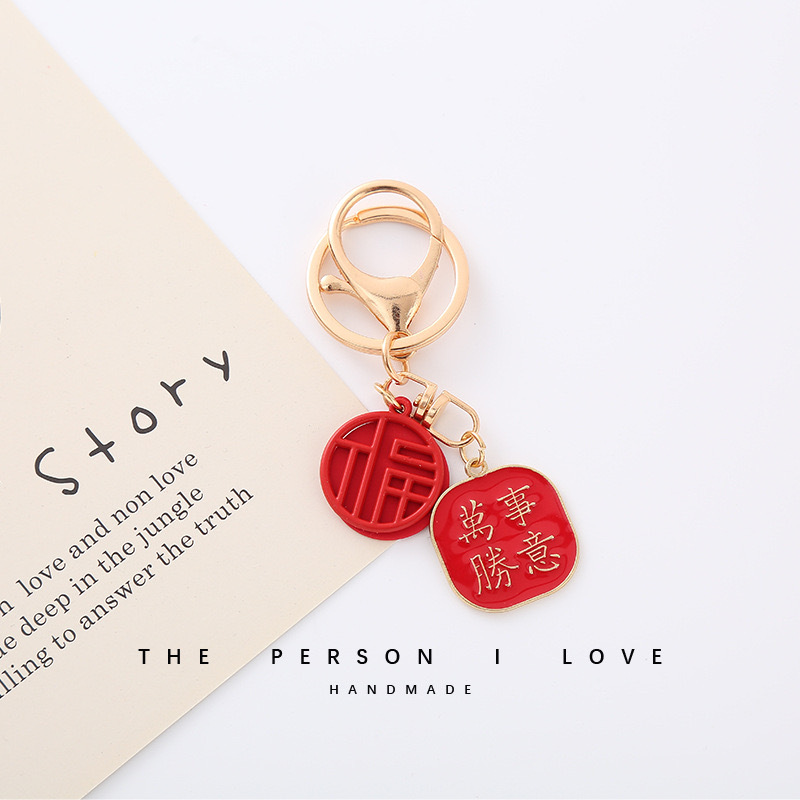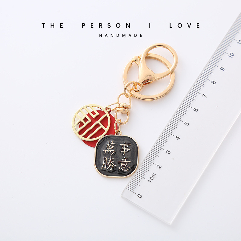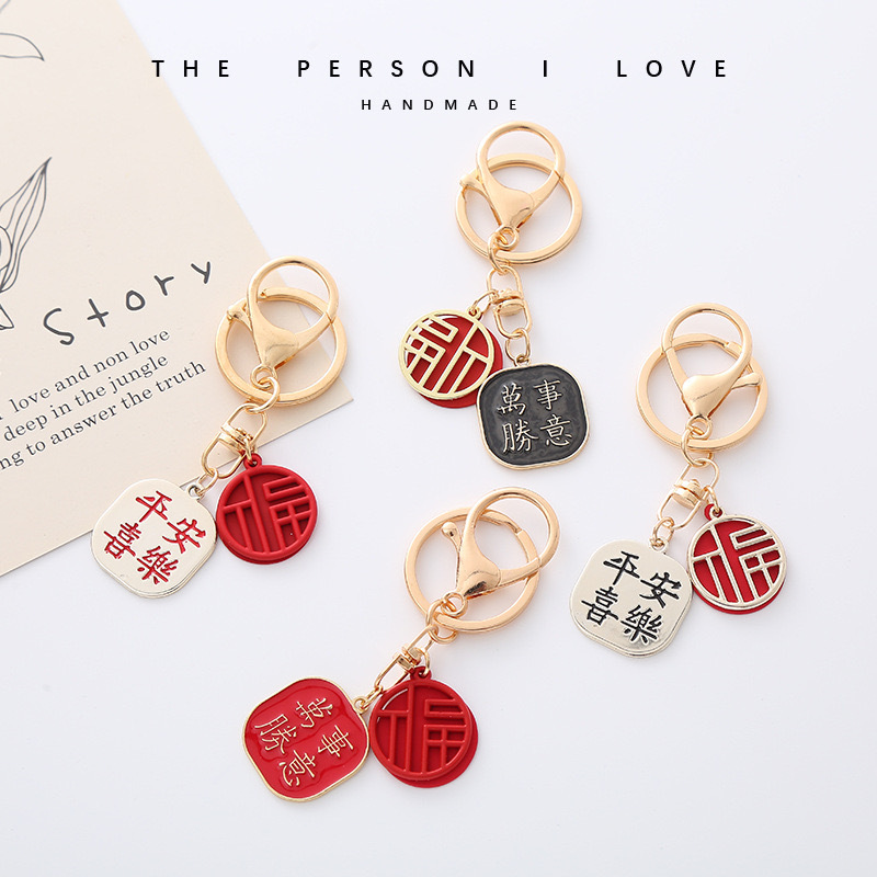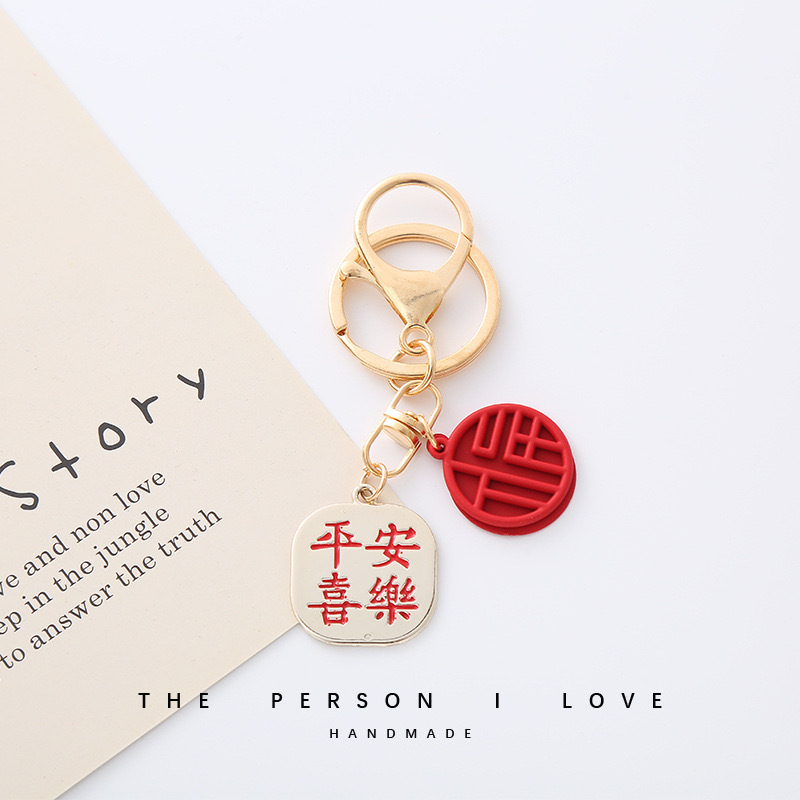 중국 스타일 키 체인 축복 단어 평화 기쁨 합금 창조적 인 선물 자동차 키 체인 가방 펜던트