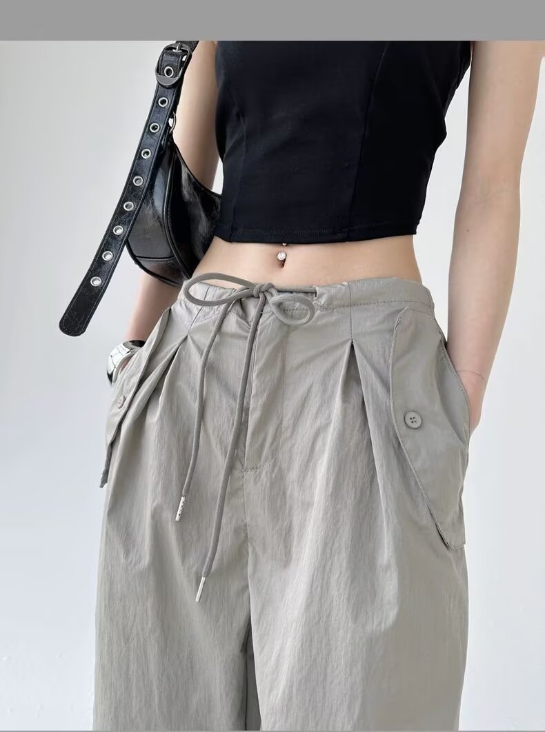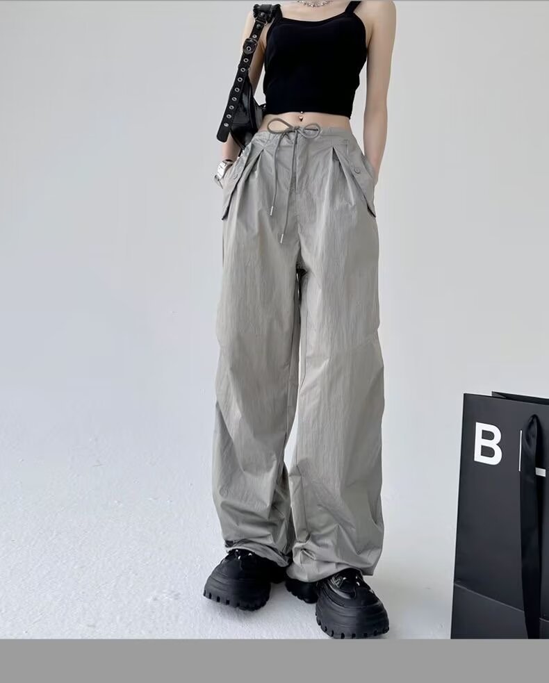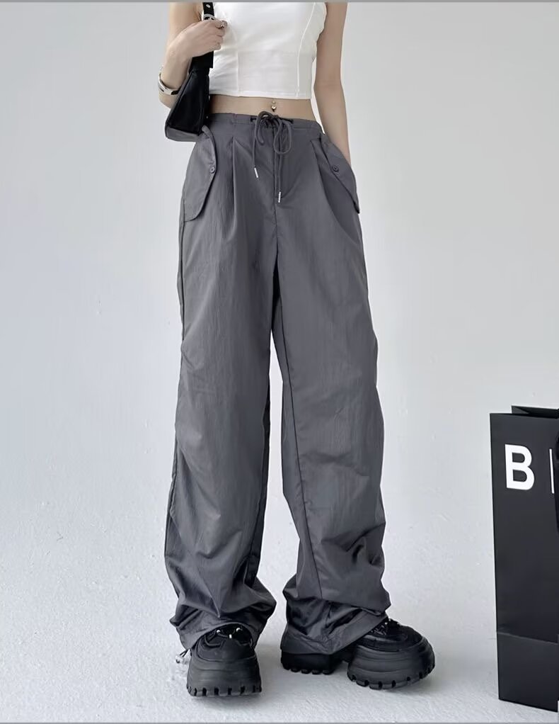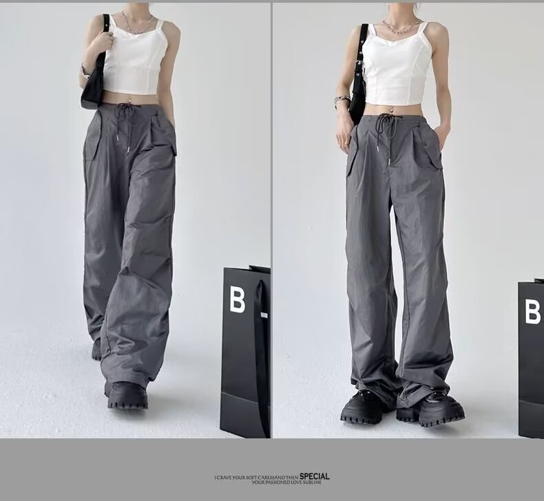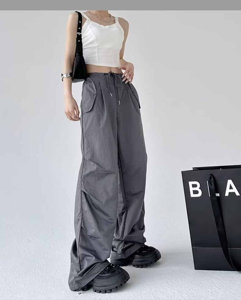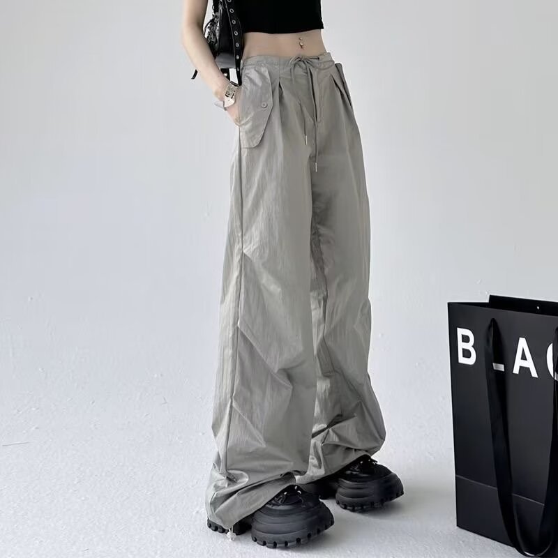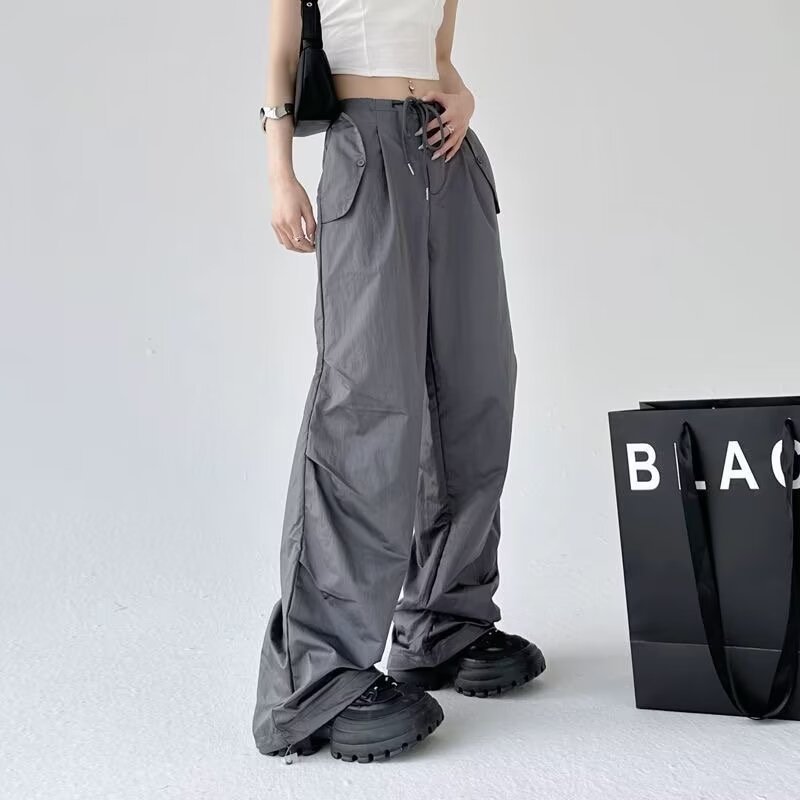 Paratroopers, 바지 잡은 여성용 여름 미국식 기능성 하이 스트리트 와이드 레그 러스크 팬츠 루즈 핏 스트레이트 캐주얼 팬츠스토어 가기