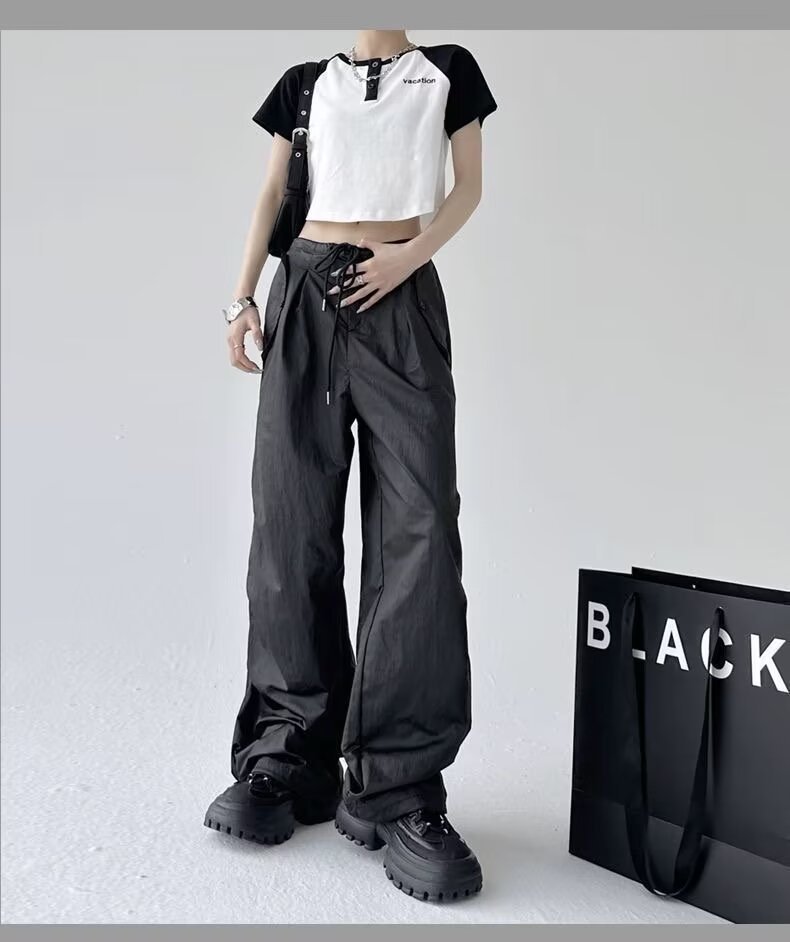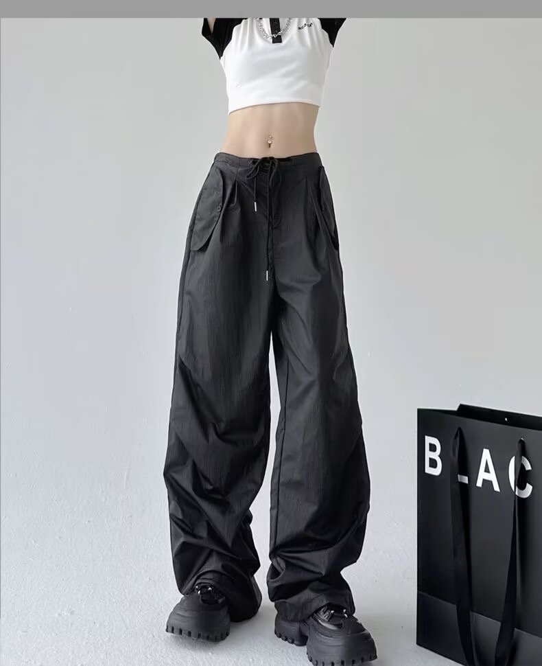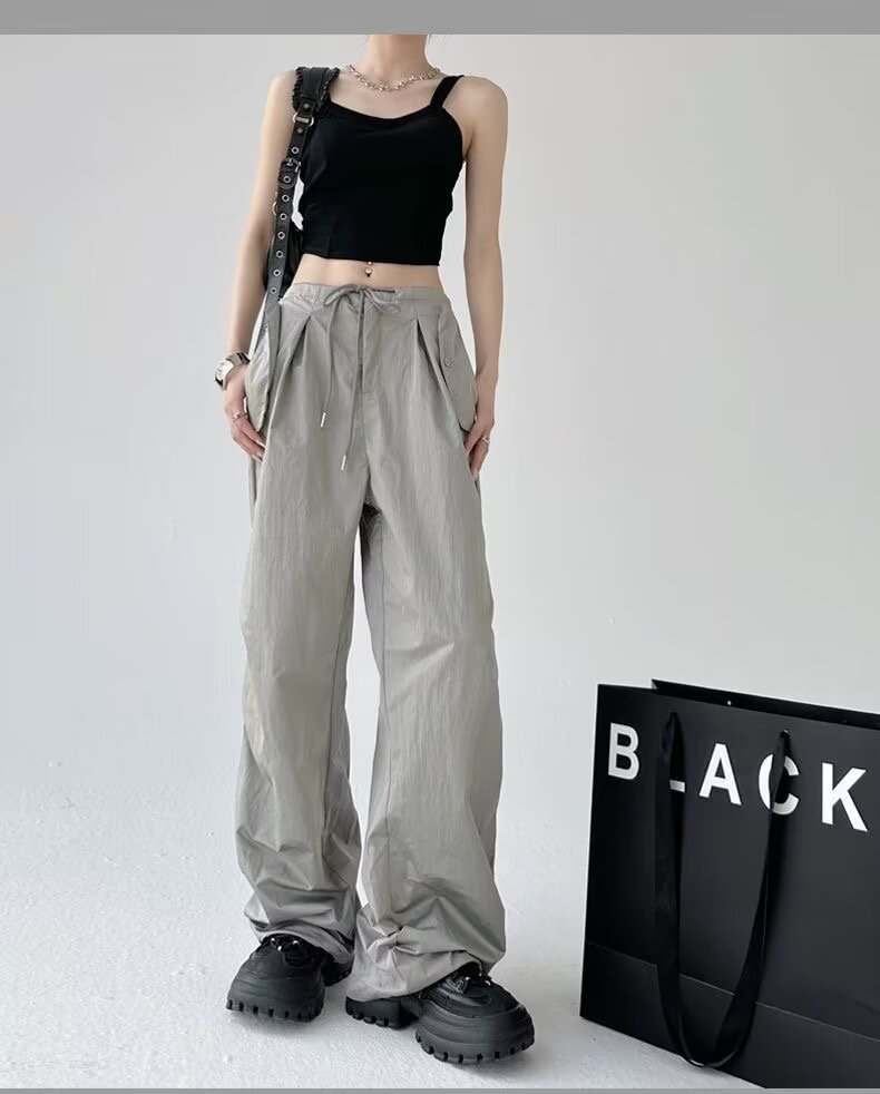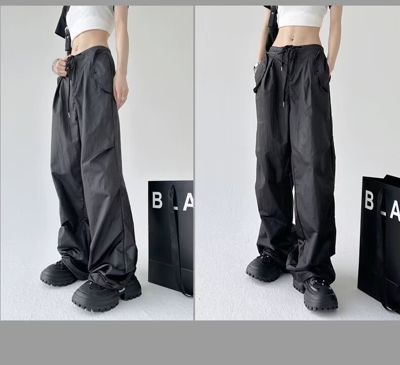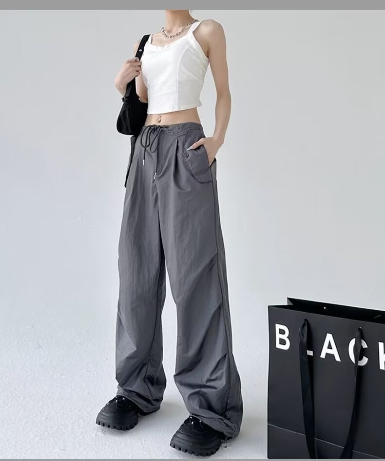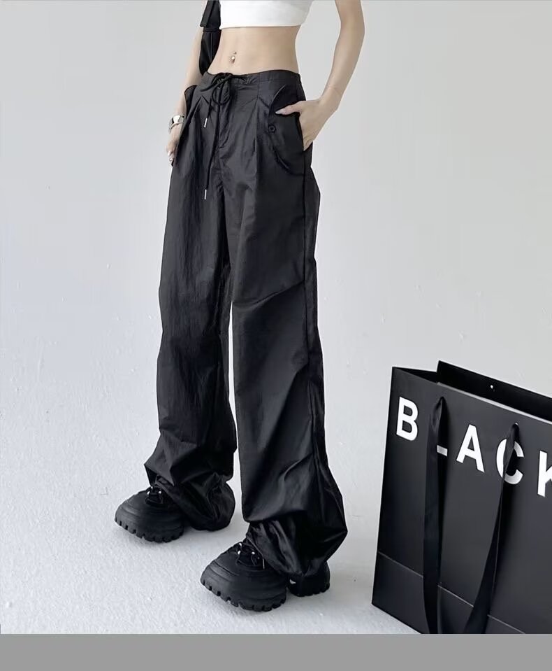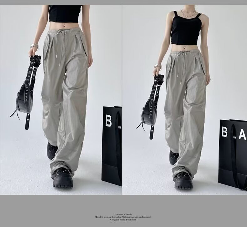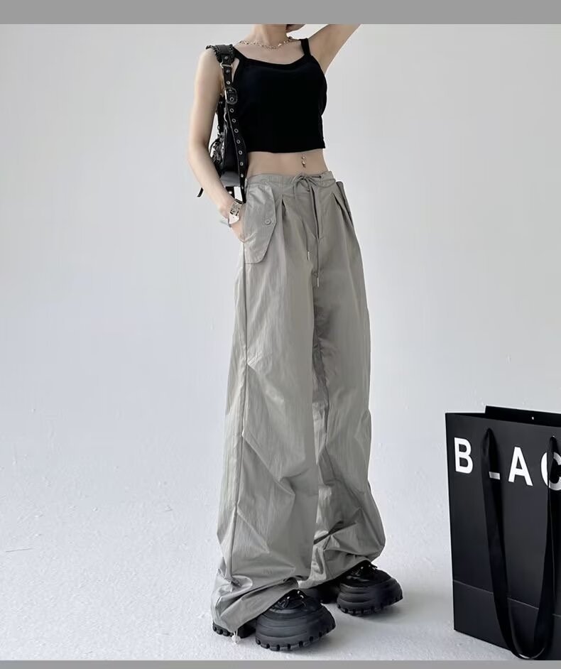 Paratroopers, 바지 잡은 여성용 여름 미국식 기능성 하이 스트리트 와이드 레그 러스크 팬츠 루즈 핏 스트레이트 캐주얼 팬츠스토어 가기