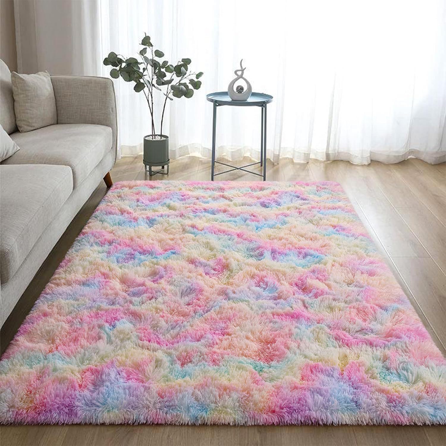 아마존 실크 헤어 넥타이 염색 거실 카펫 푹신한 긴 벨벳 가정용 침실 옆 카펫 먼지 방지 미끄럼 방지 매트 재고스토어 가기