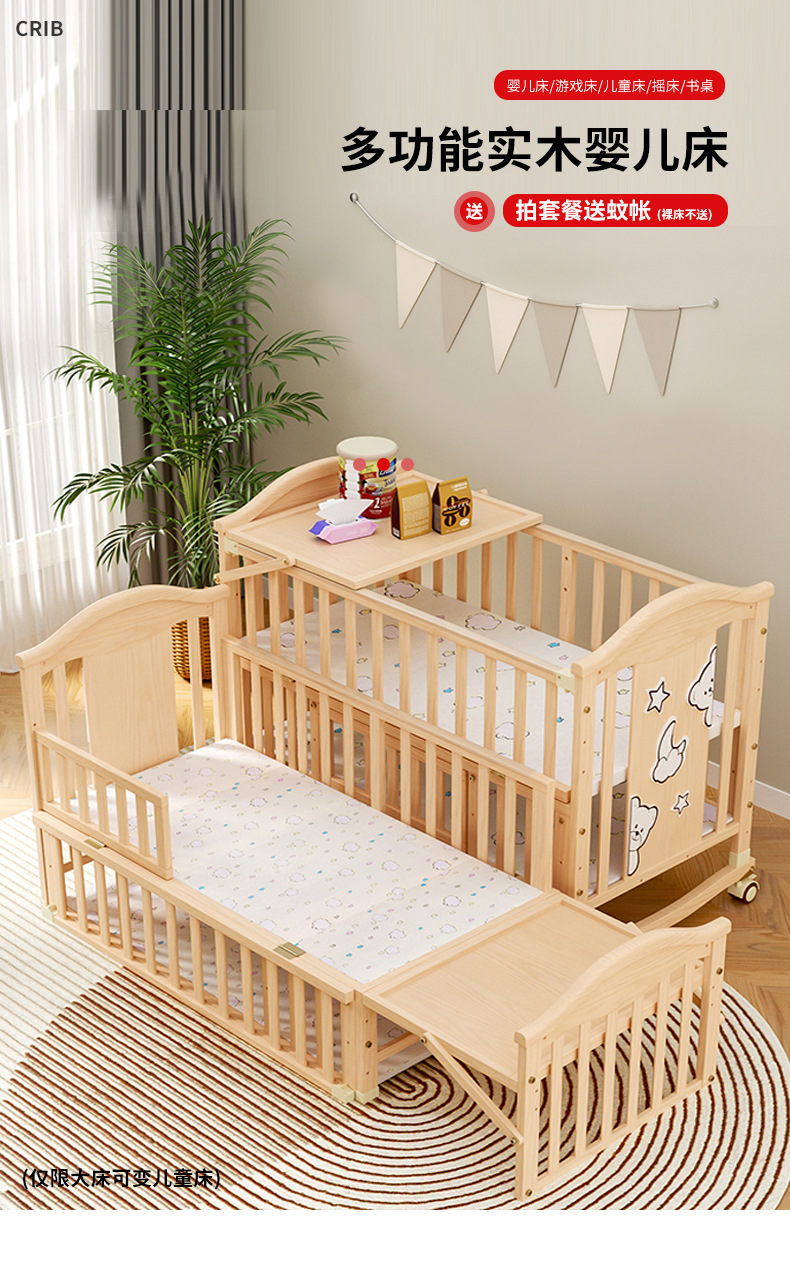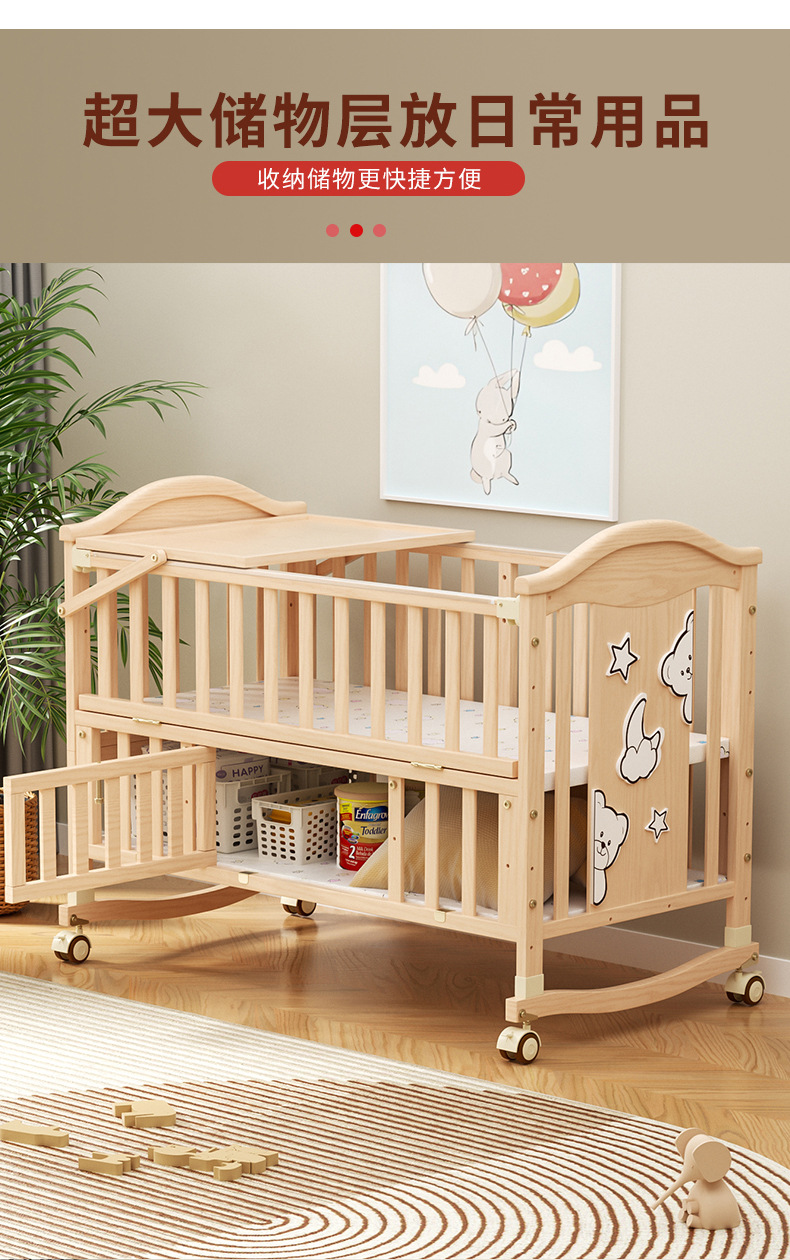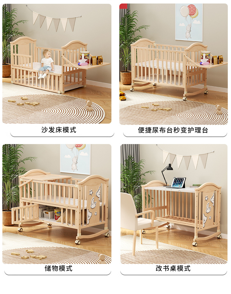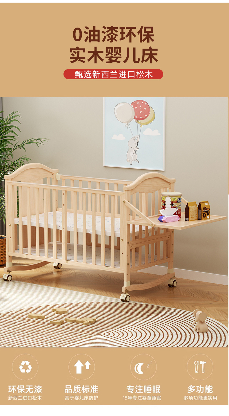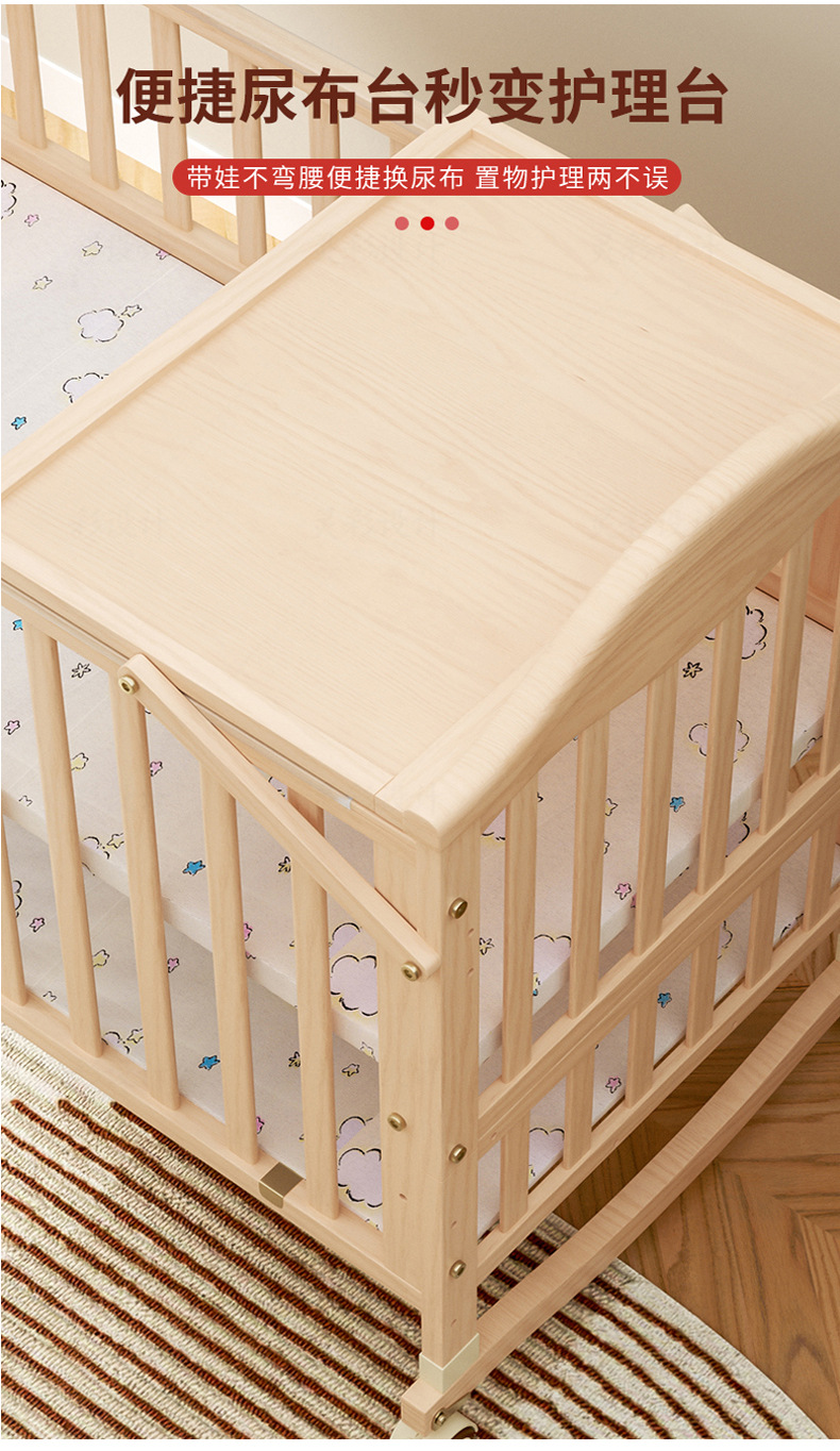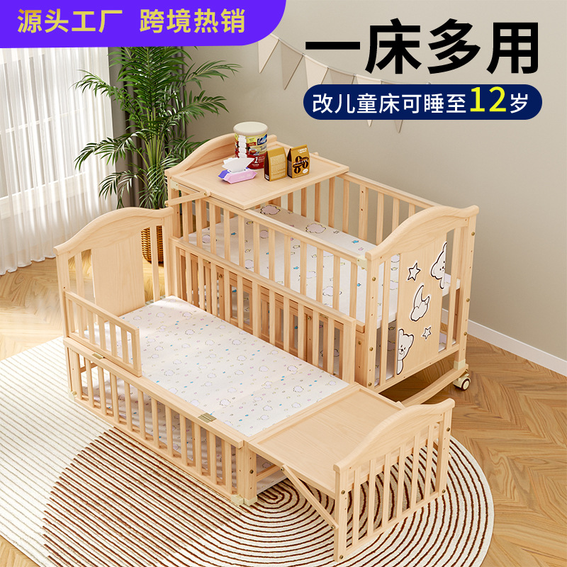 침대 단단한 나무 옻칠이없는 아기 침대 다기능 bb 신생아 어린이 접합 큰 침대 셰이커 요람 제조 업체 도매