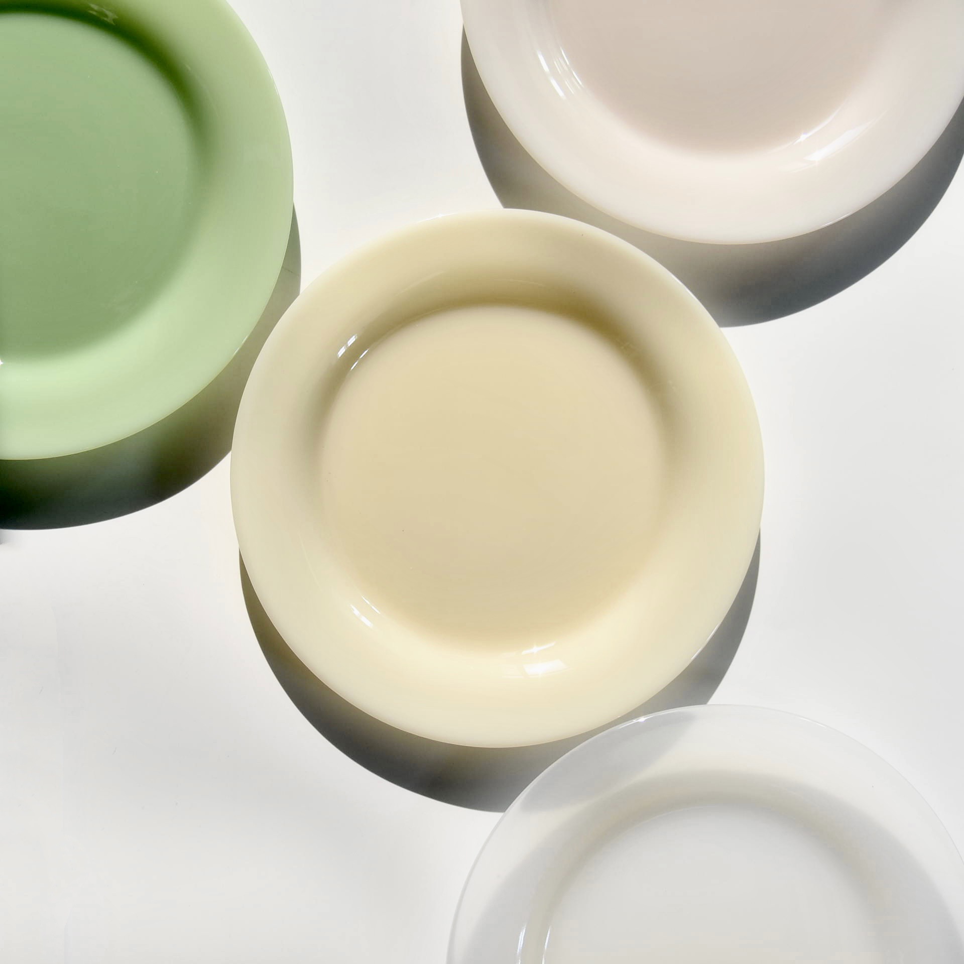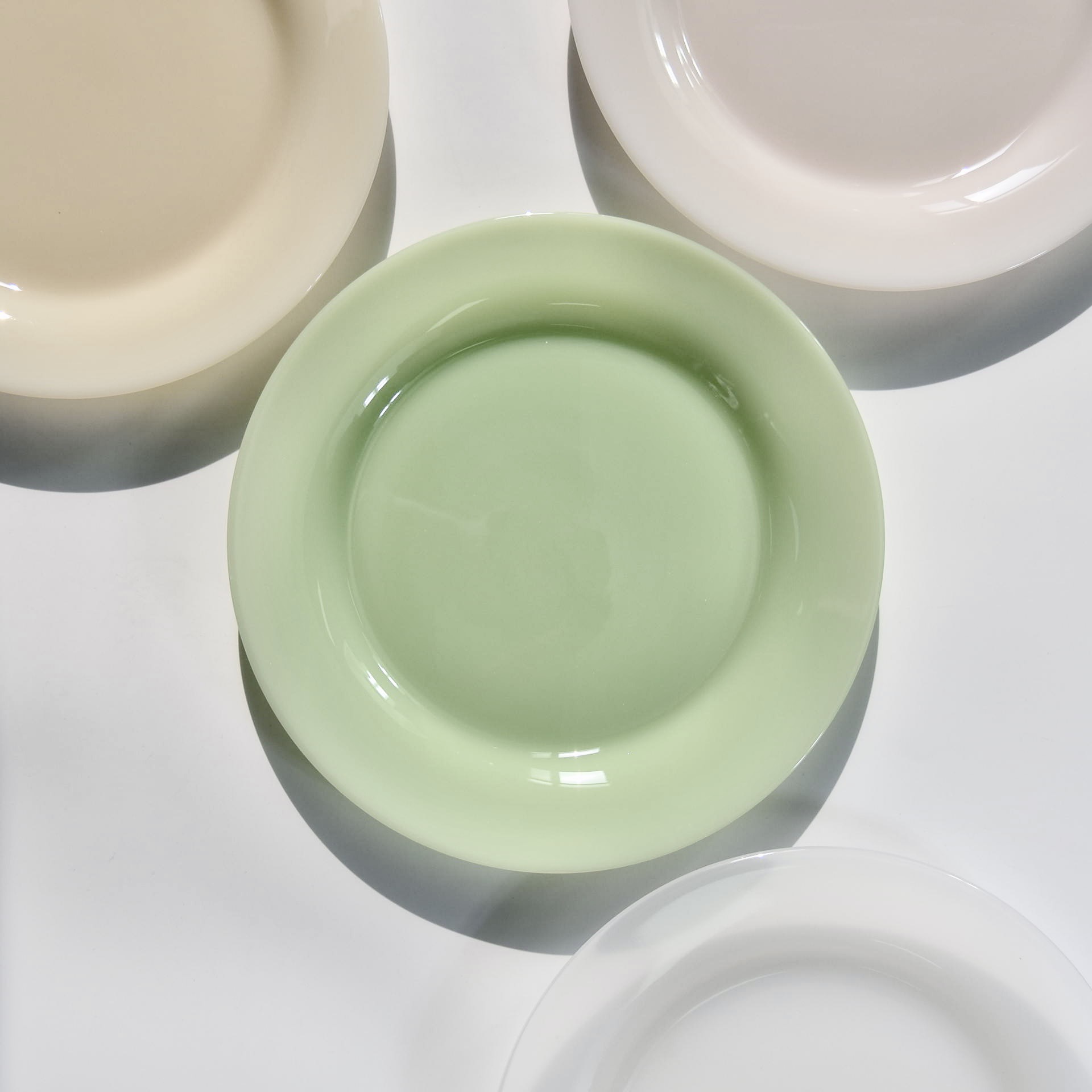 옥 소재 유리 디스크 우유 유리 디너 플레이트 오팔 유리 식기 무연 컬러 유리 플레이트 레스토랑 패드