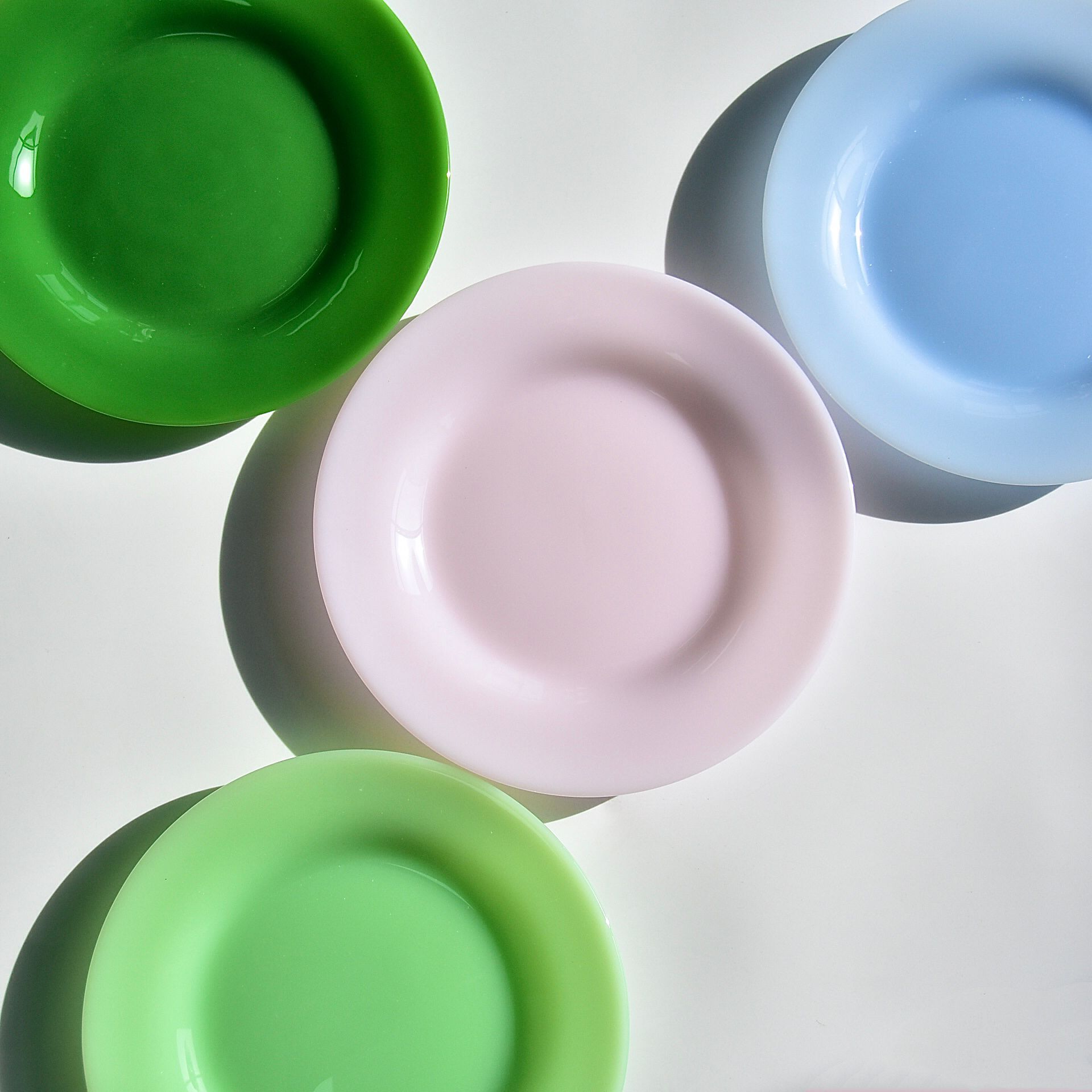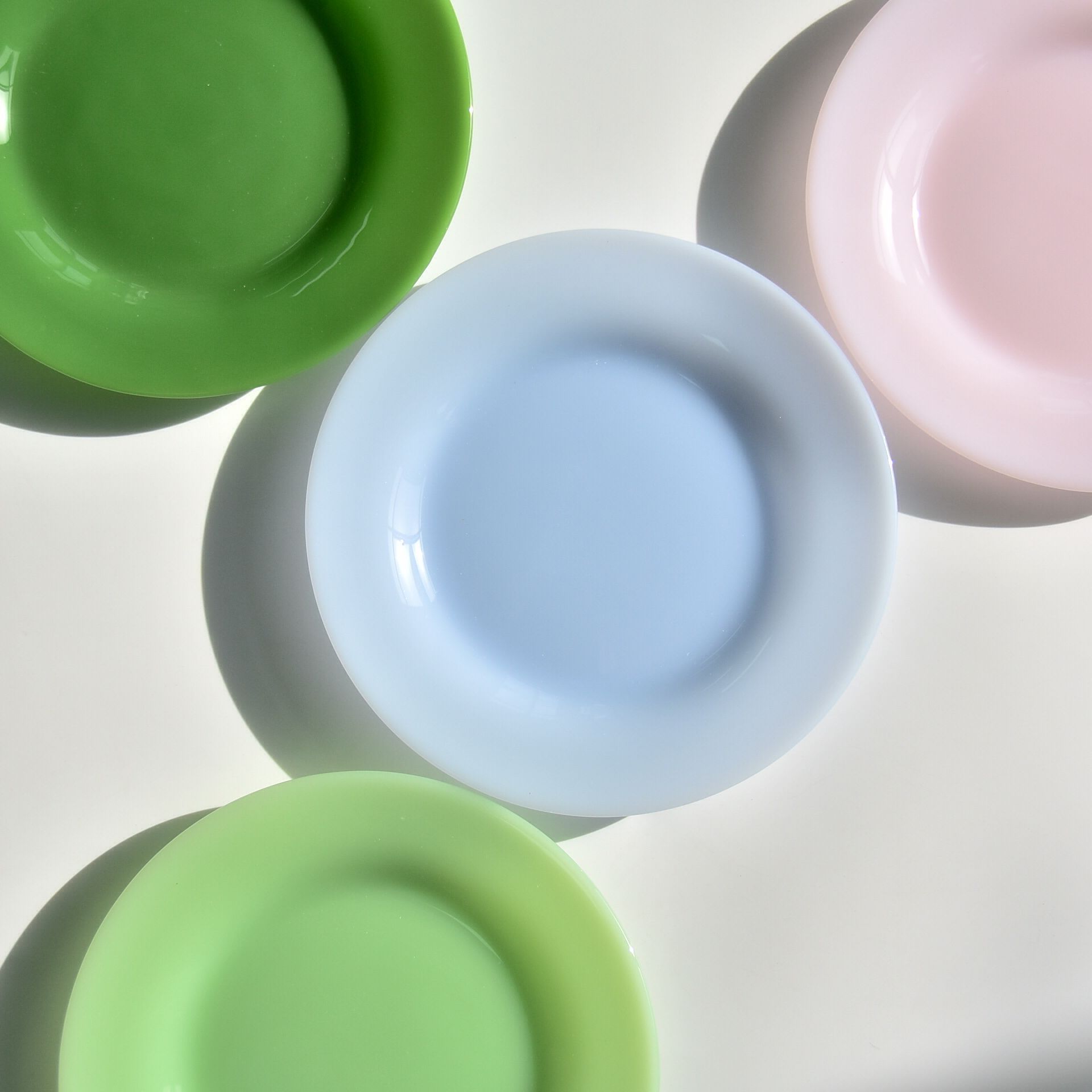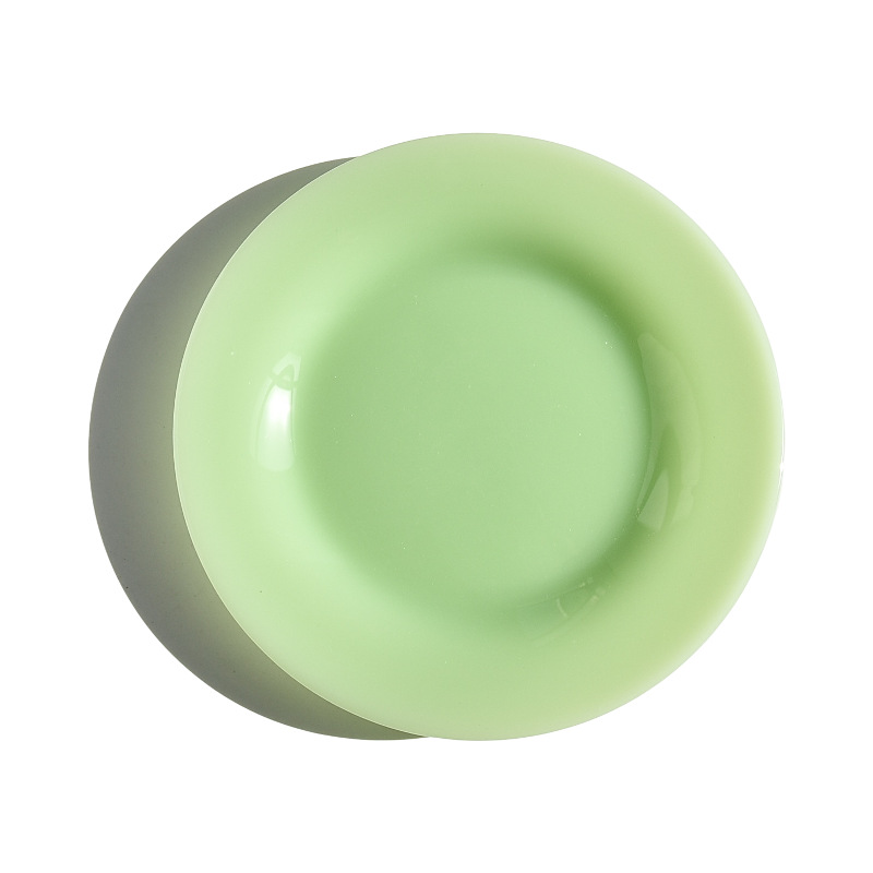 옥 소재 유리 디스크 우유 유리 디너 플레이트 오팔 유리 식기 무연 컬러 유리 플레이트 레스토랑 패드스토어 가기