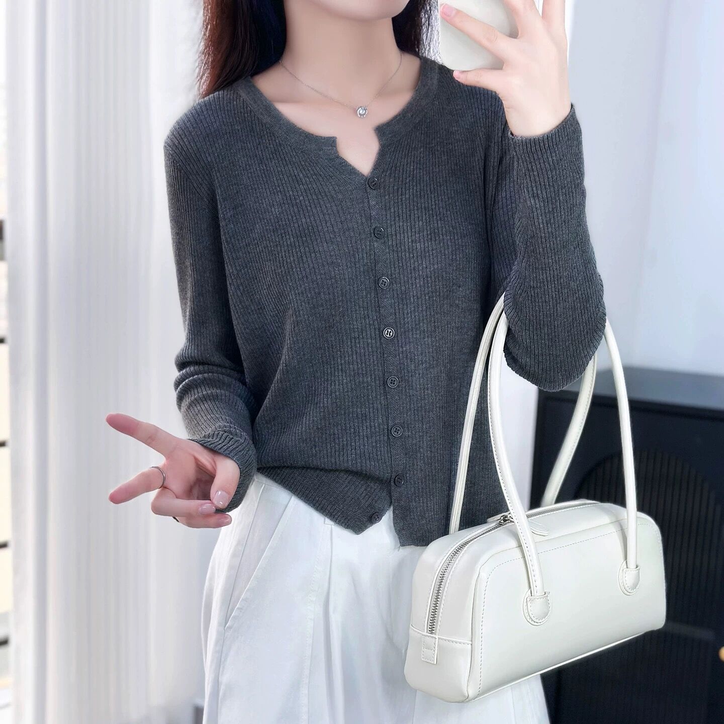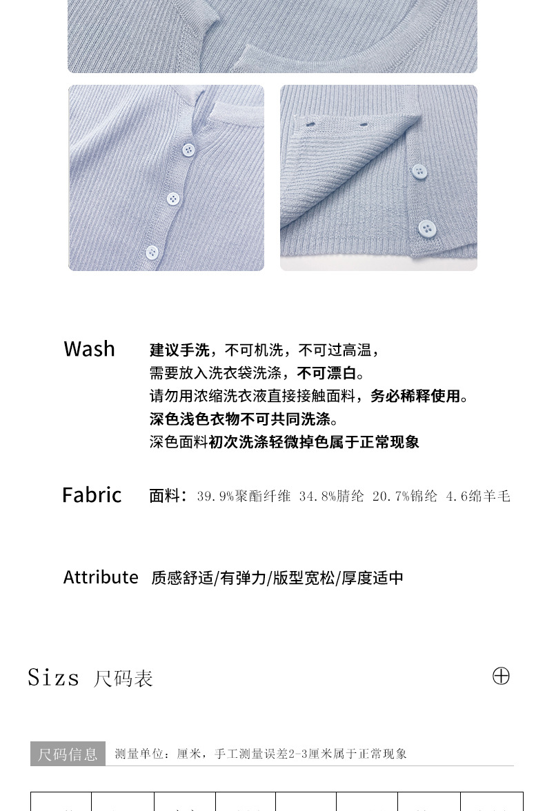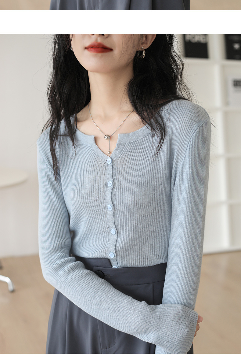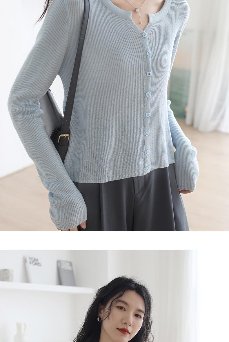 6 울 짧은 니트 가디건 여성 긴팔 2025 루즈하고 다재다능한 라운드 넥 스웨터 재킷 가을용 에어컨 셔츠스토어 가기