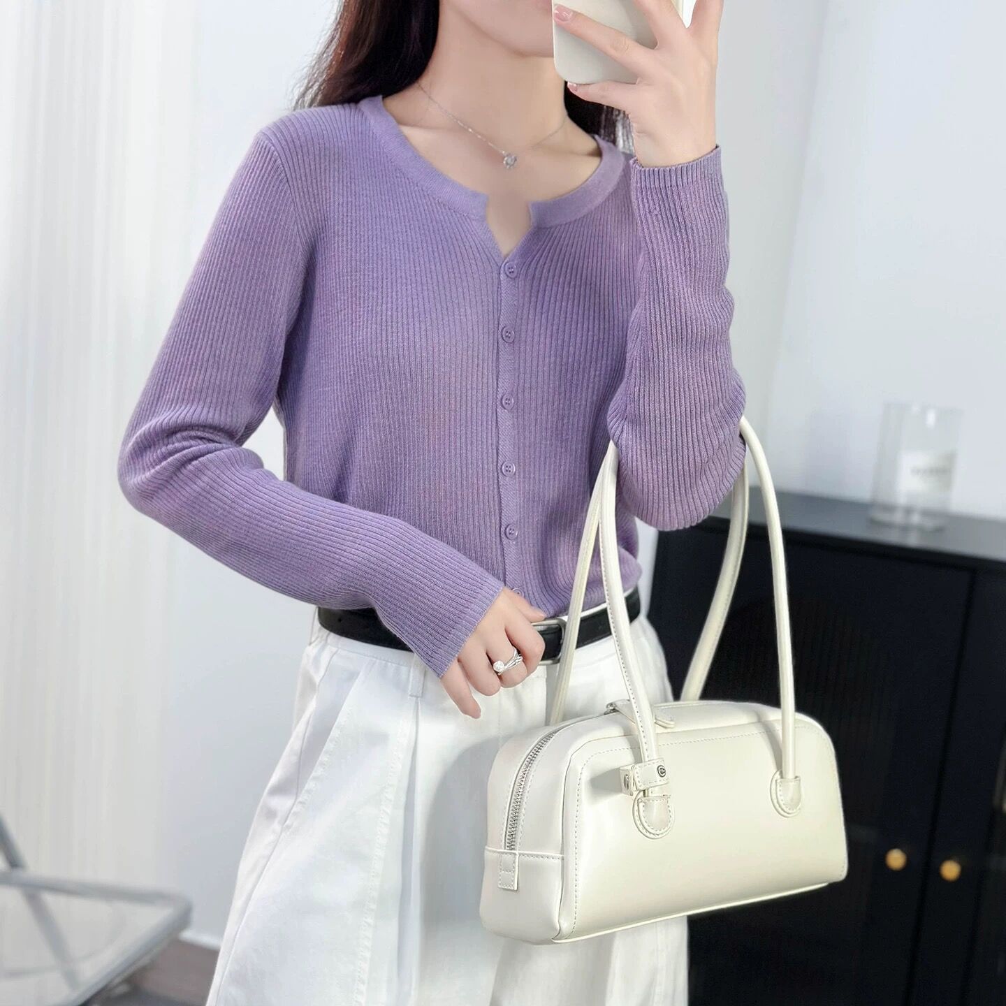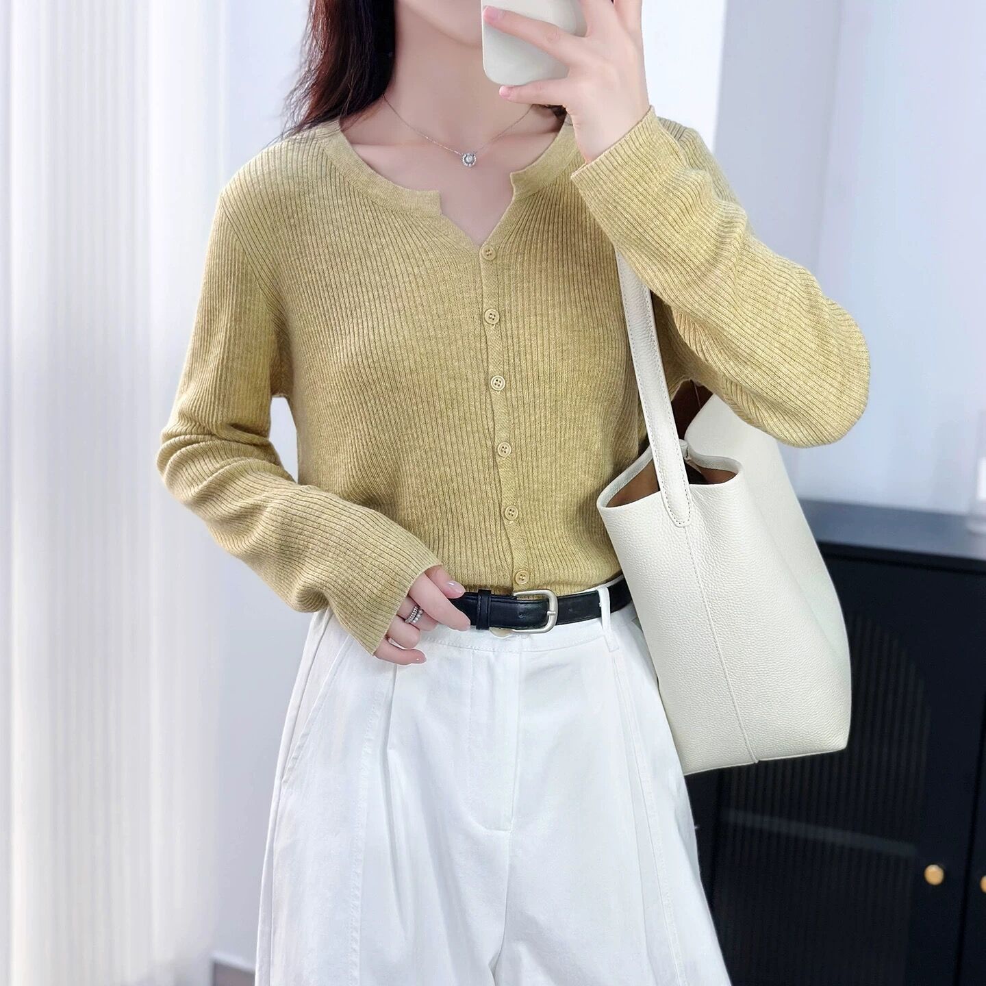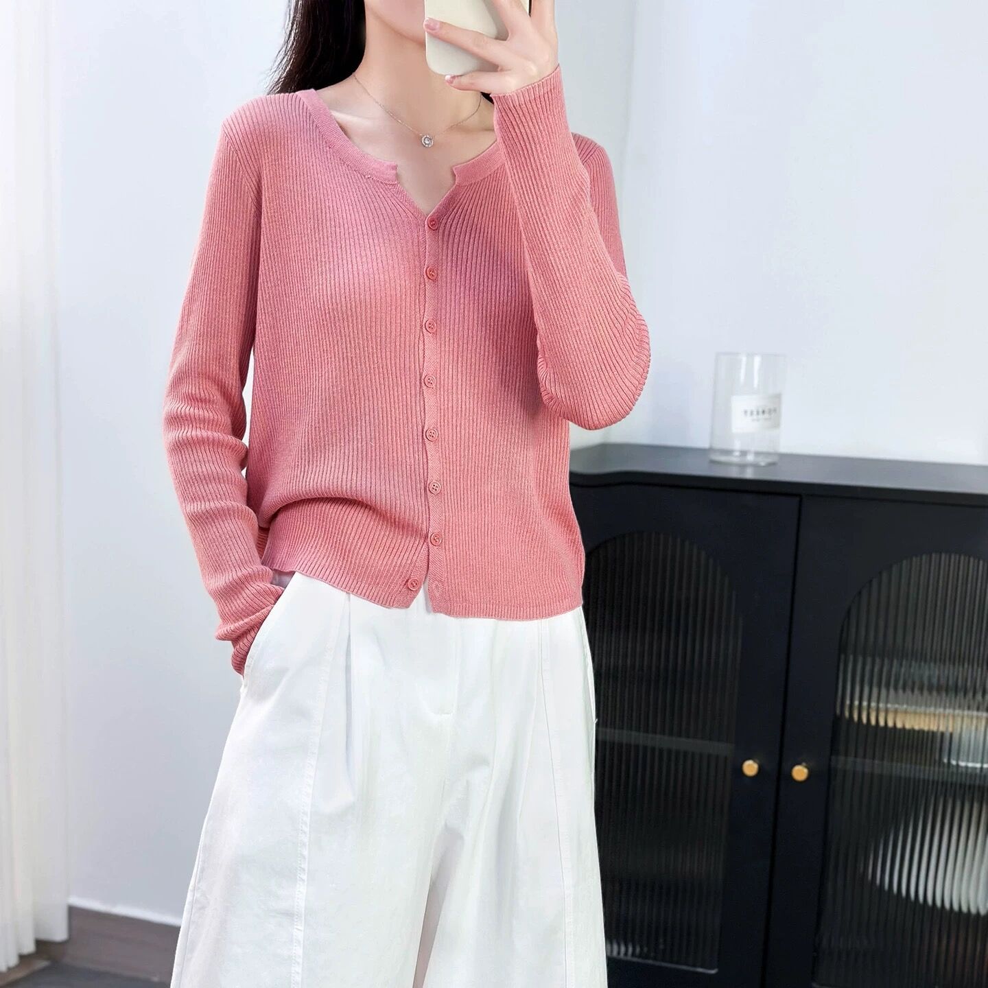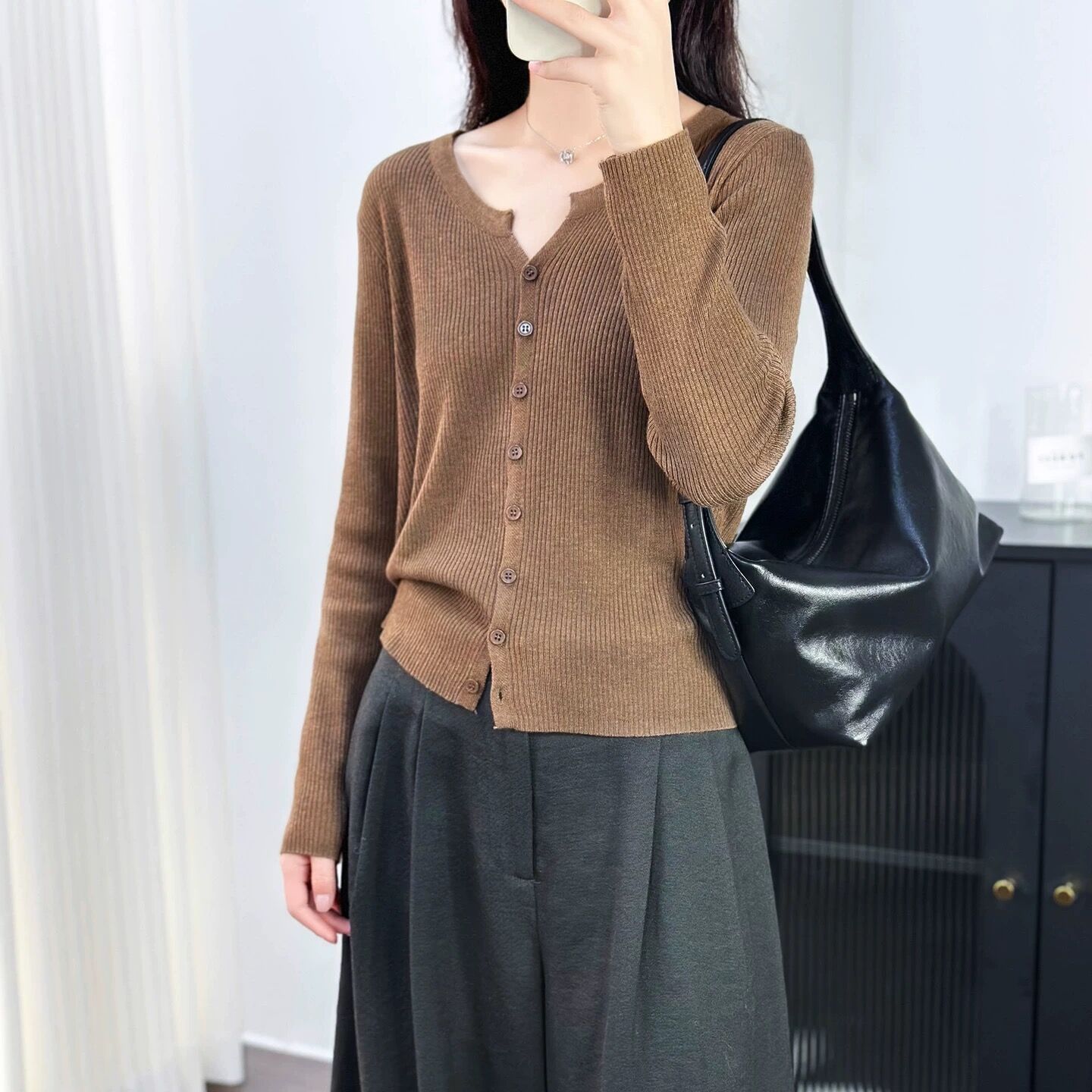 6 울 짧은 니트 가디건 여성 긴팔 2025 루즈하고 다재다능한 라운드 넥 스웨터 재킷 가을용 에어컨 셔츠스토어 가기